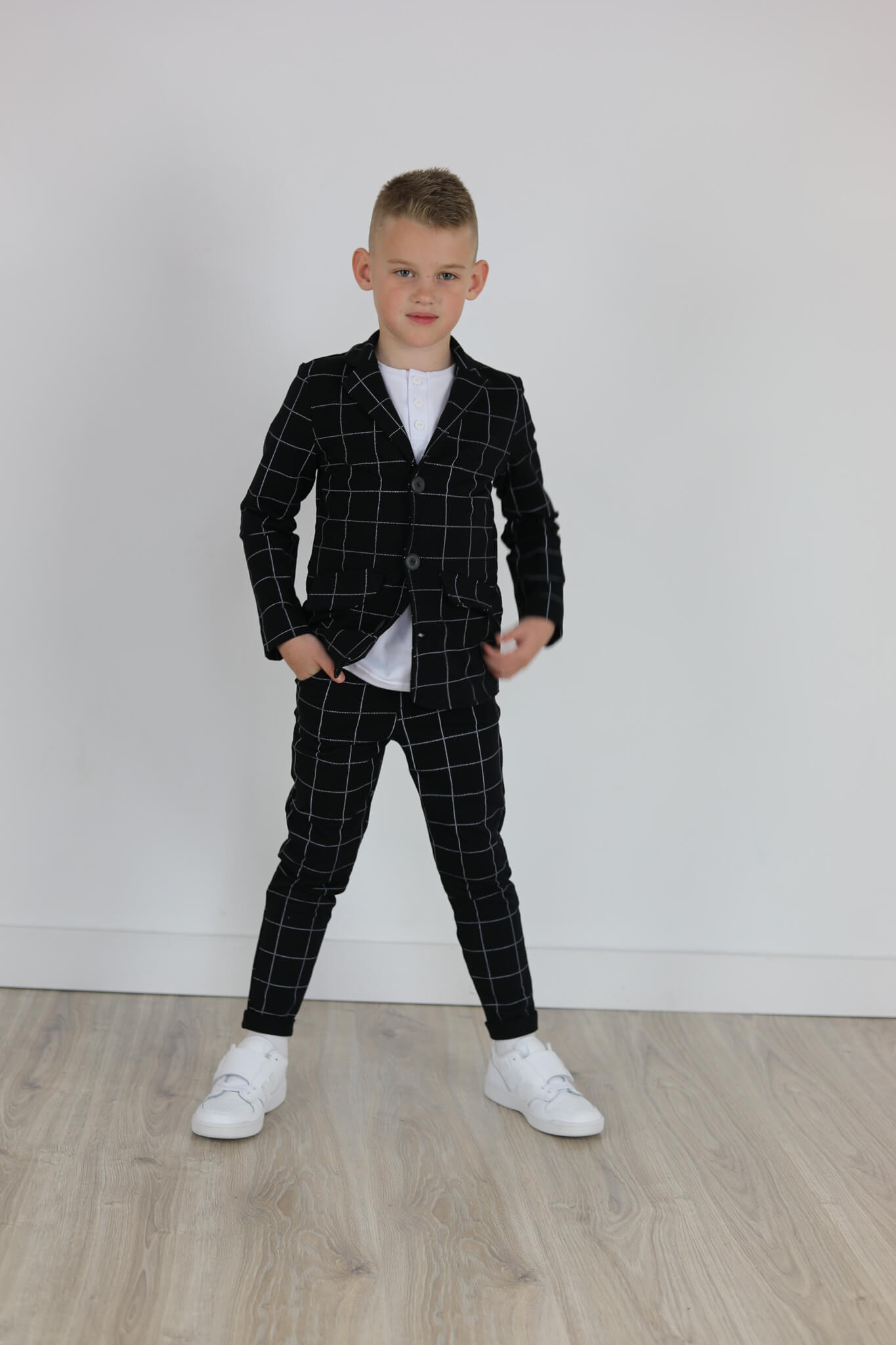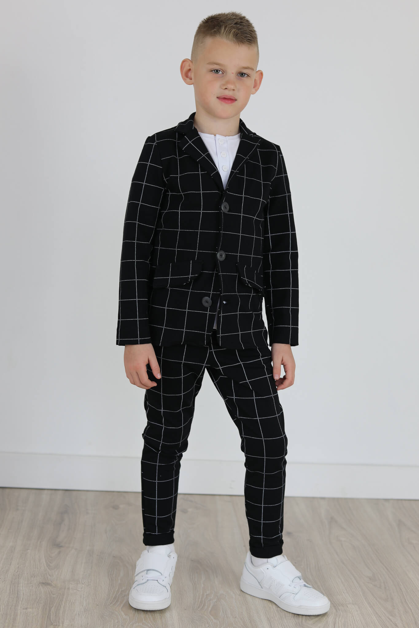 Marynarka DRESOWA czarna KRATA jasny grafit
