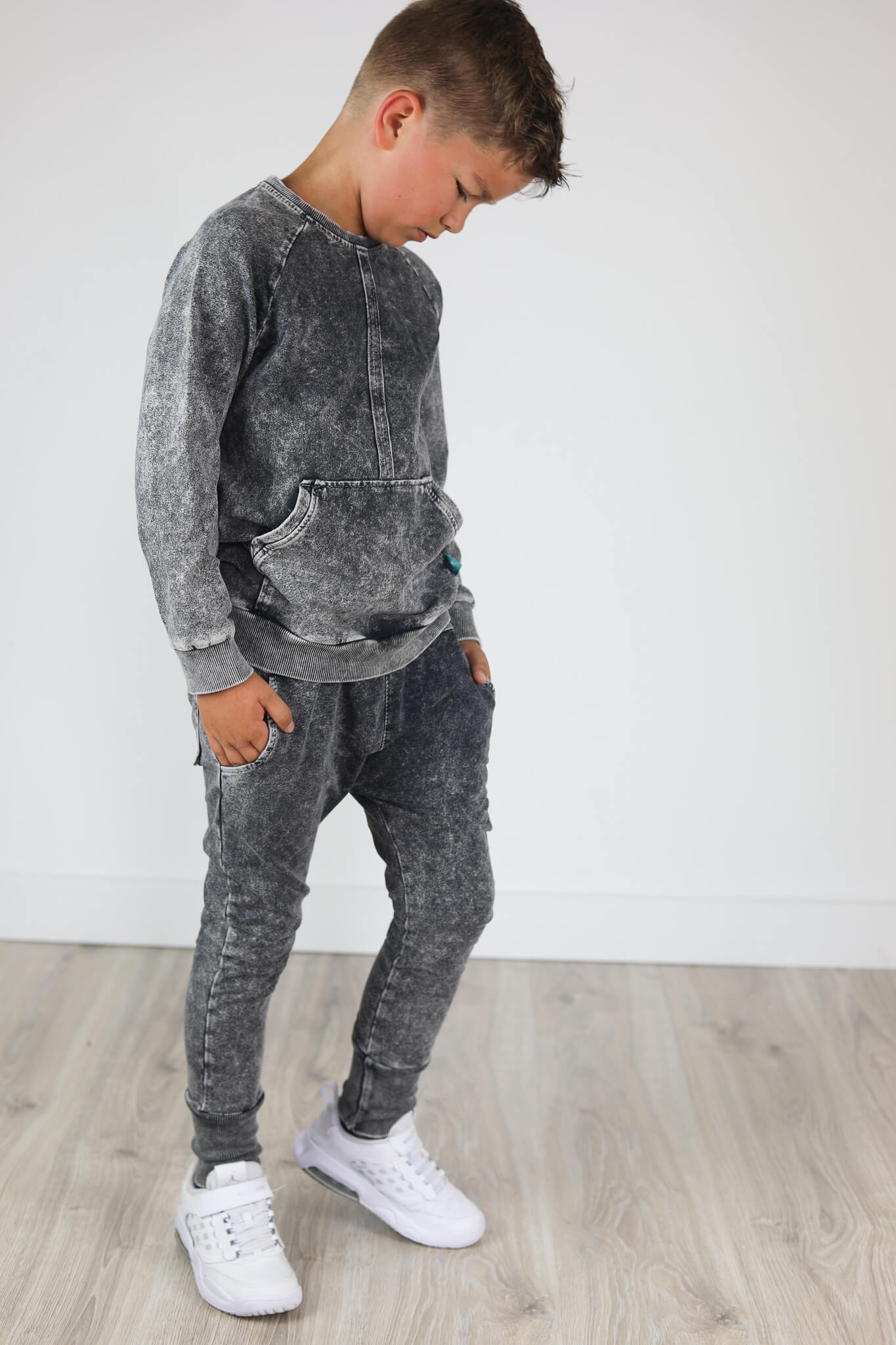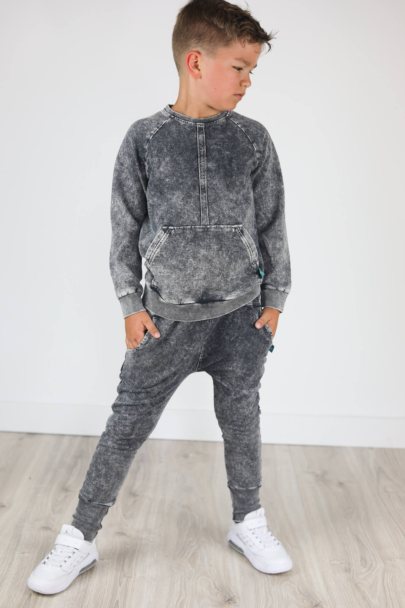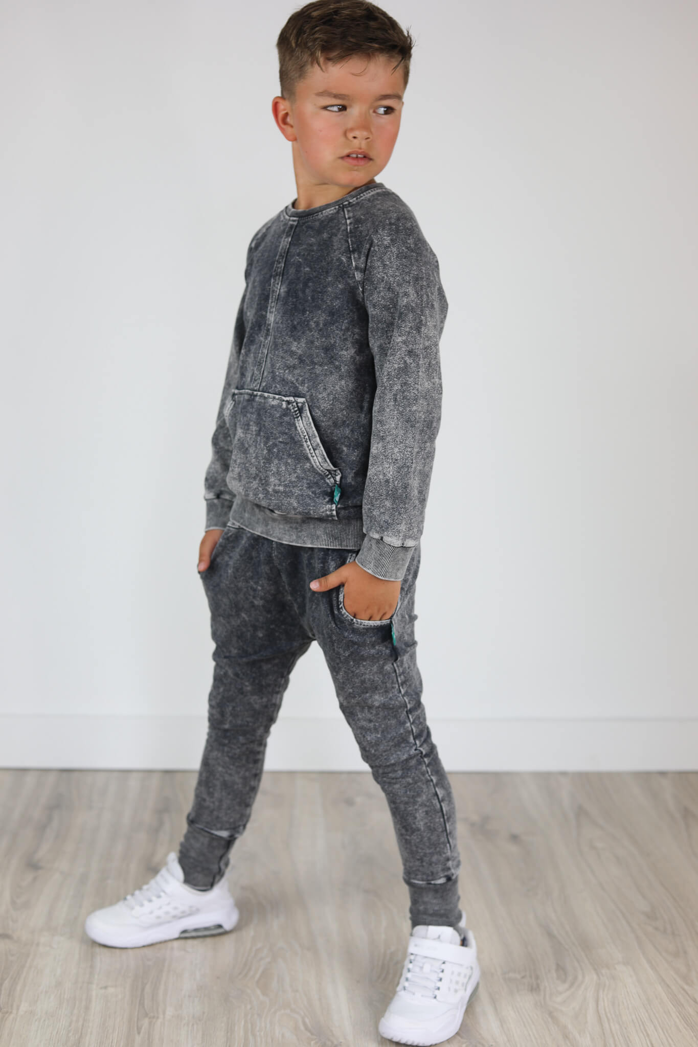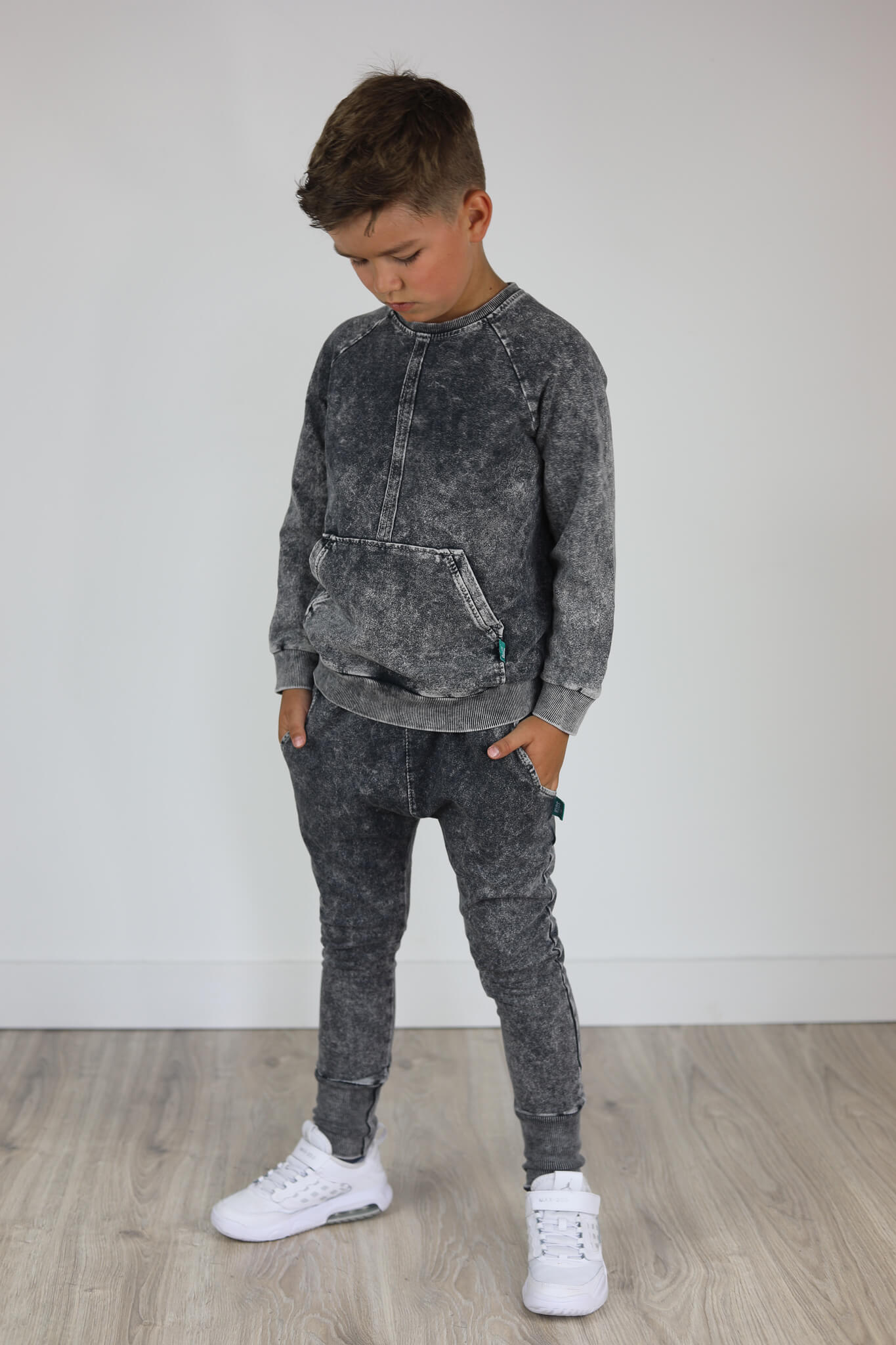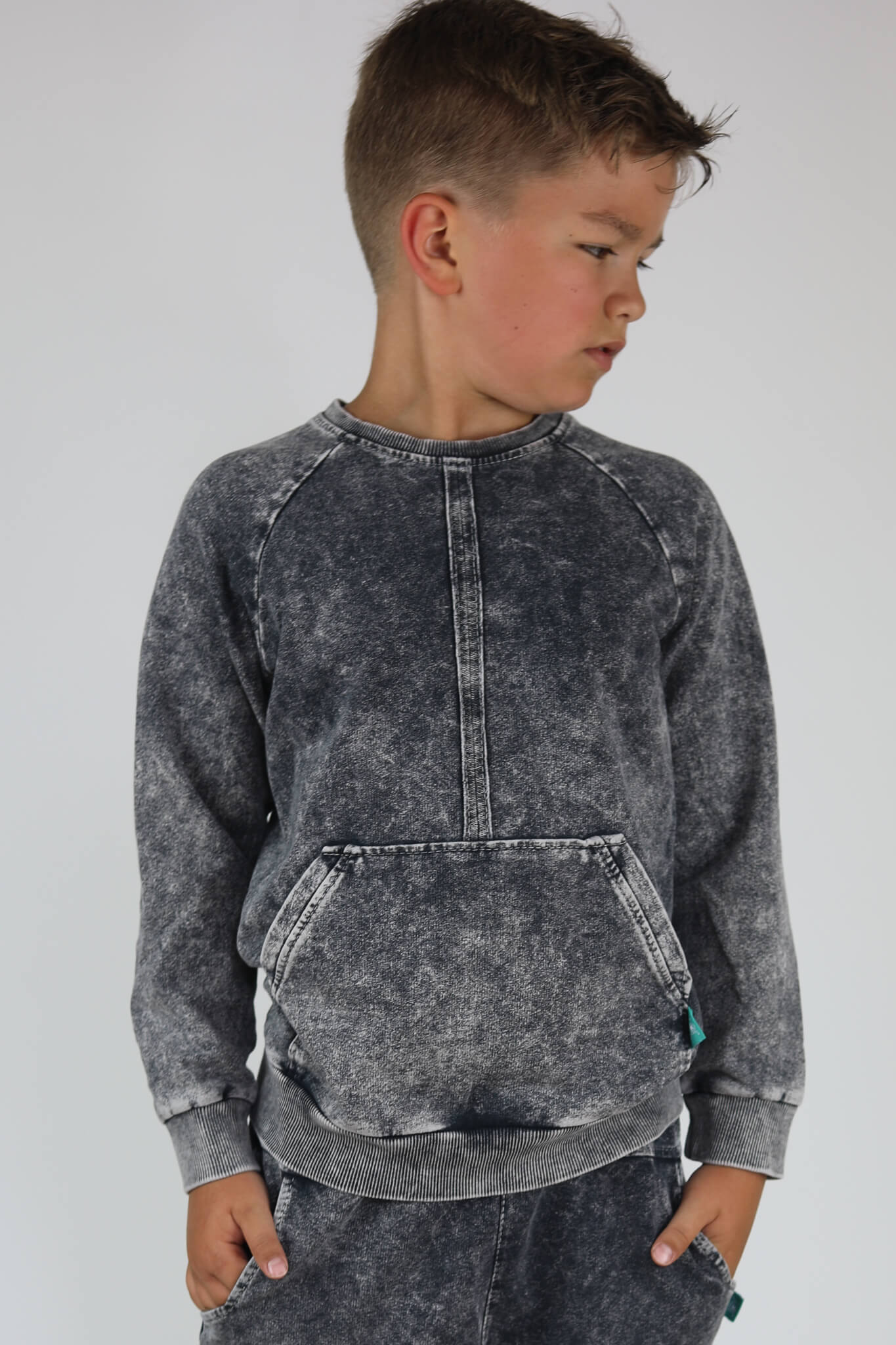 Bluza uszyta jest z dzianiny dresowej 250 g która poddana jest procesowi wybarwiania. Jest to bardzo pracochłonny proces lecz efekt ostateczny jest bardzo atrakcyjny.
