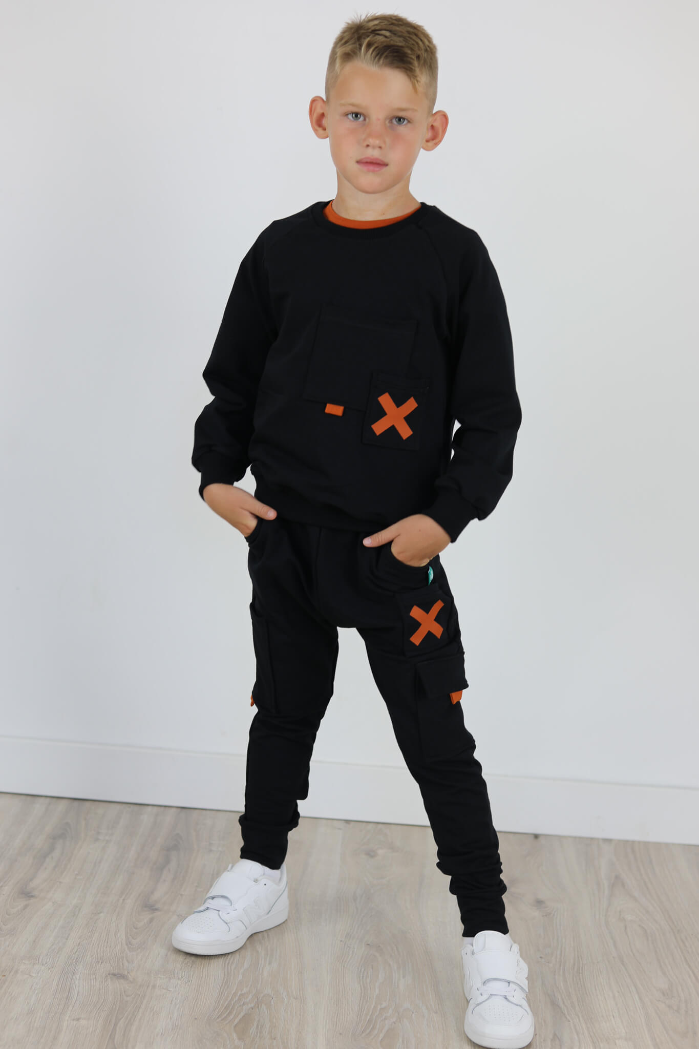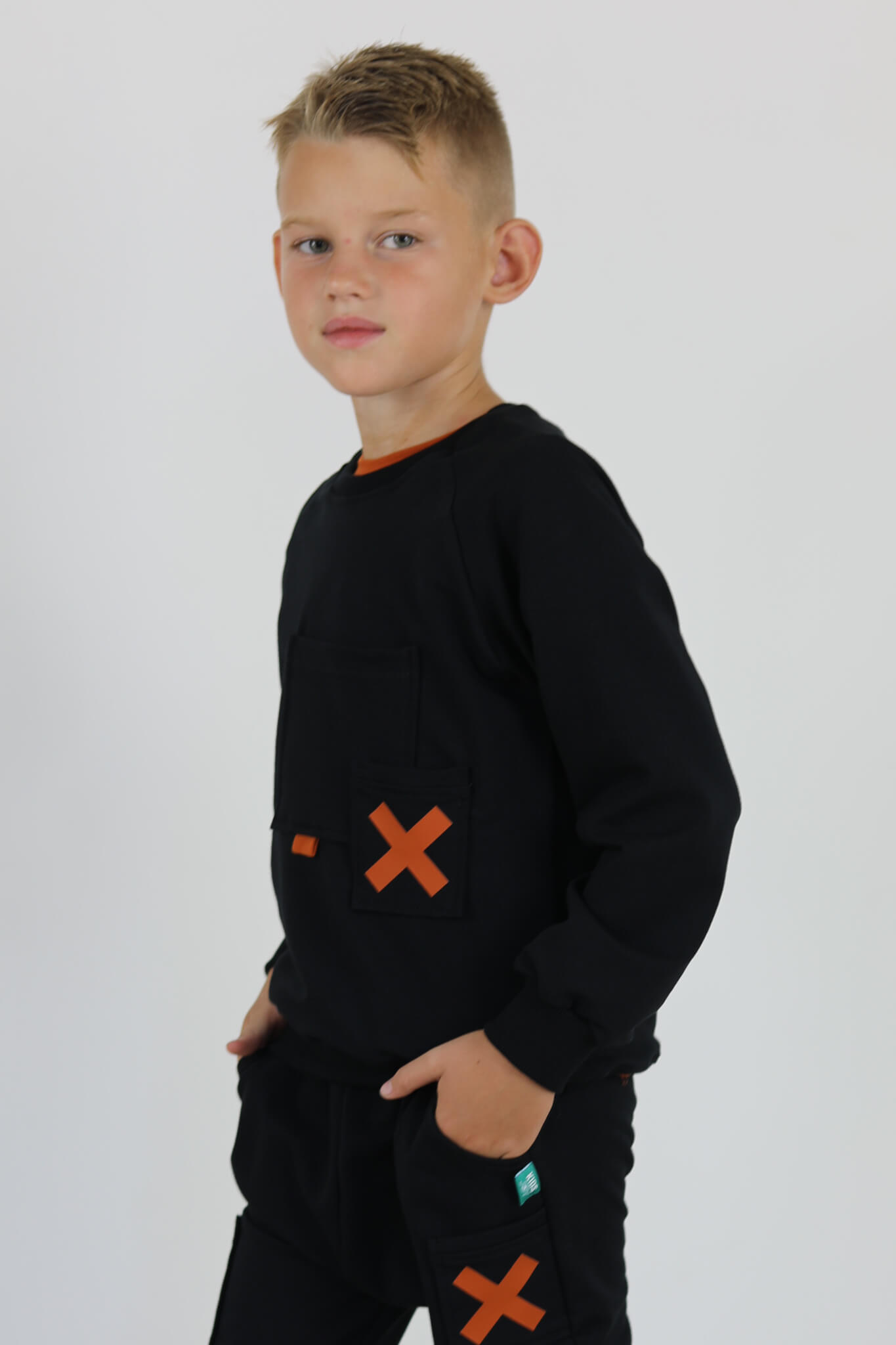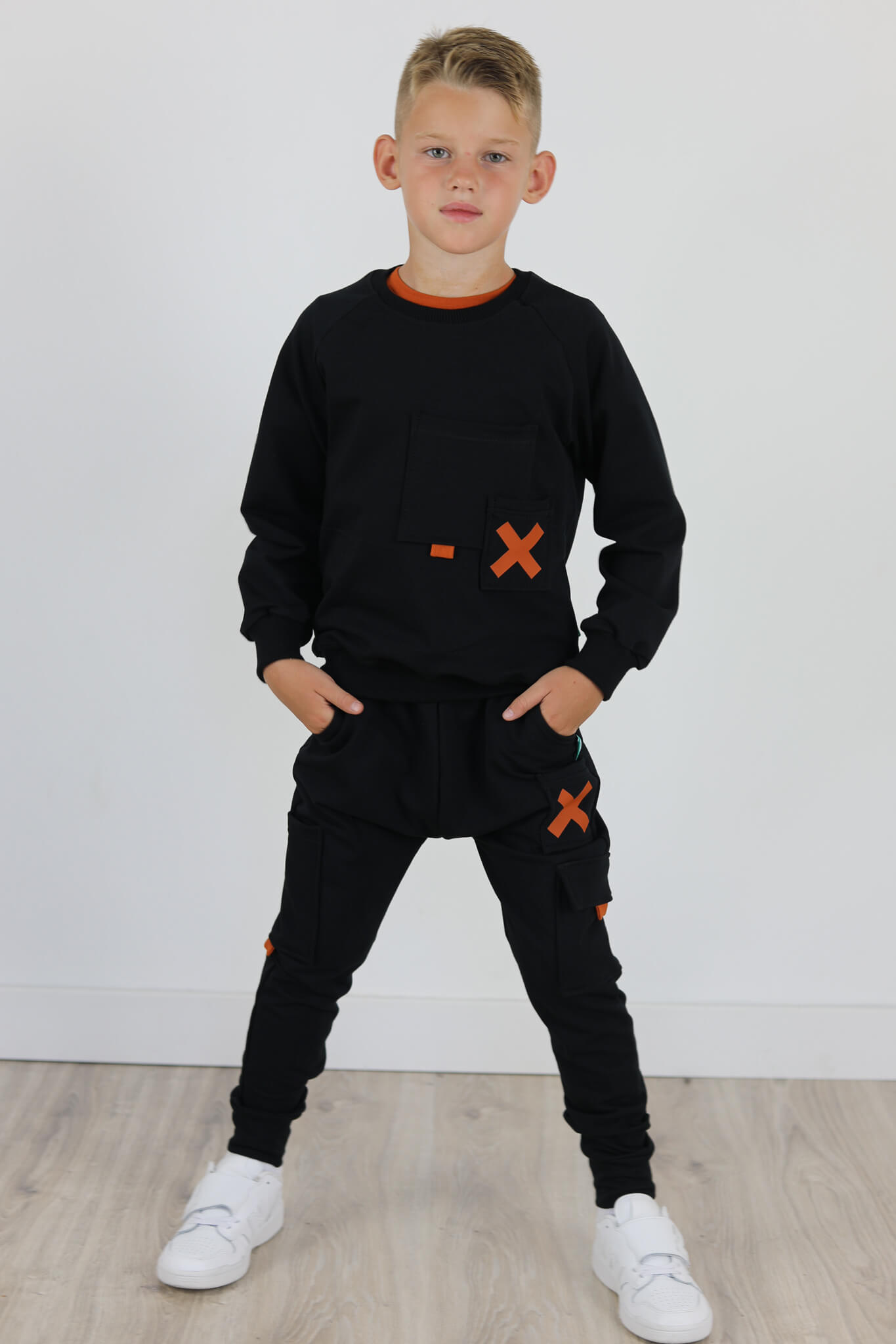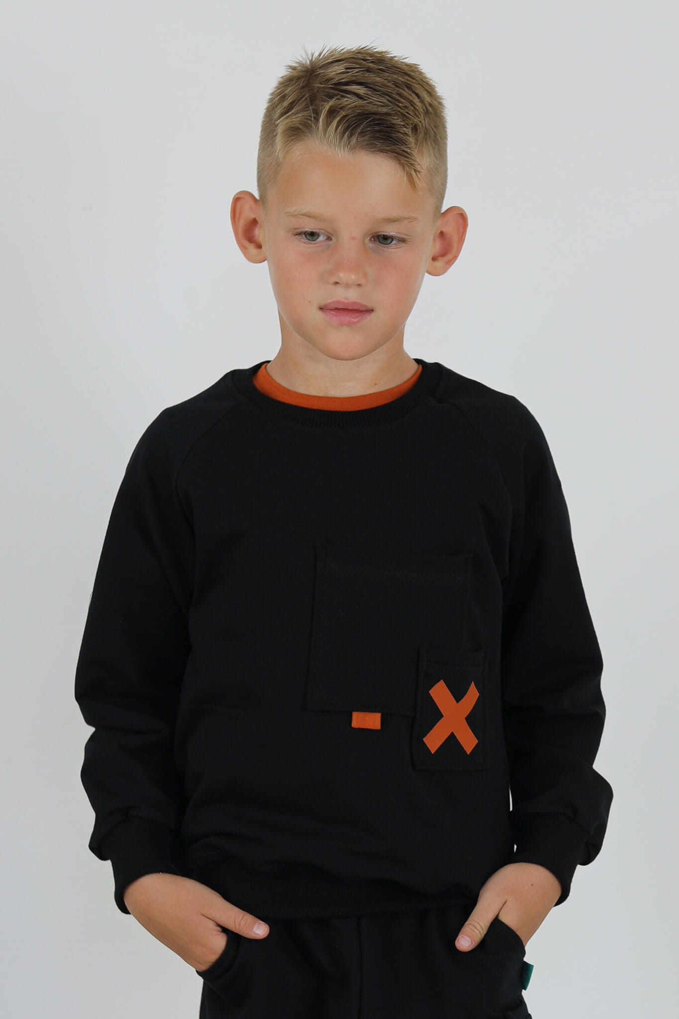 Stylowa bluza z nadrukiem X oraz ozdobnymi kieszeniami z taśmą.