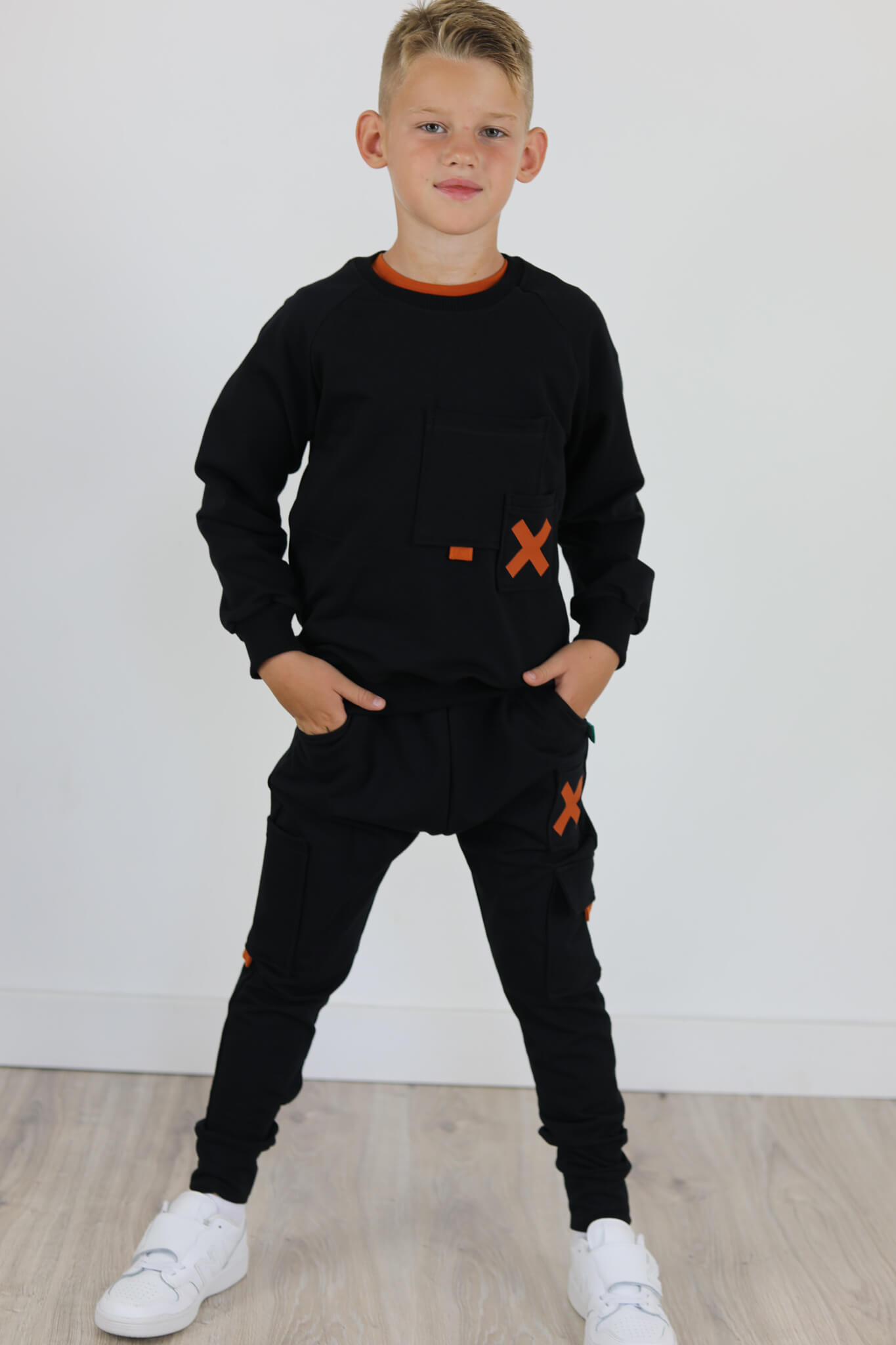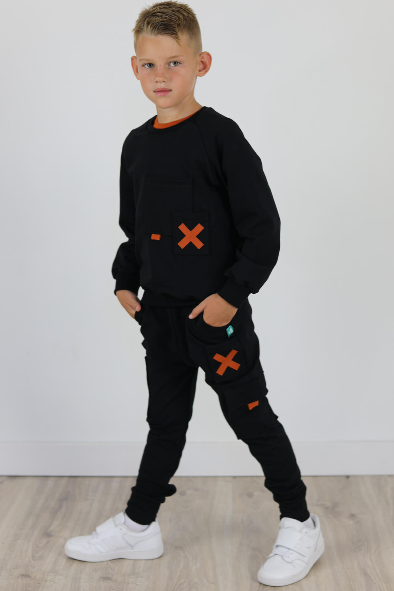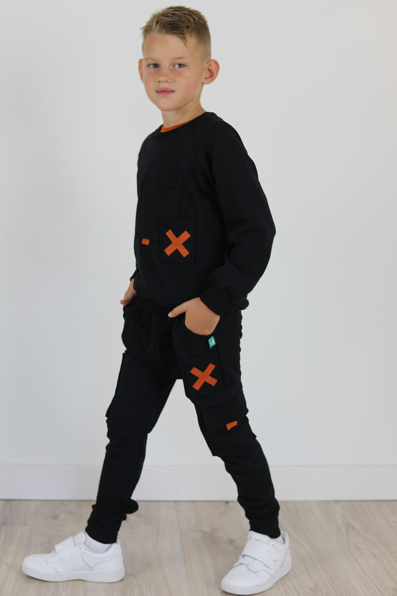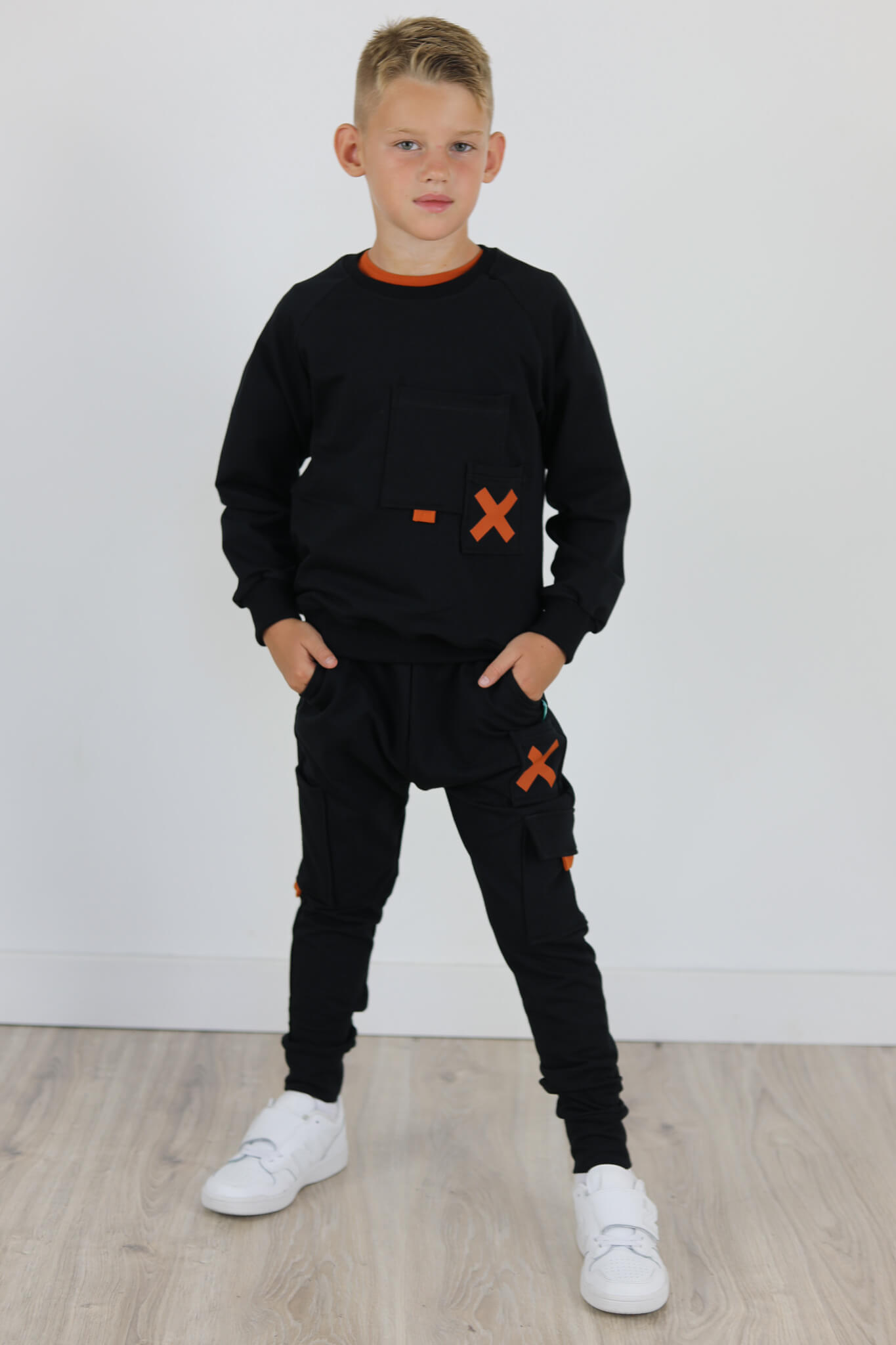 Stylowa bluza z nadrukiem X oraz ozdobnymi kieszeniami z taśmą.