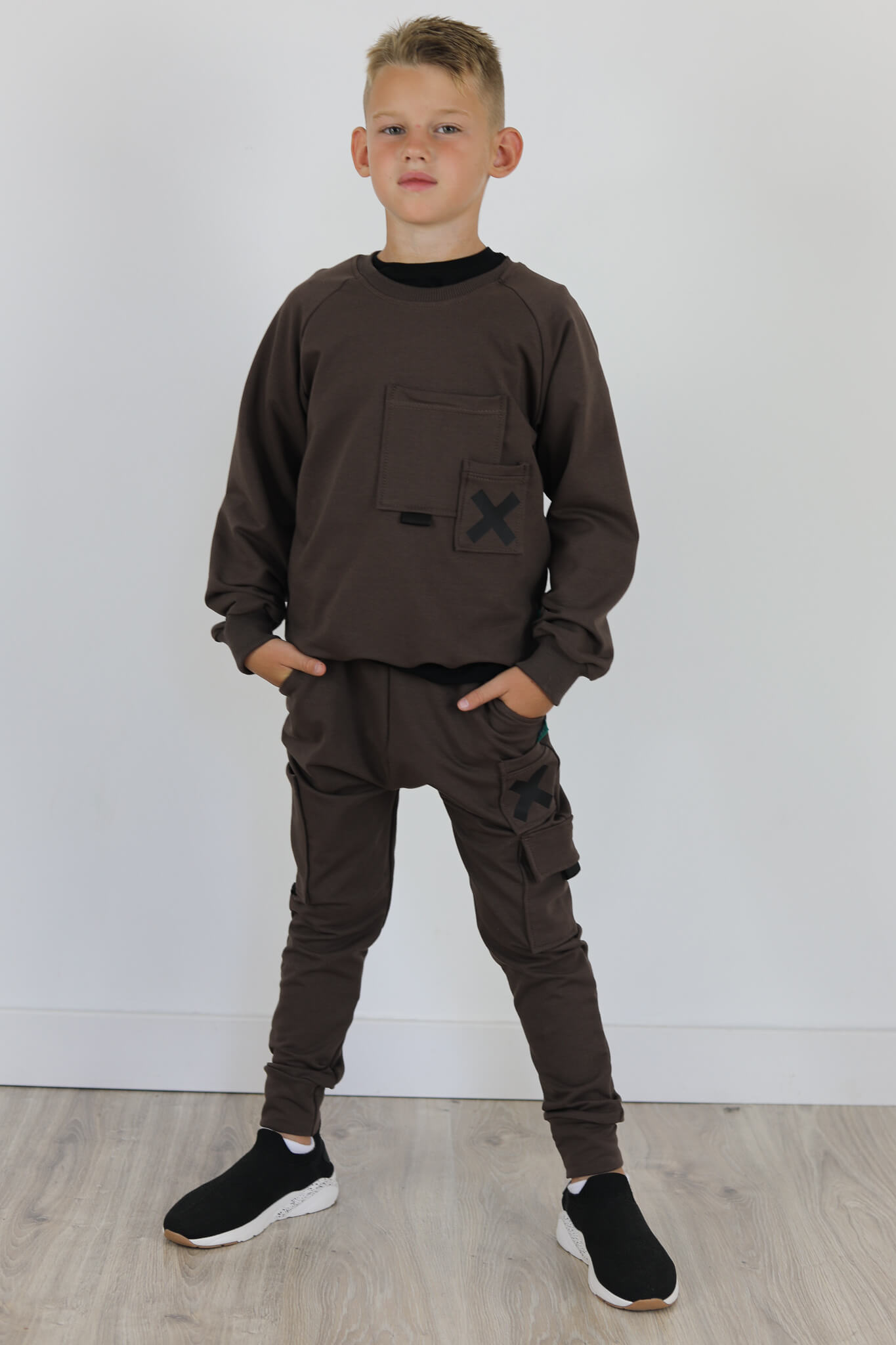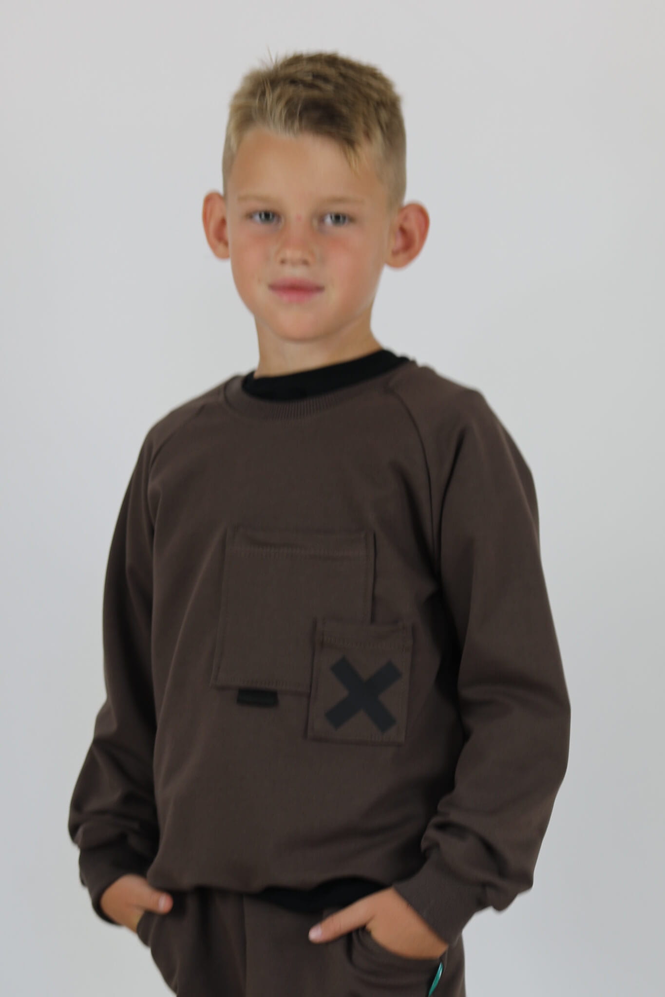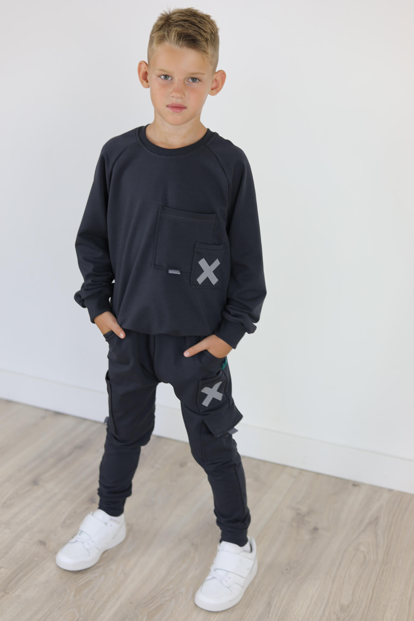 Stylowa bluza z nadrukiem X oraz ozdobnymi kieszeniami z taśmą.