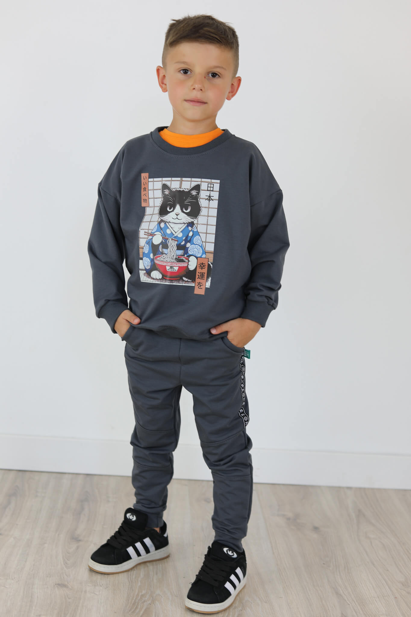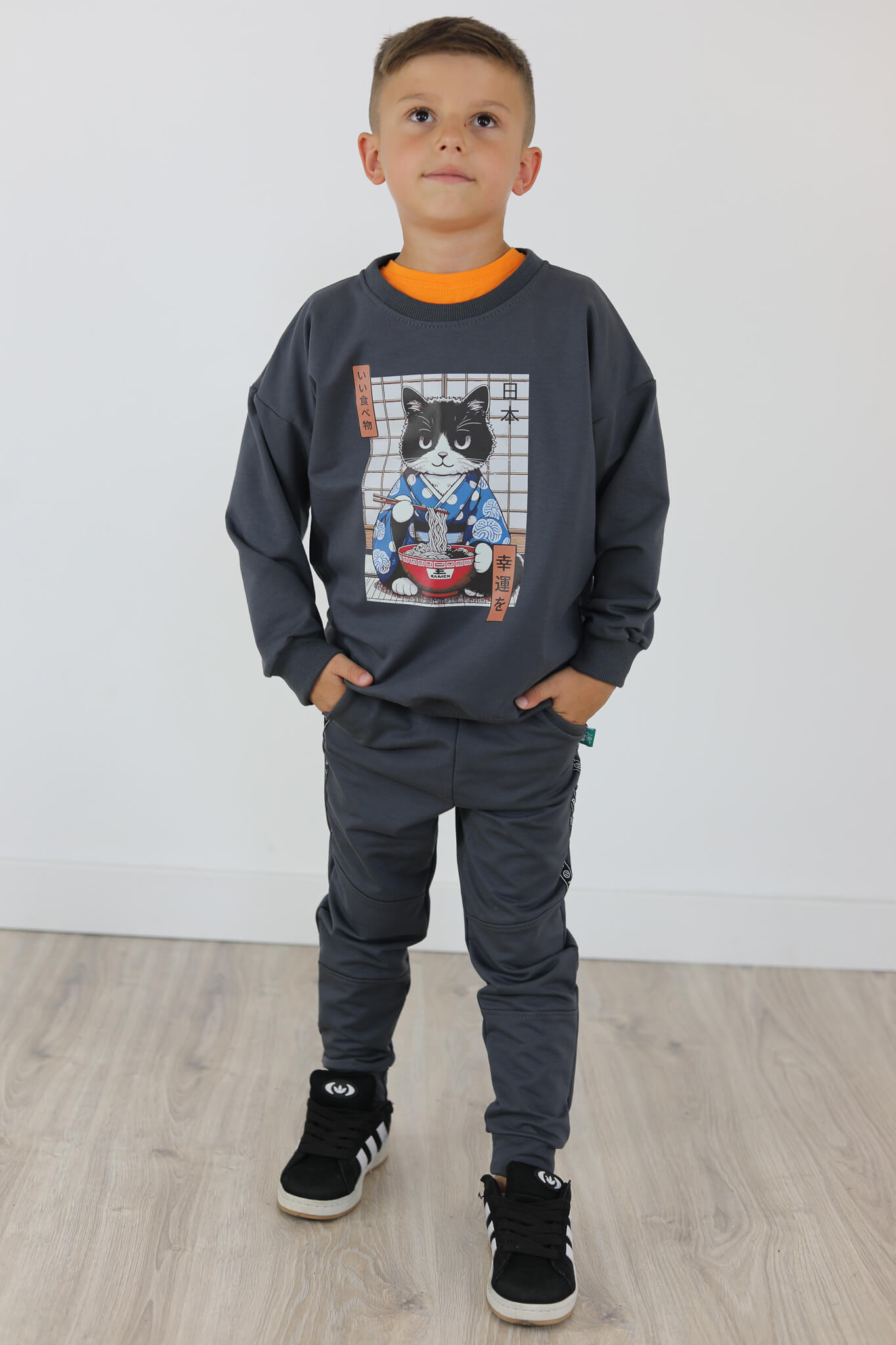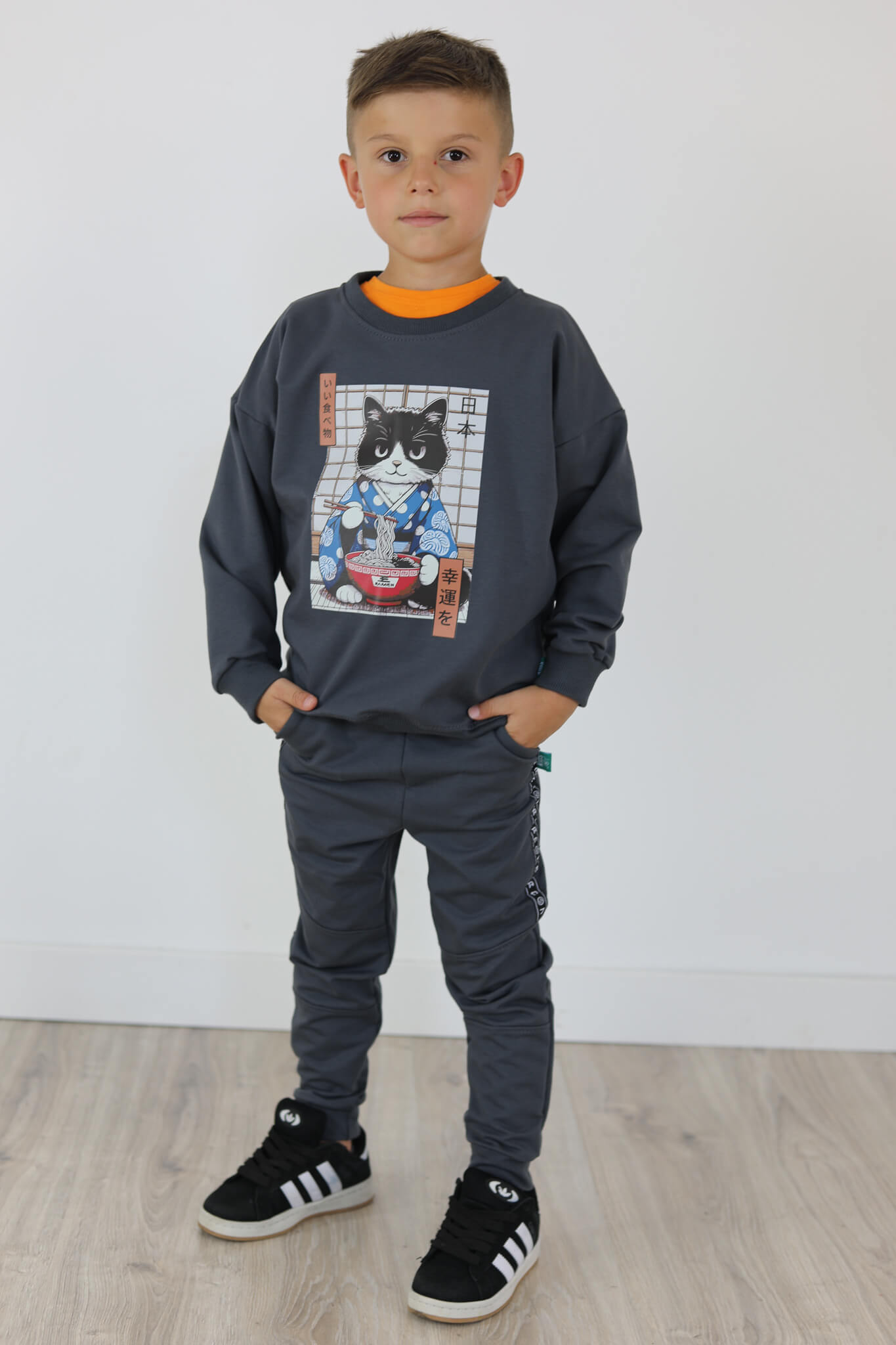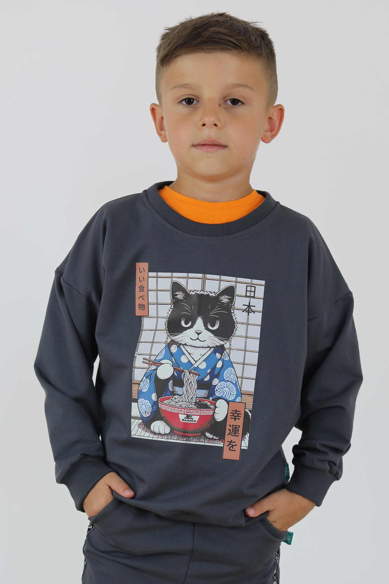 Bluza motylkowy rękaw KOT RAMEN grafit