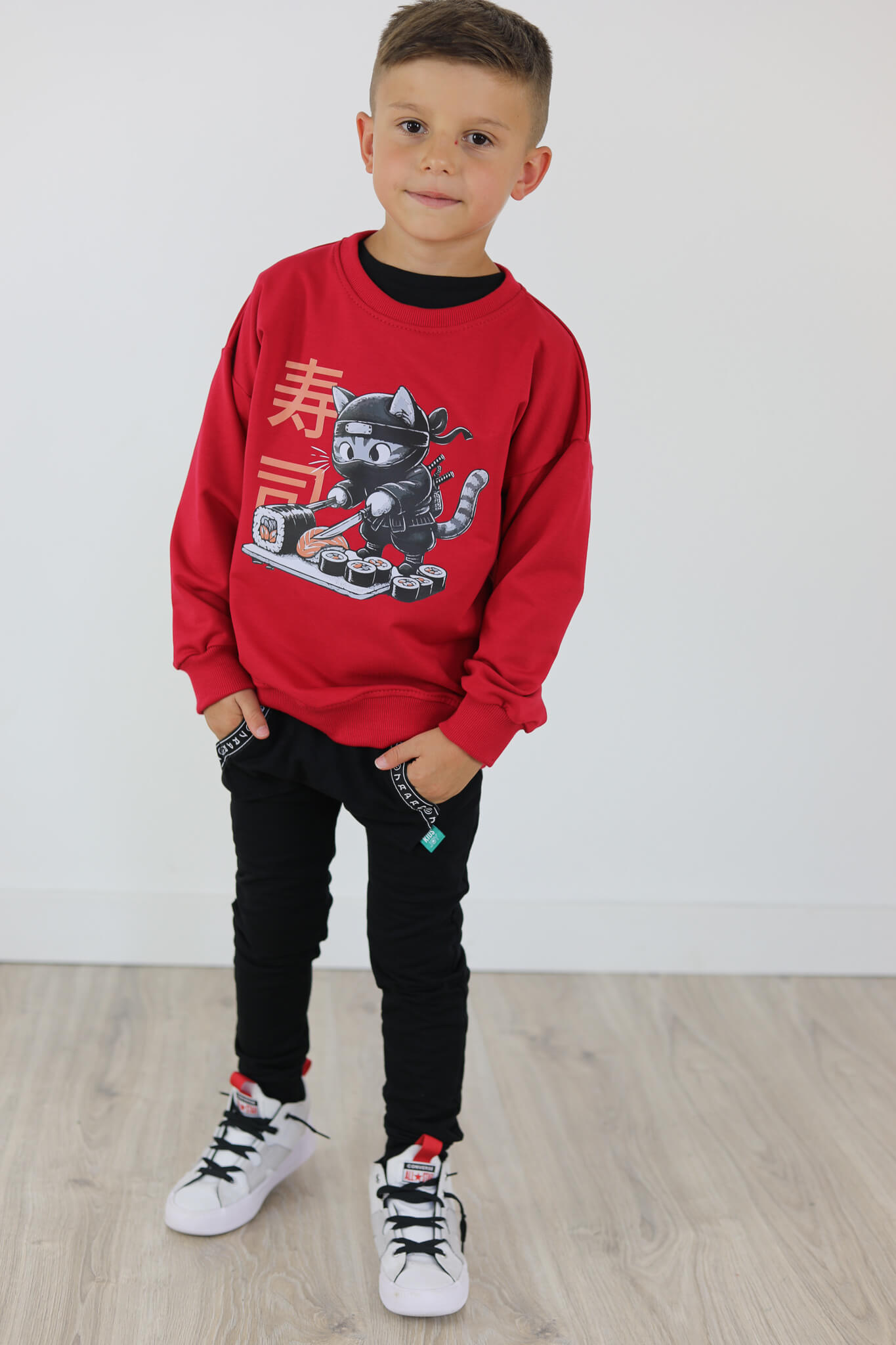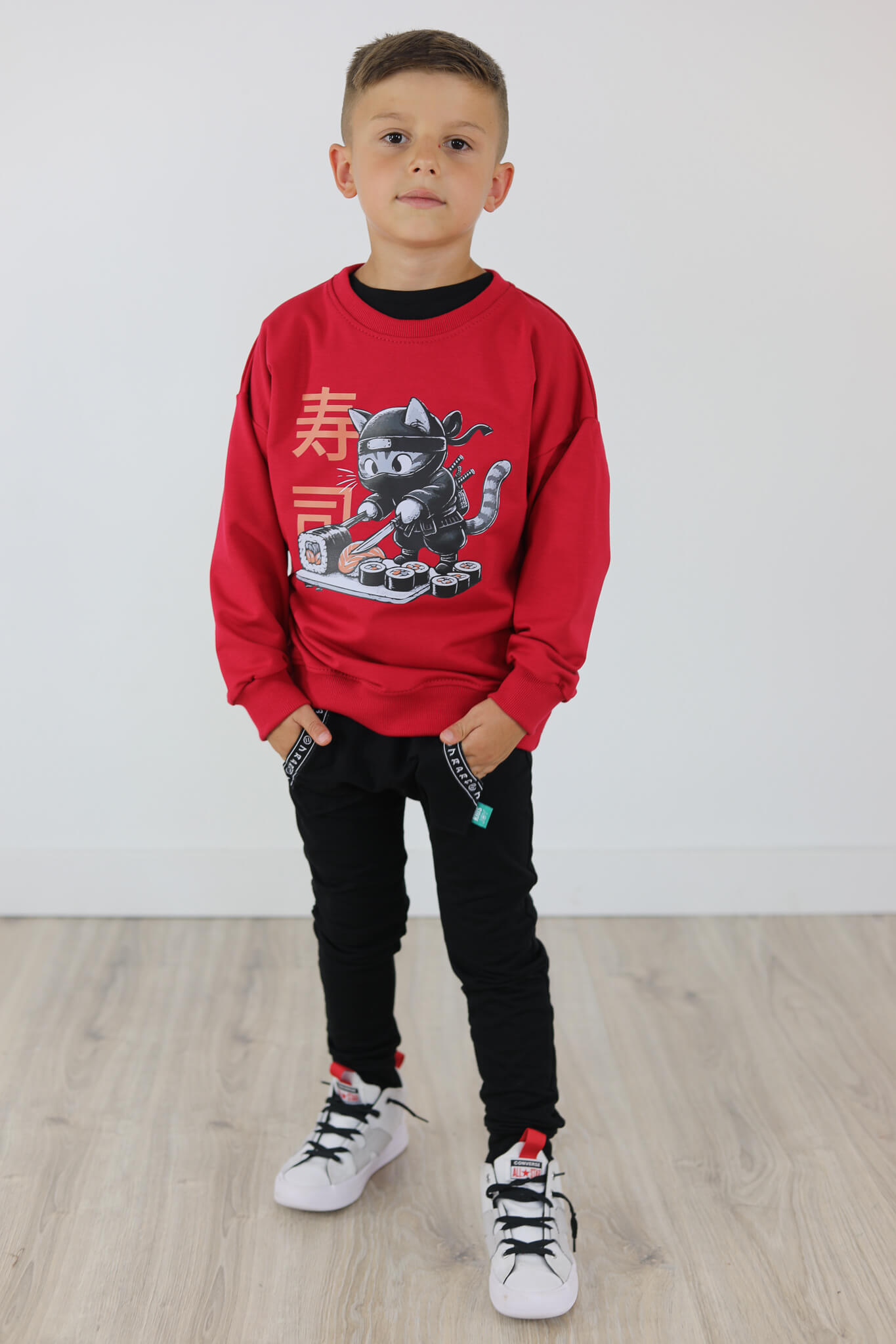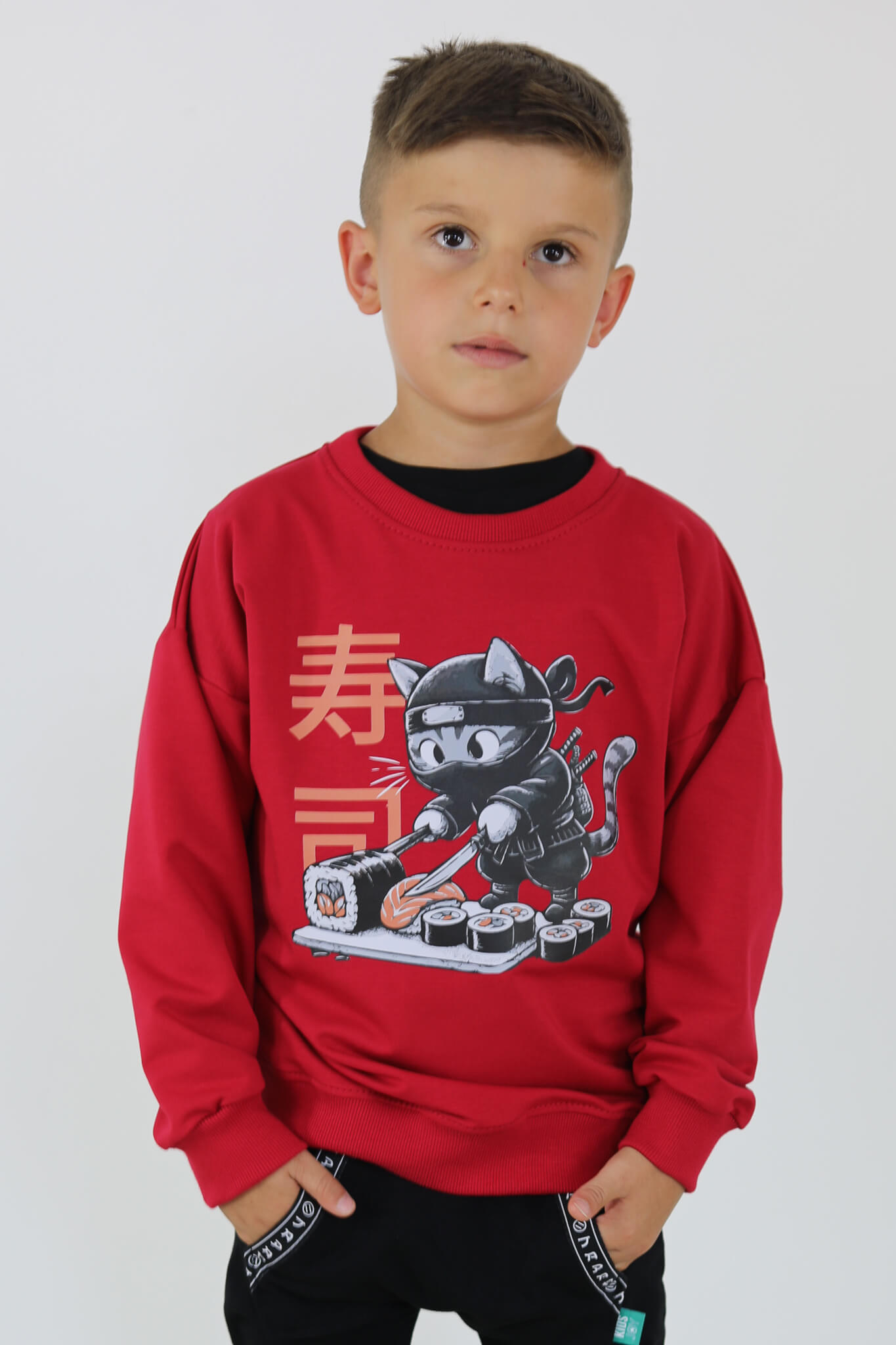 Bluza motylkowy rękaw KOT SUSHI malinowa czerwień