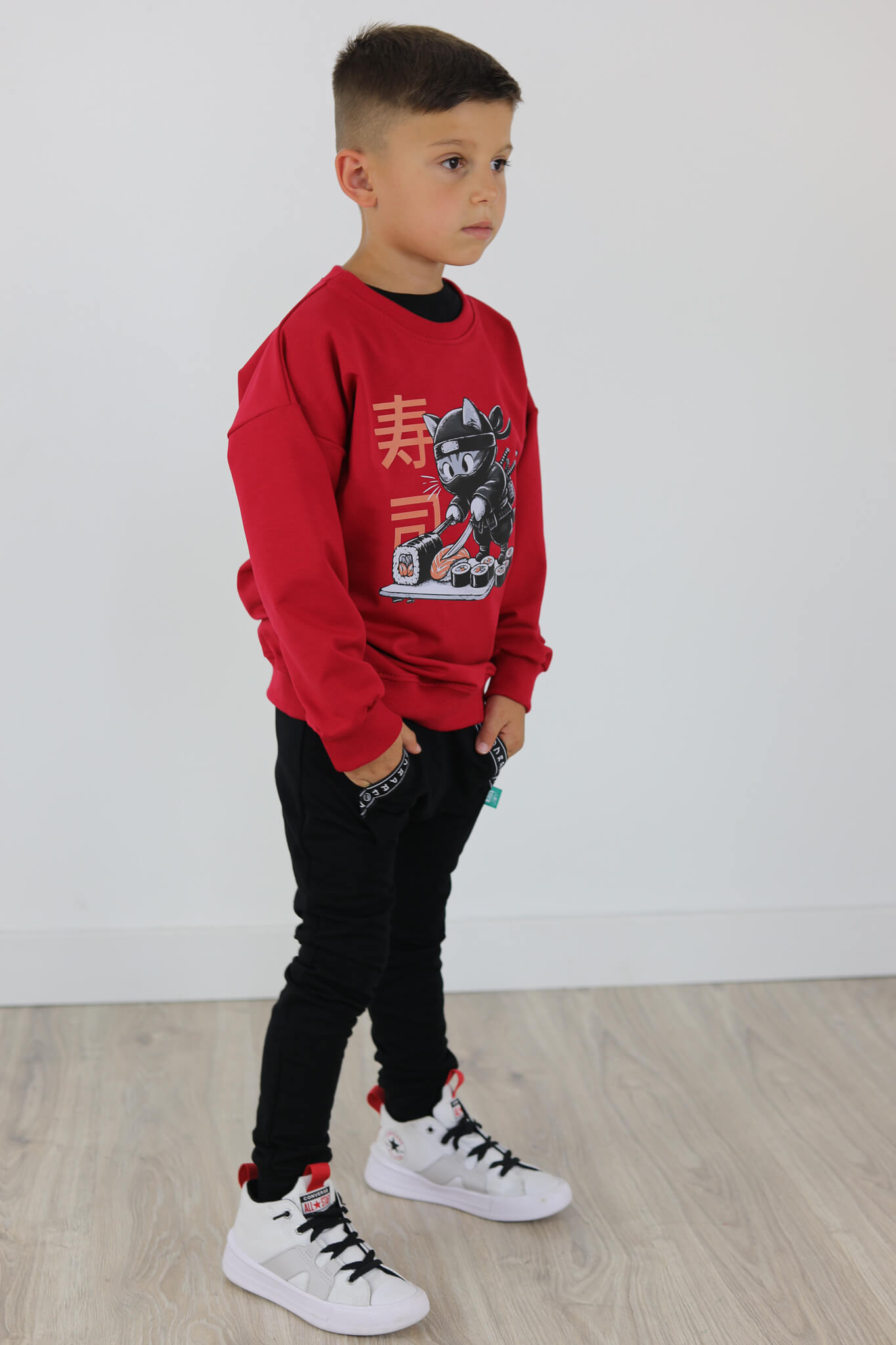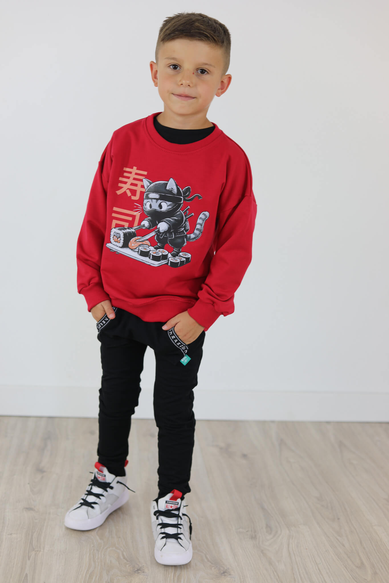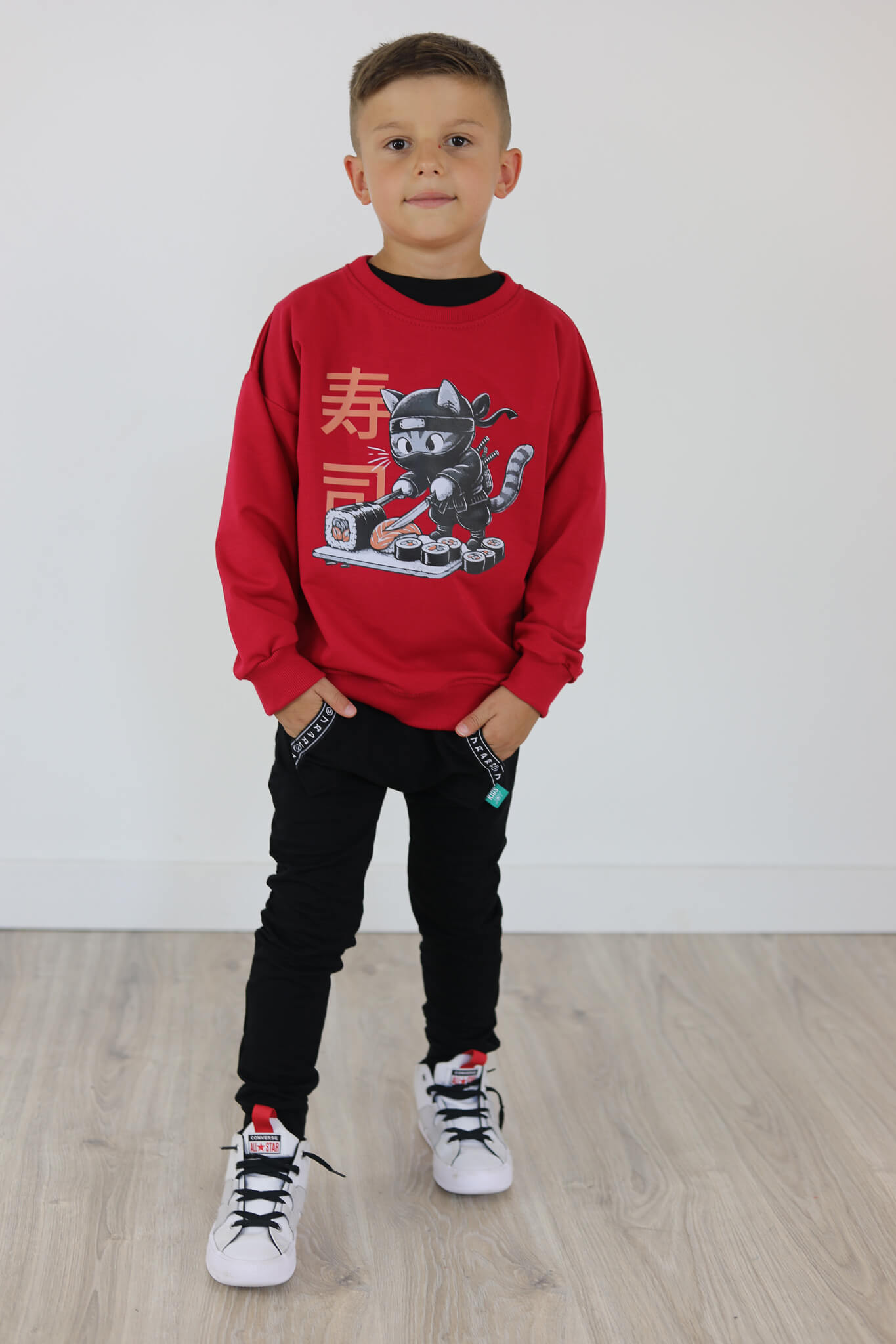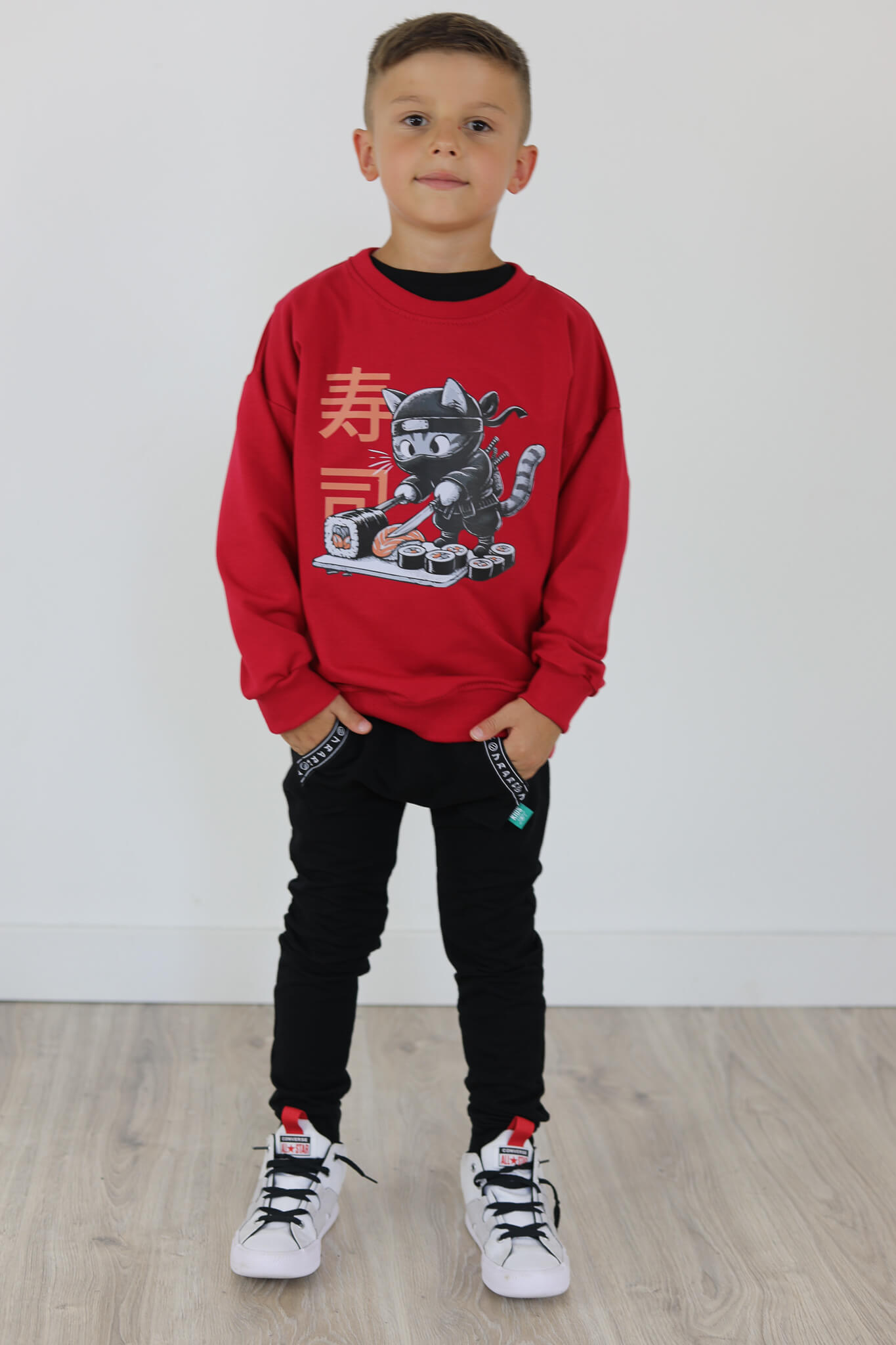 Bluza motylkowy rękaw KOT SUSHI malinowa czerwień