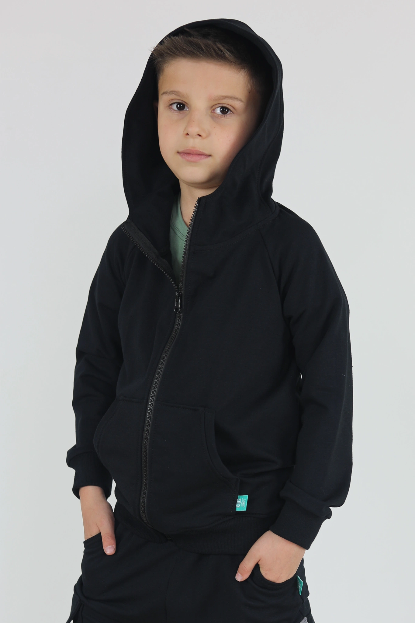 Bluza zapinana na zamek z ozdobnym pasem na kapturze.