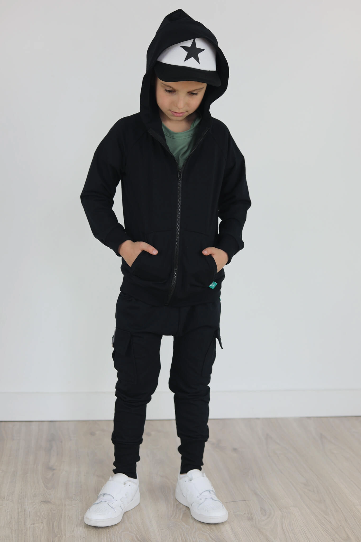 Bluza z OZDOBNYM PASEM NA KAPTURZE czarna BZ01