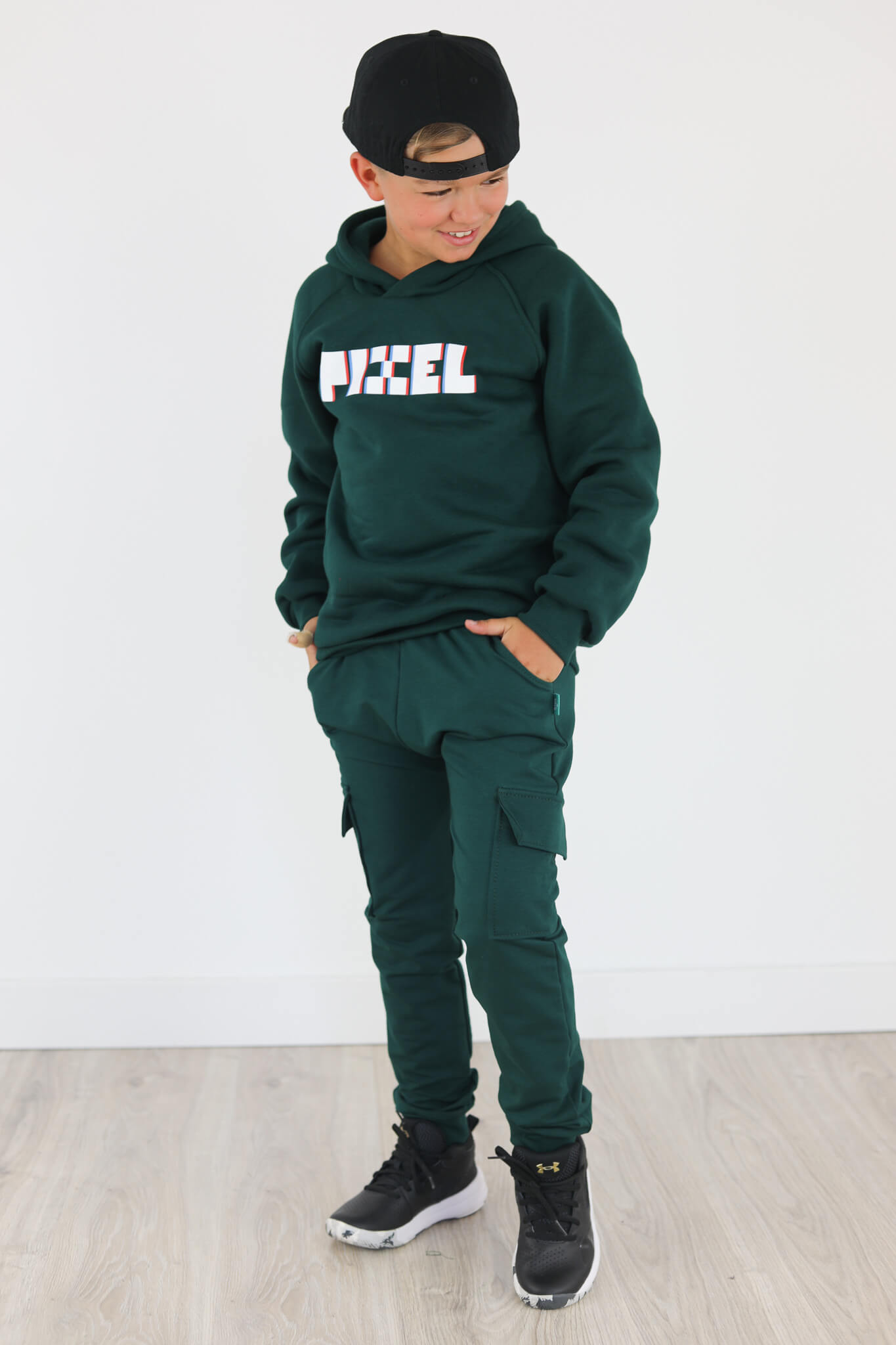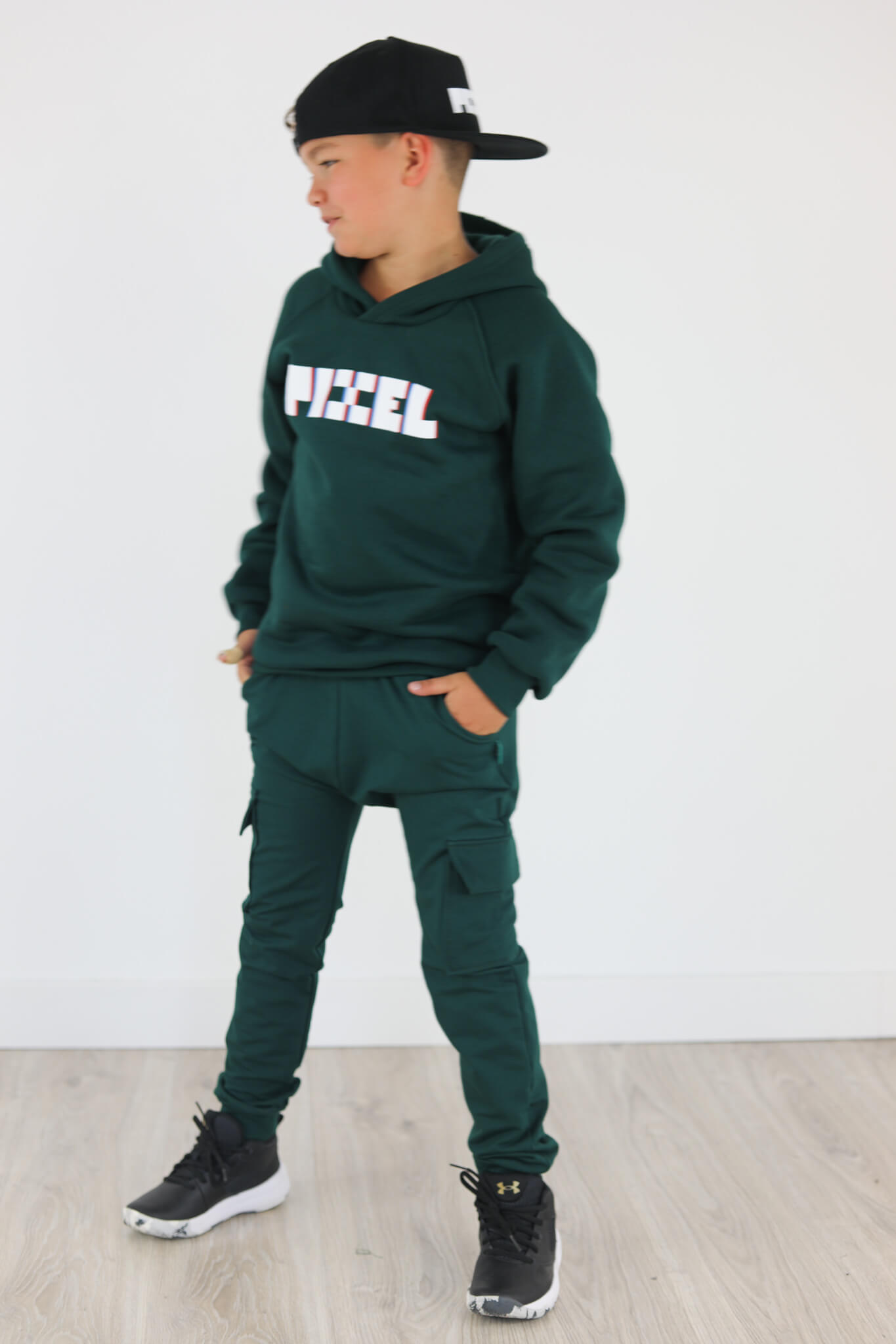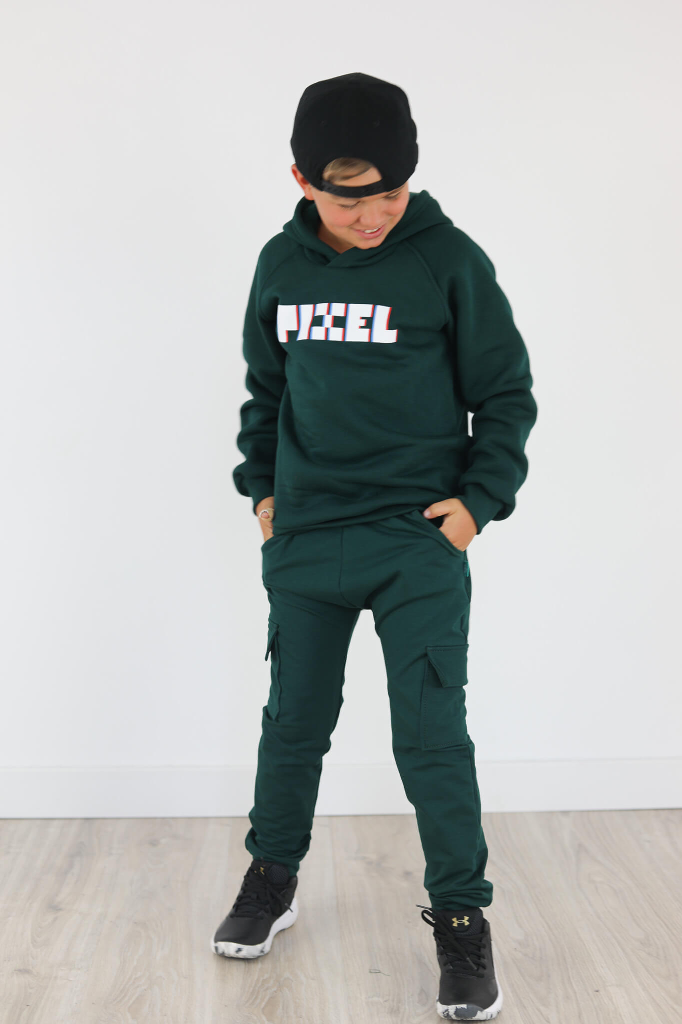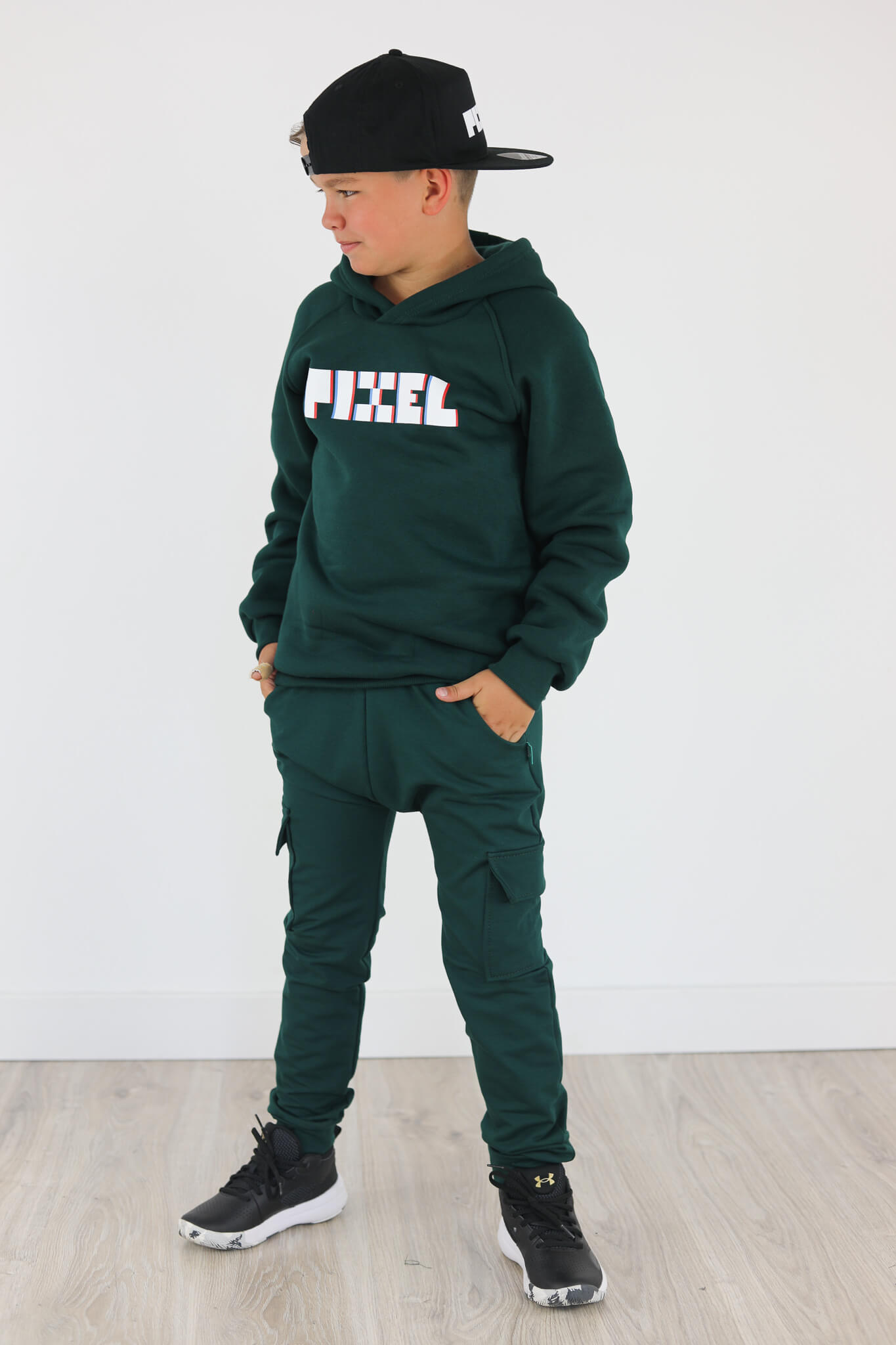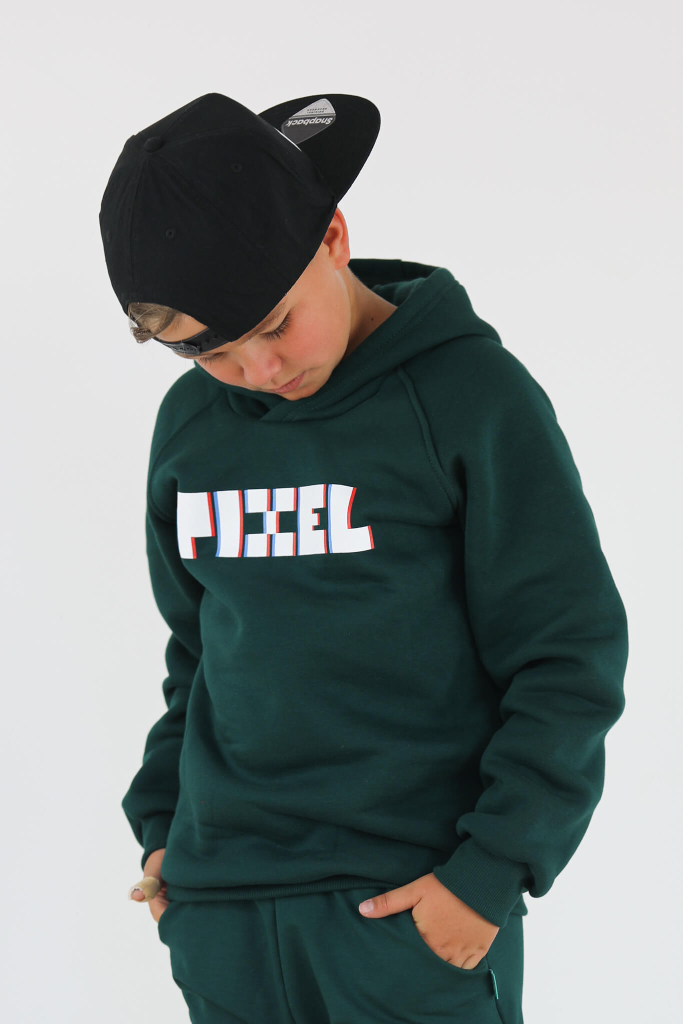 Bluza z kapturem PIXEL zieleń ocieplana B06p