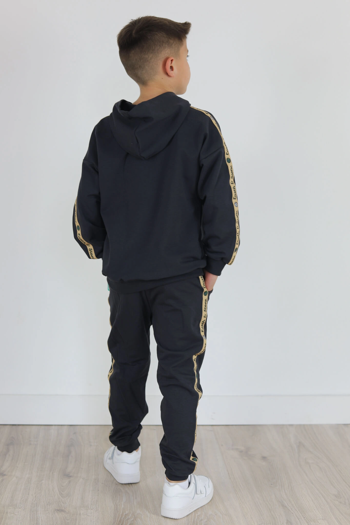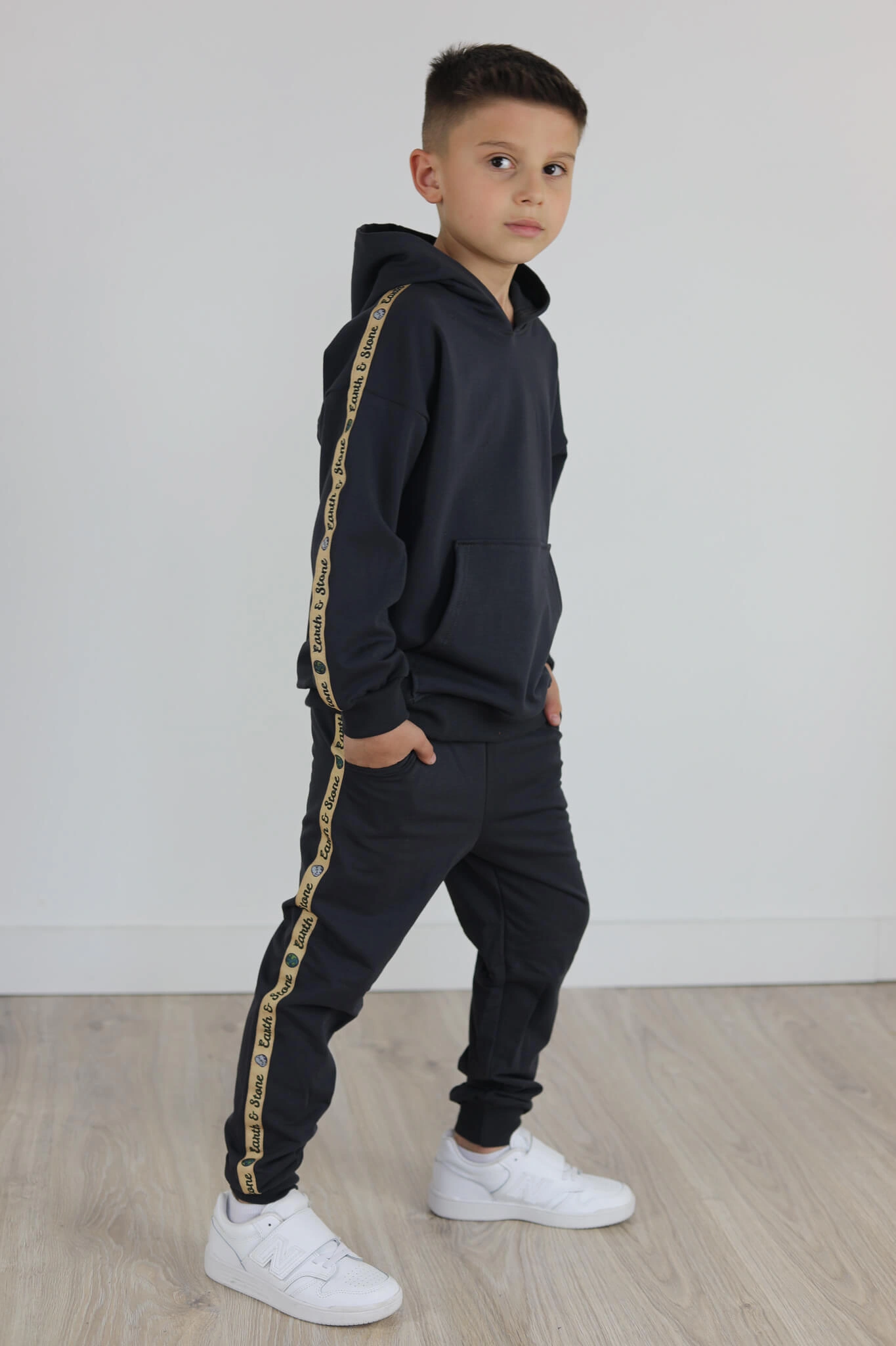 Bluza z kapturem i ozdobnym lampasem z kolekcji EARTH&STONE. Bluza o lekko oversizowym kroju z dużą kieszenią kangurką. Pas i mankiet ze ściągacza w kolorze dresu.