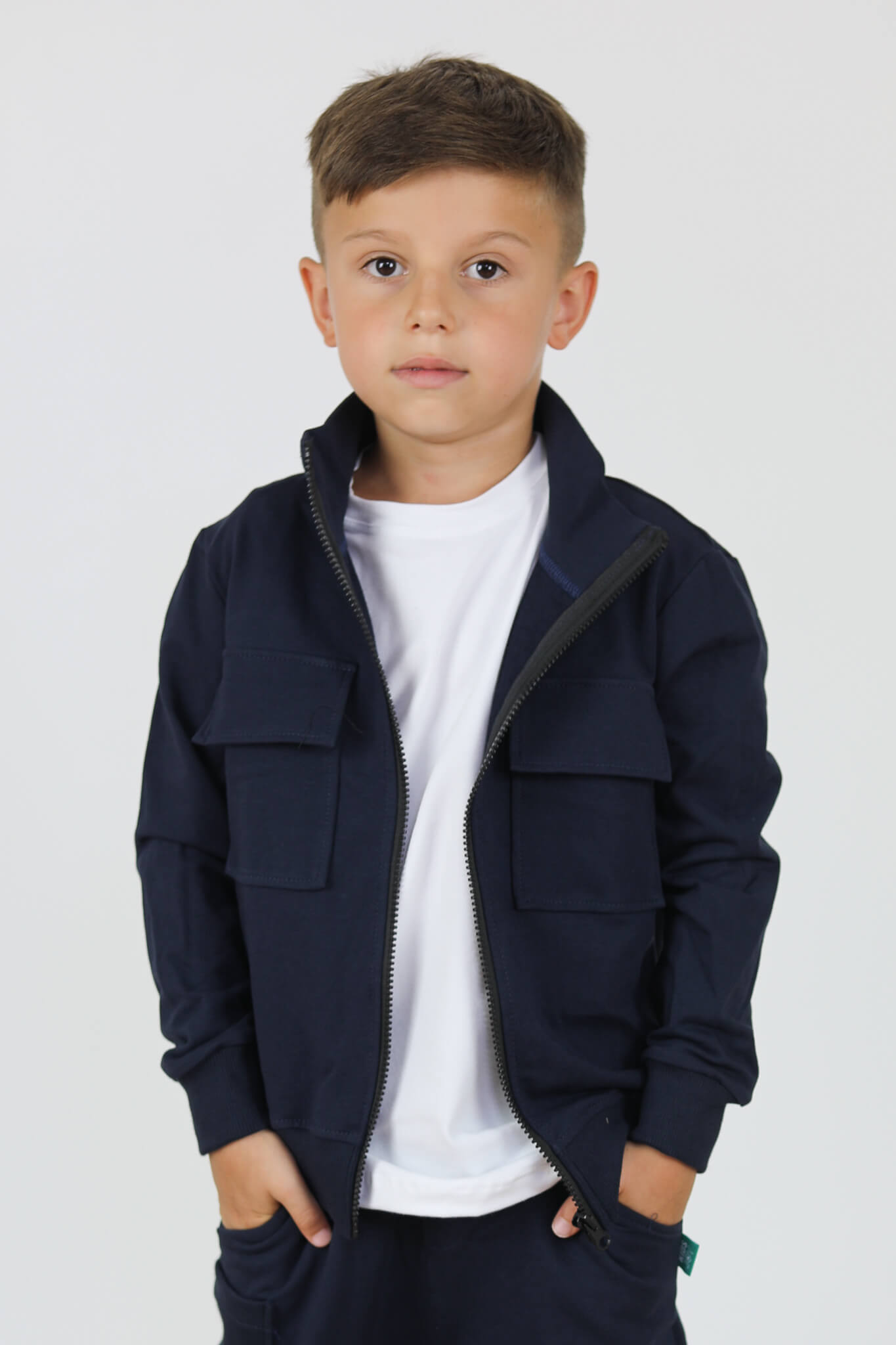 Bluza ze stójką i kieszeniami z patkami. Bardzo praktyczna bluza na jesień i zimę.