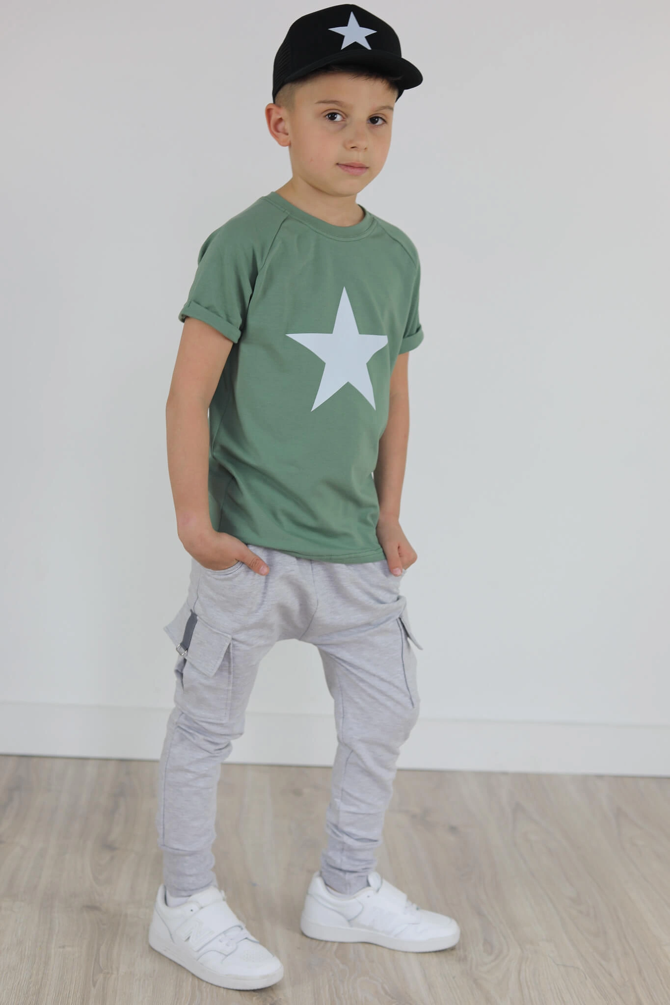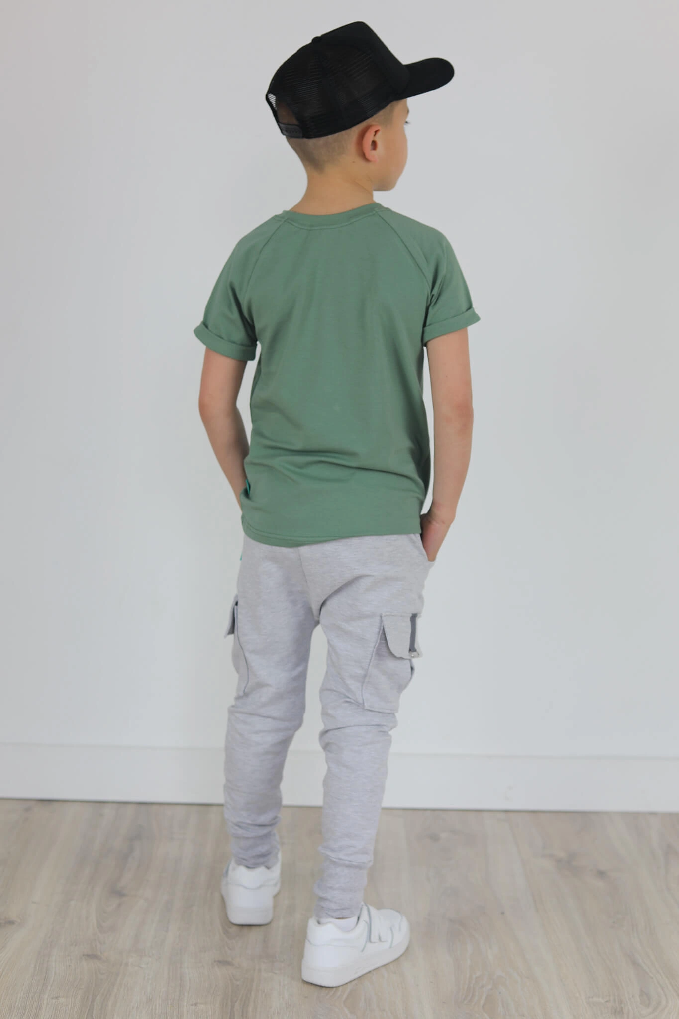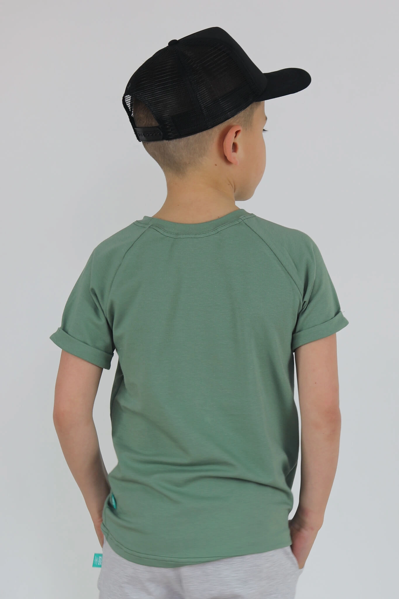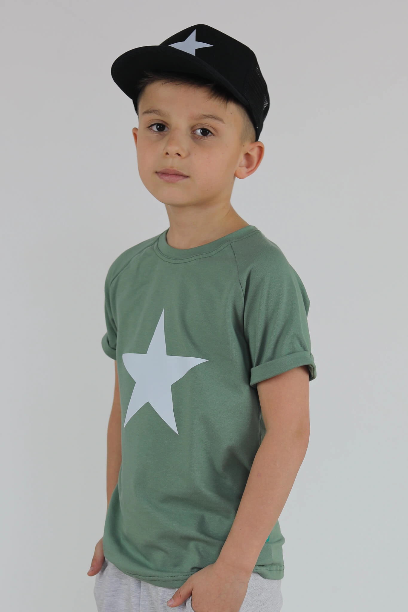 Klasyczna koszulka z krótkim wywiniętym rękawem i nadrukiem.
