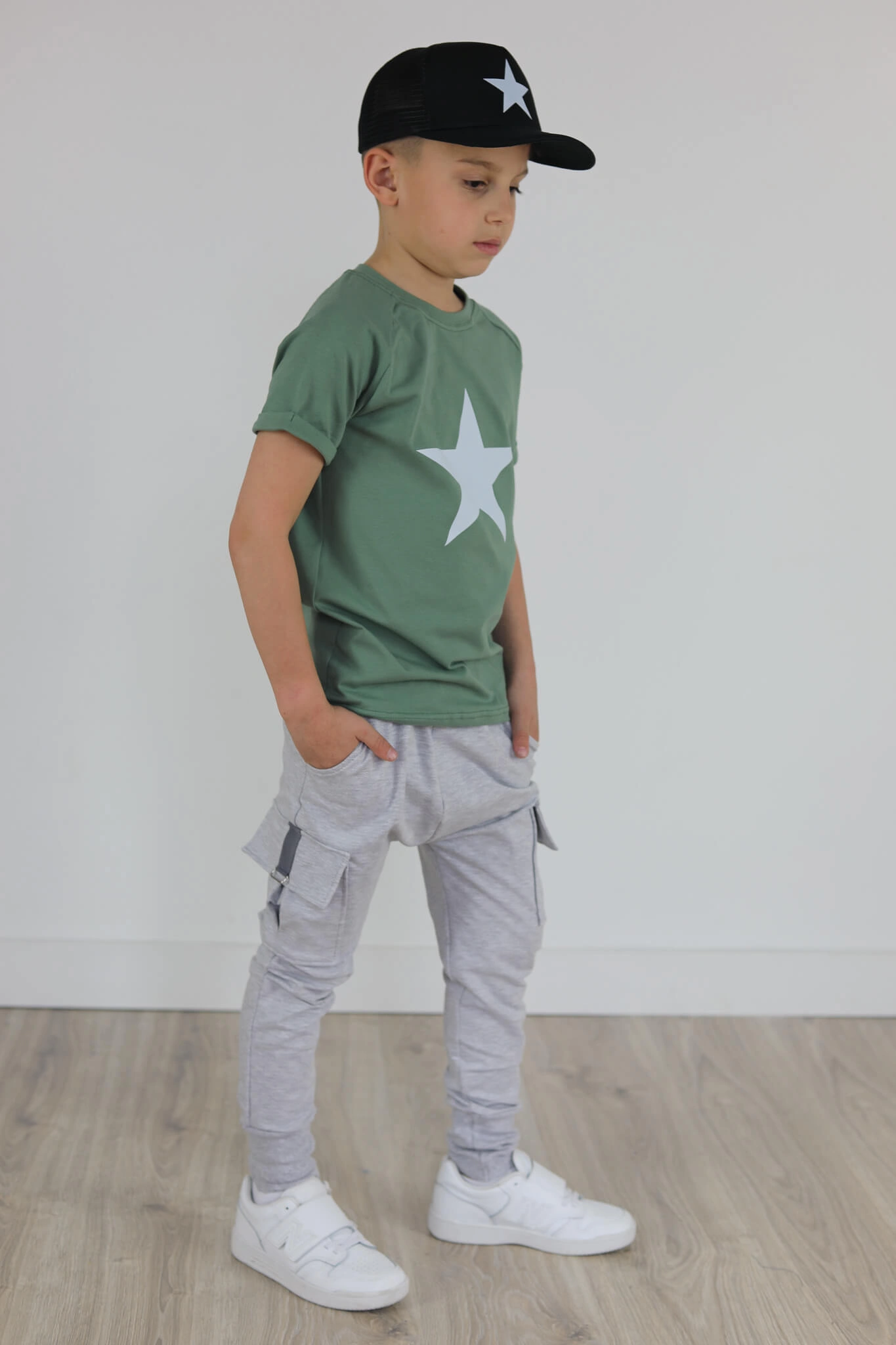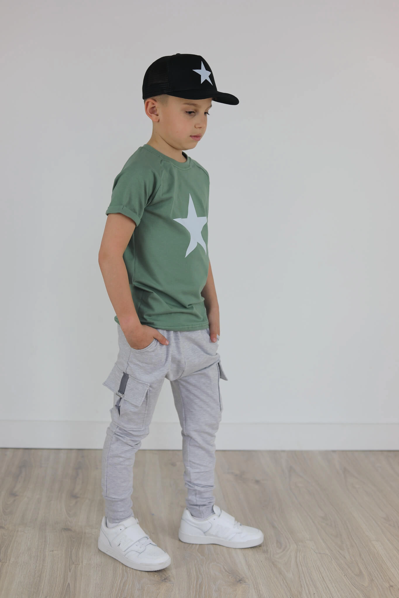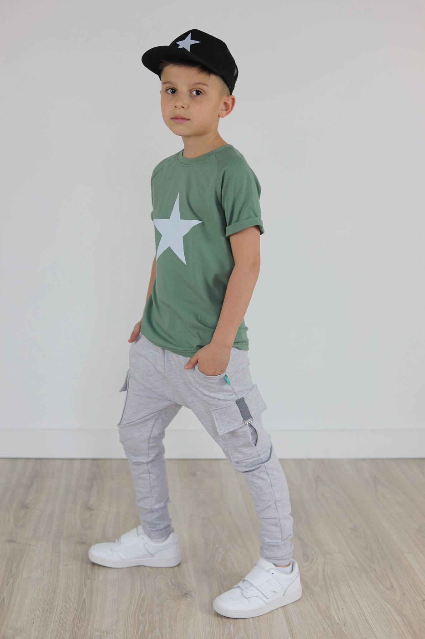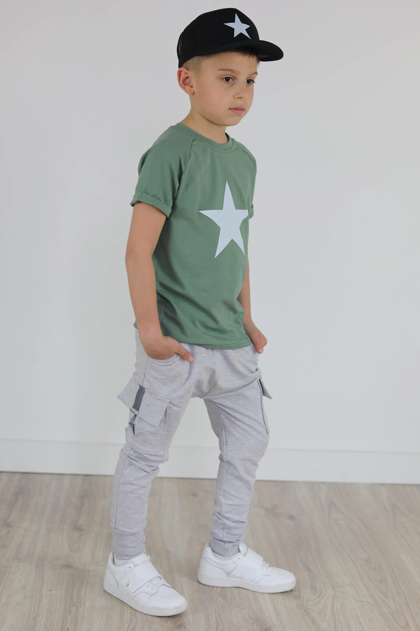 Klasyczna koszulka z krótkim wywiniętym rękawem i nadrukiem.