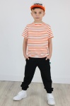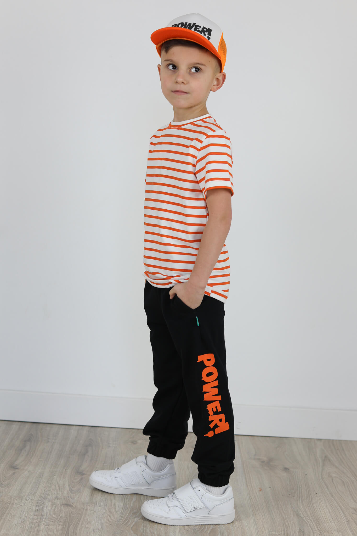 Koszulka z krótkim rękawem z nadrukiem w PASKI na dresie w kolorze ecru. Paski są w kolorach naszej najnowszej kolekcji. Doskonała baza do różnych stylizacji.