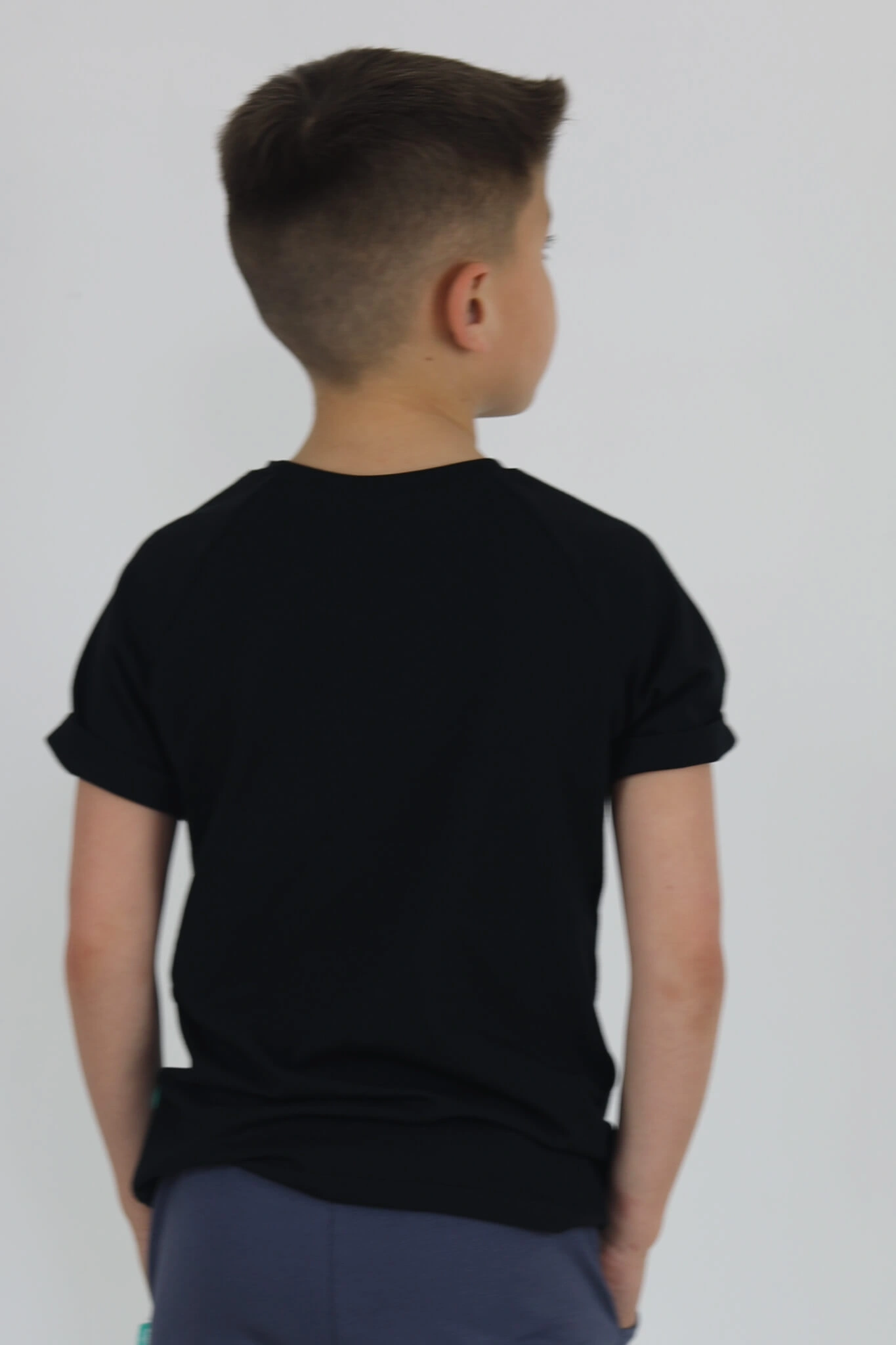 Koszulka WYWINIĘTY krótki RĘKAWEK czarna