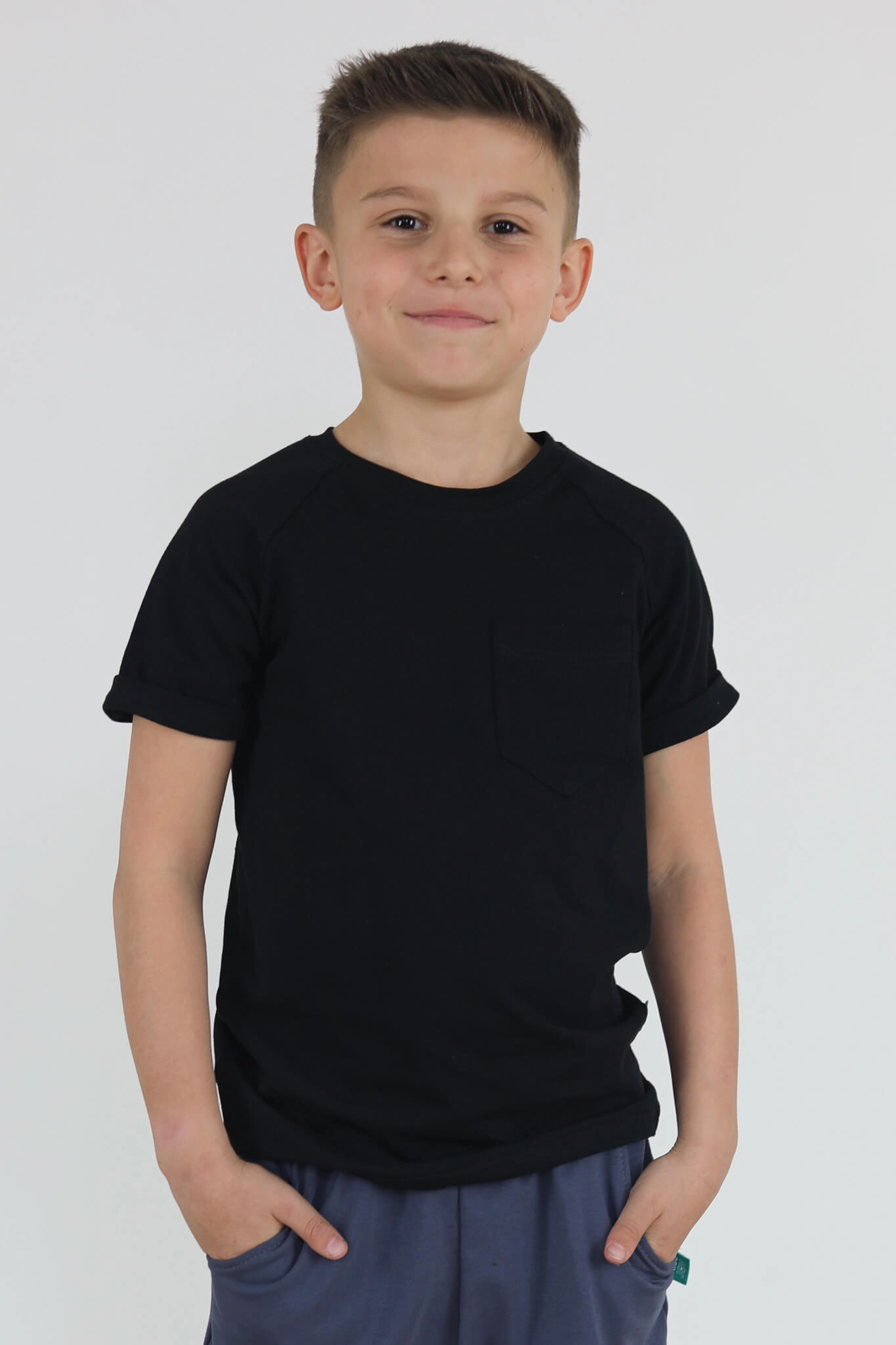 Klasyczna koszulka z krótkim wywiniętym rękawem oraz kieszonką.