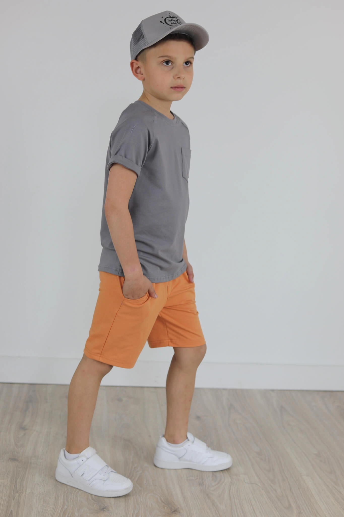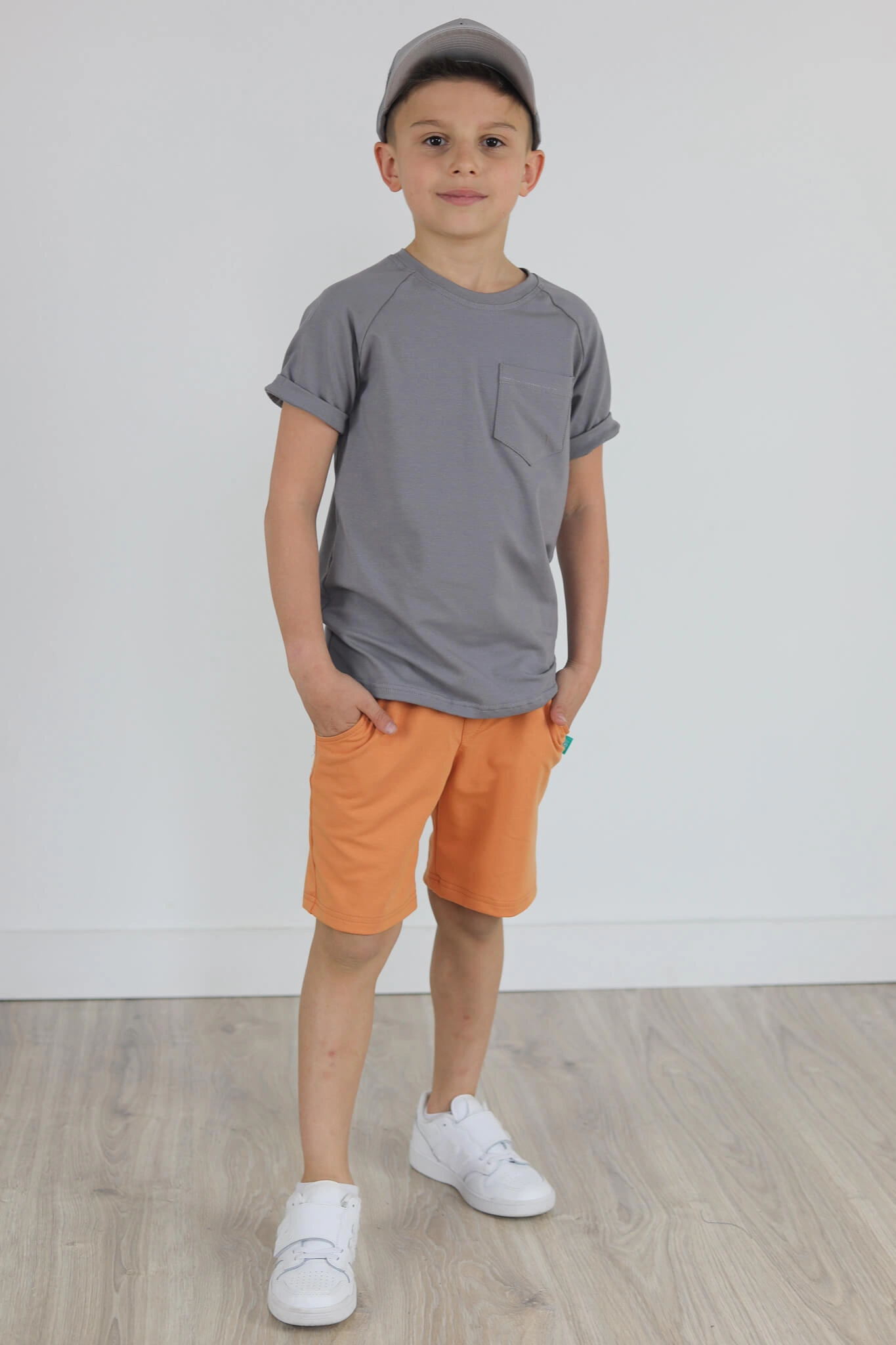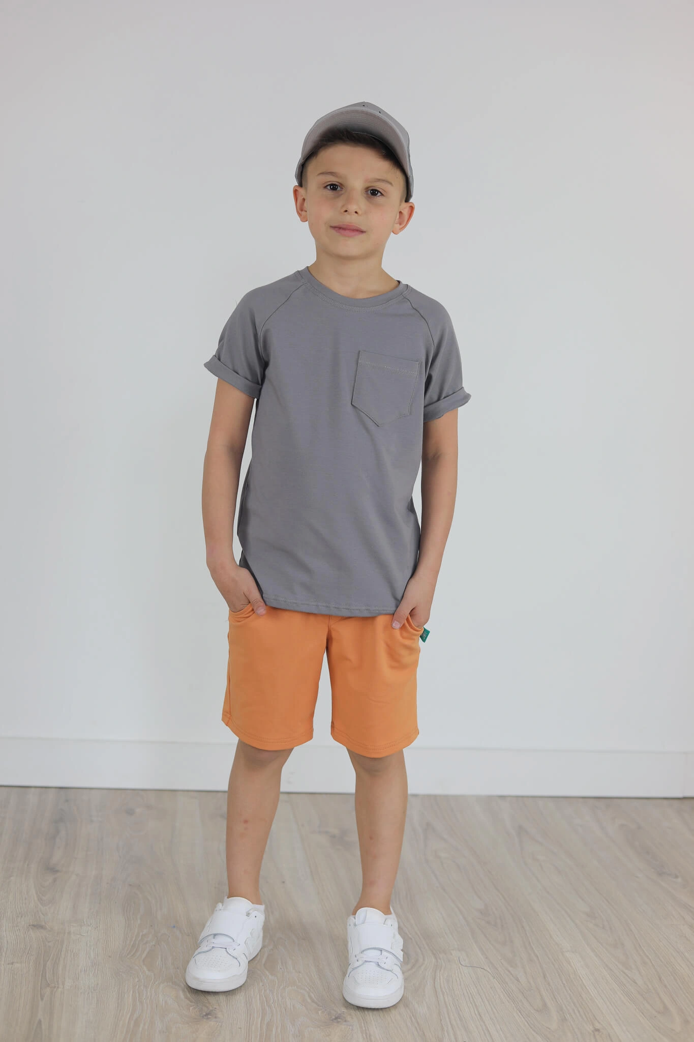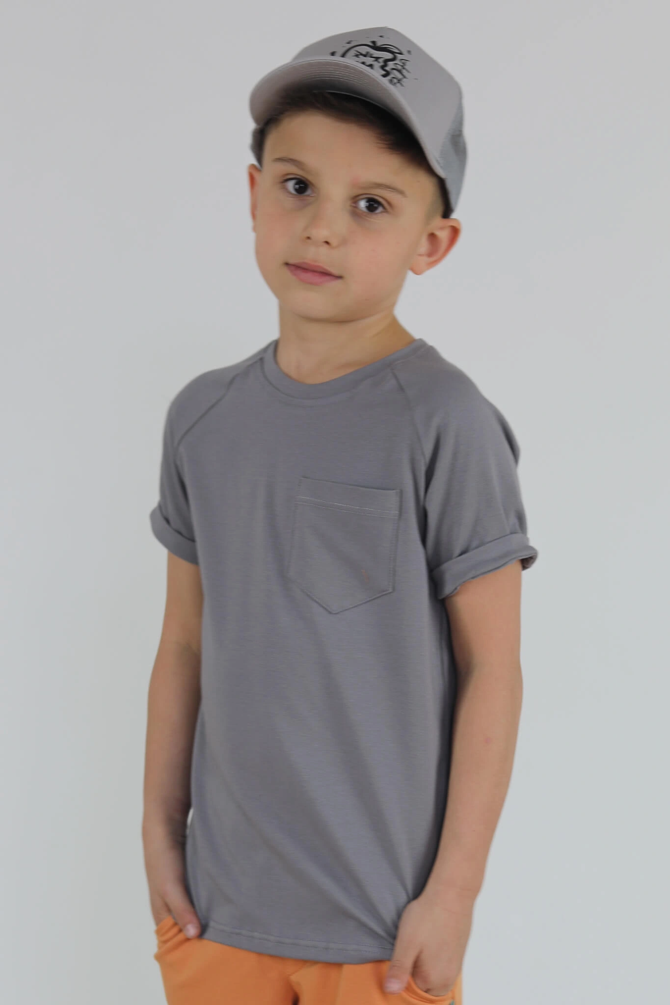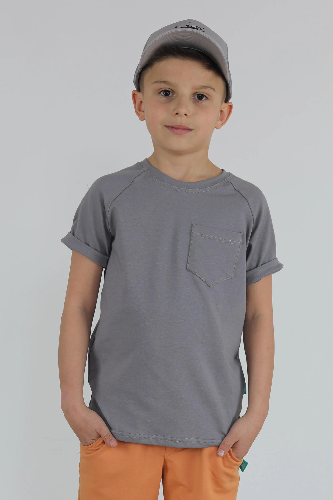 Klasyczna koszulka z krótkim wywiniętym rękawem oraz kieszonką.