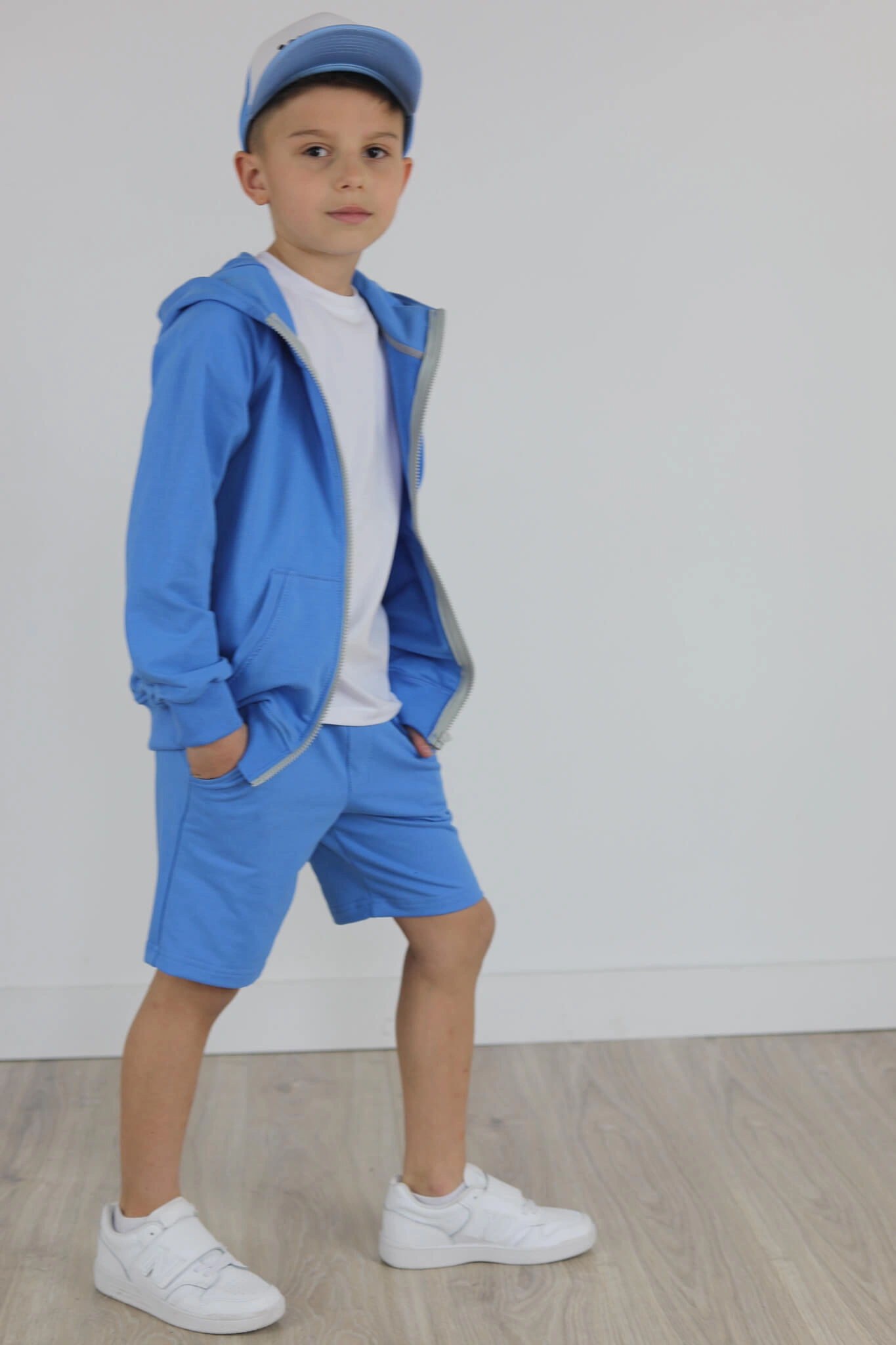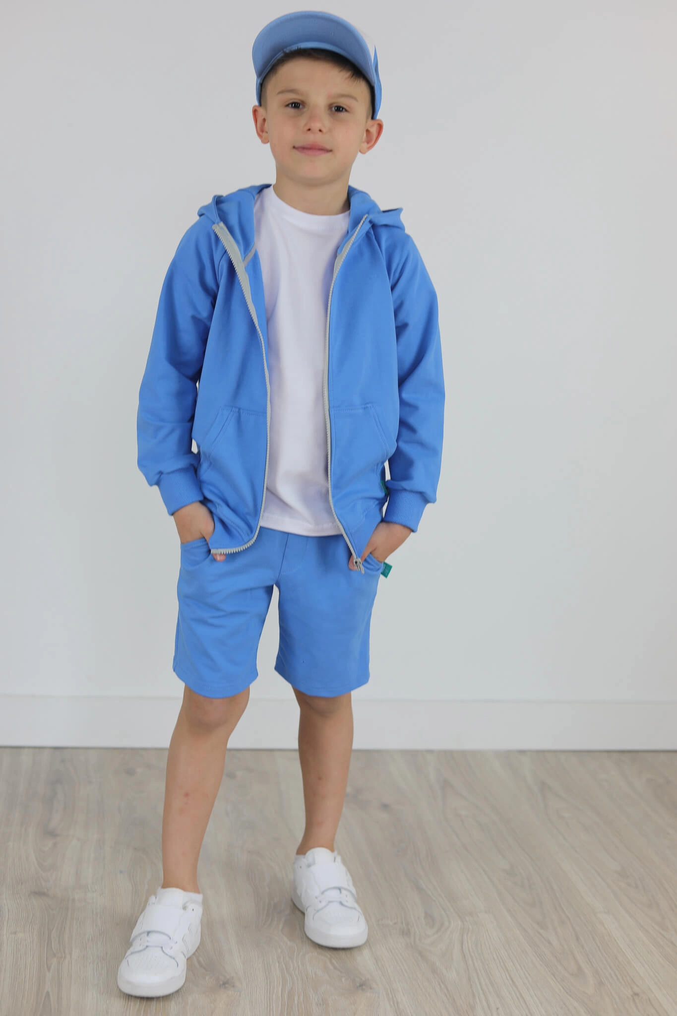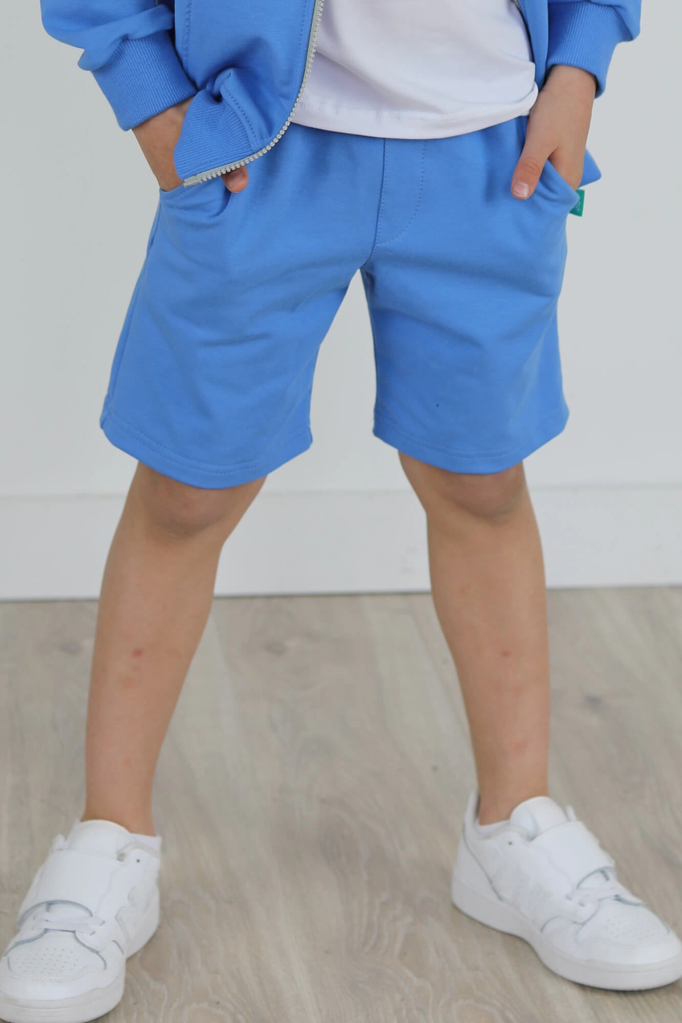 SPODENKI KLASYK z minimalistycznymi szwami z lekko obniżonym krokiem, nogawka trochę dłuższa aby spodenki nadawały się do szkoły i przedszkola wczesną wiosną.