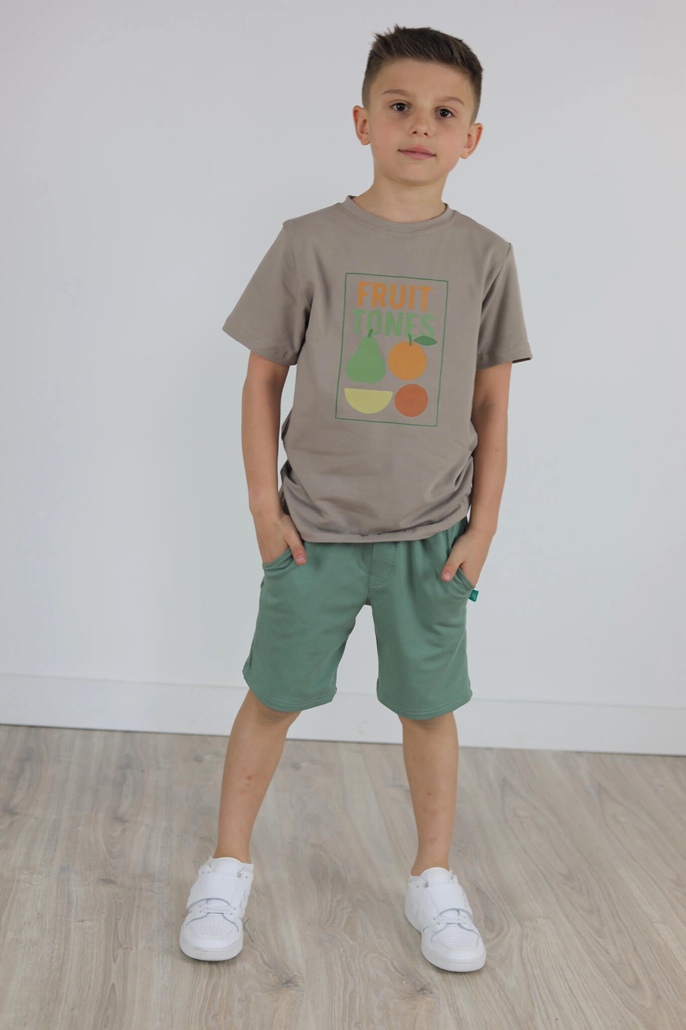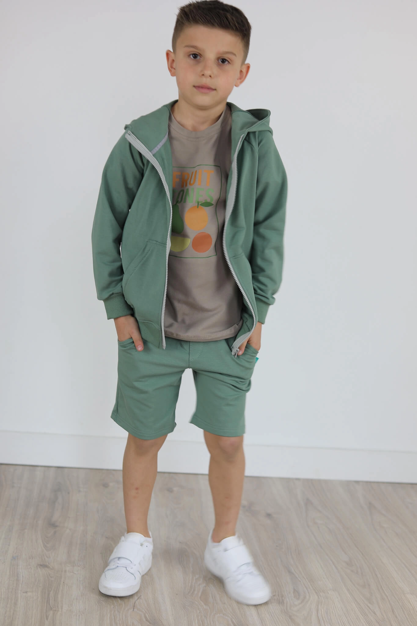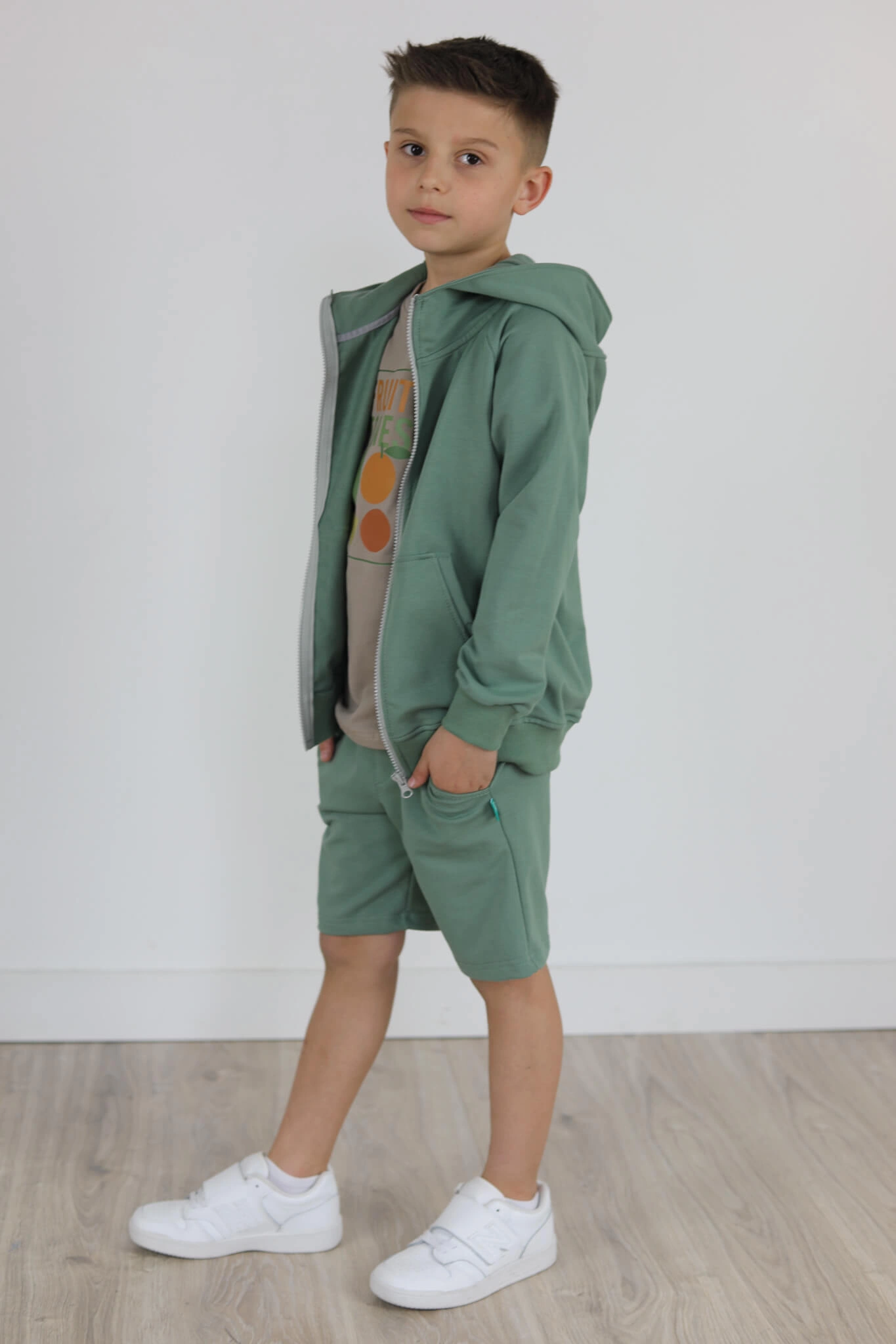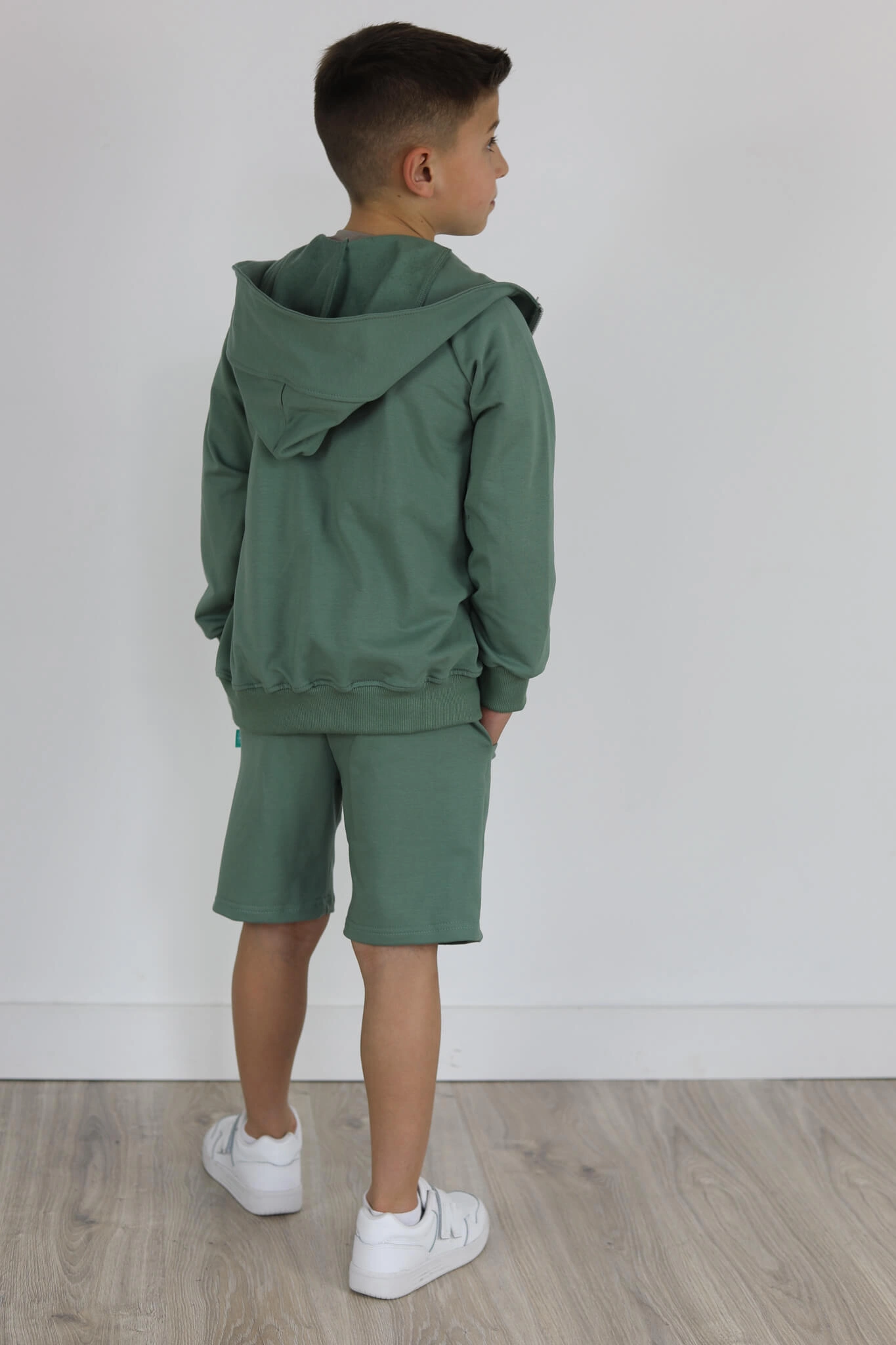SPODENKI KLASYK z minimalistycznymi szwami z lekko obniżonym krokiem, nogawka trochę dłuższa aby spodenki nadawały się do szkoły i przedszkola wczesną wiosną.