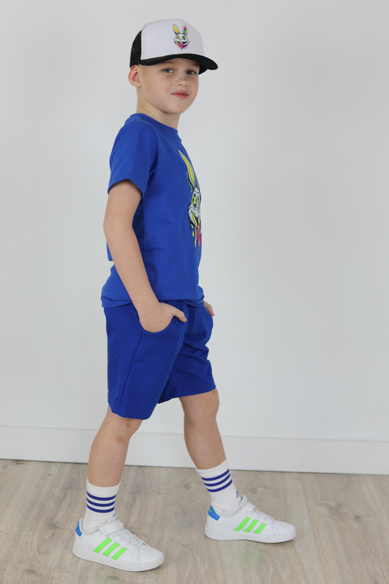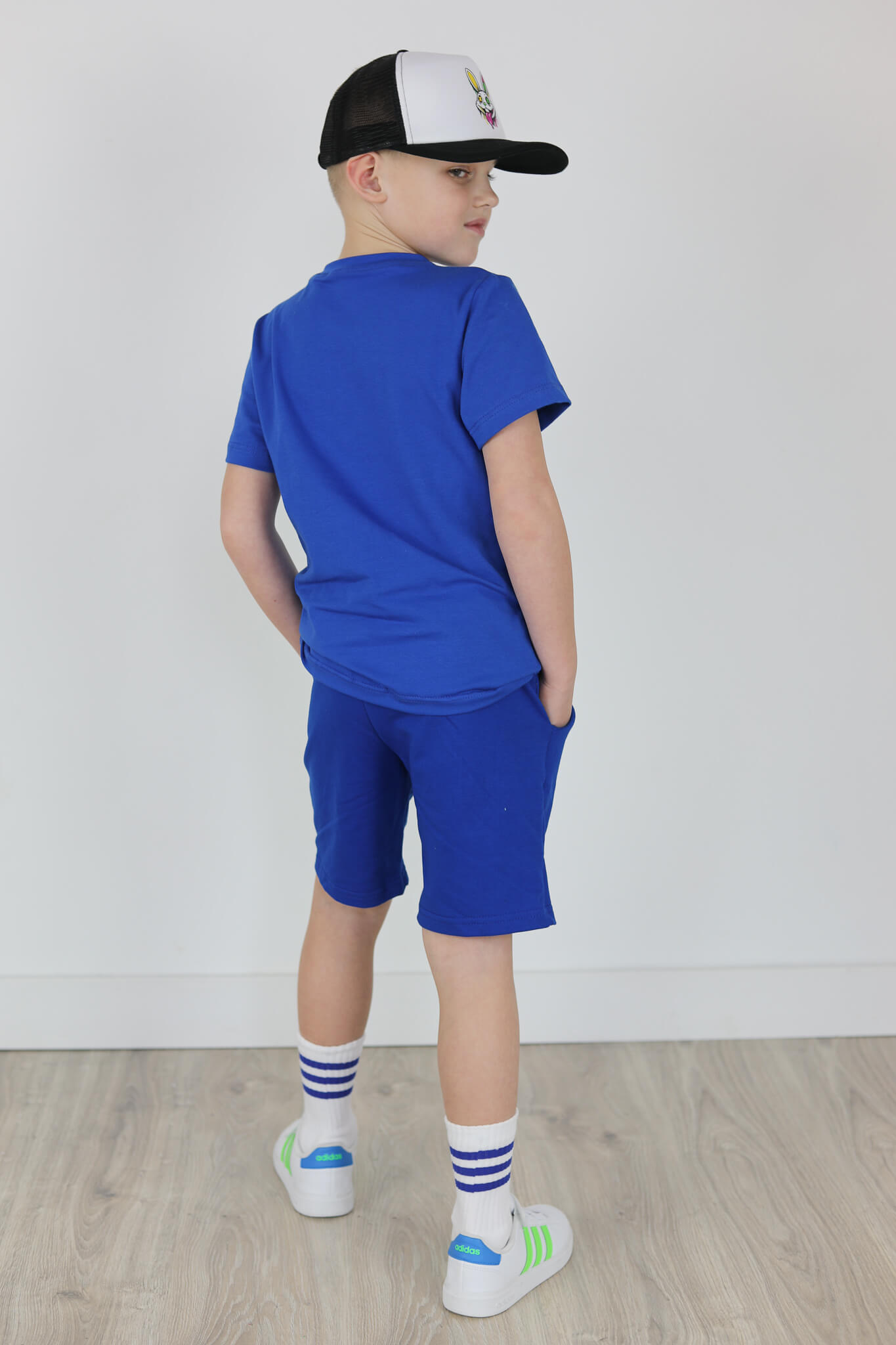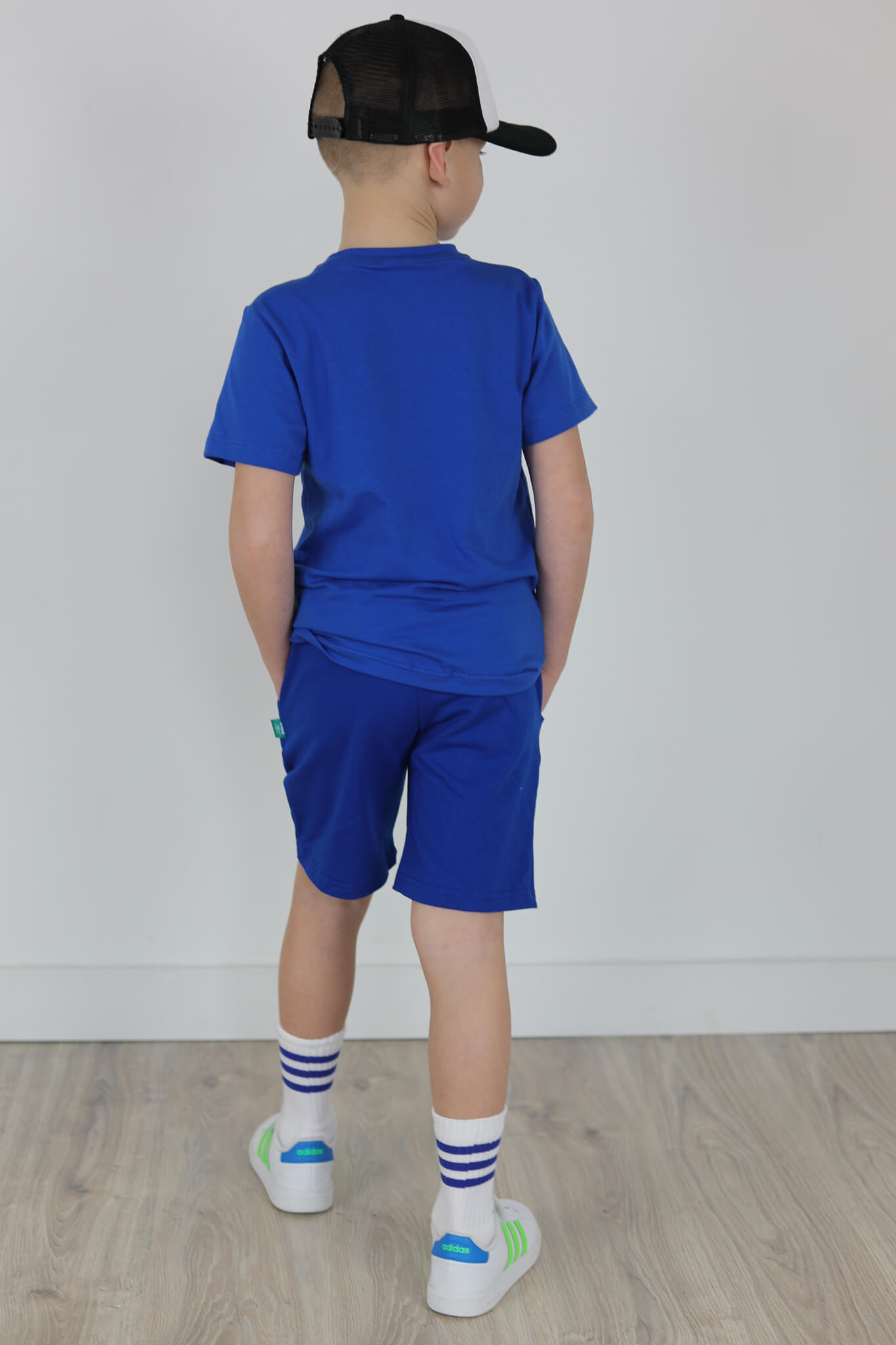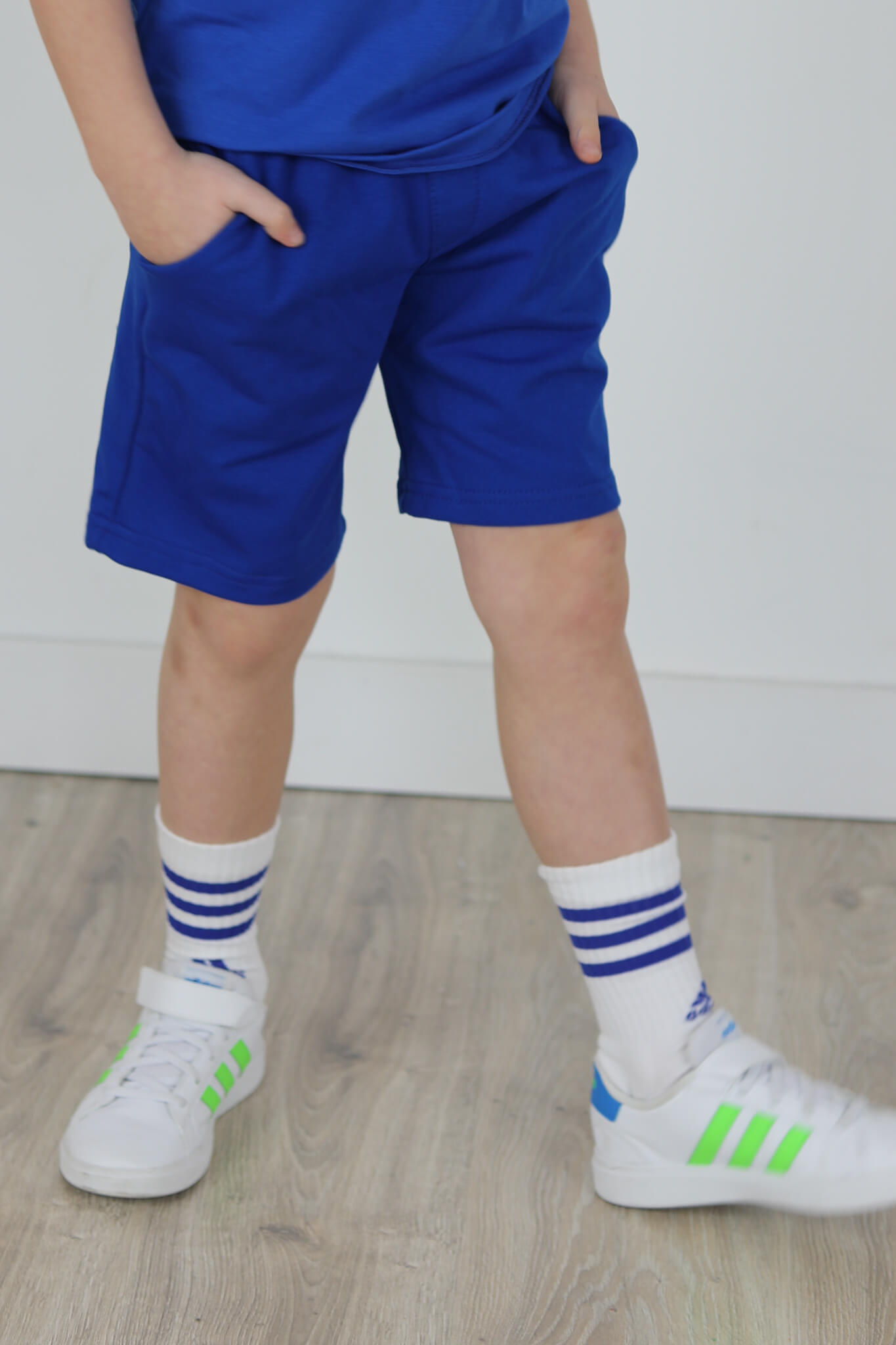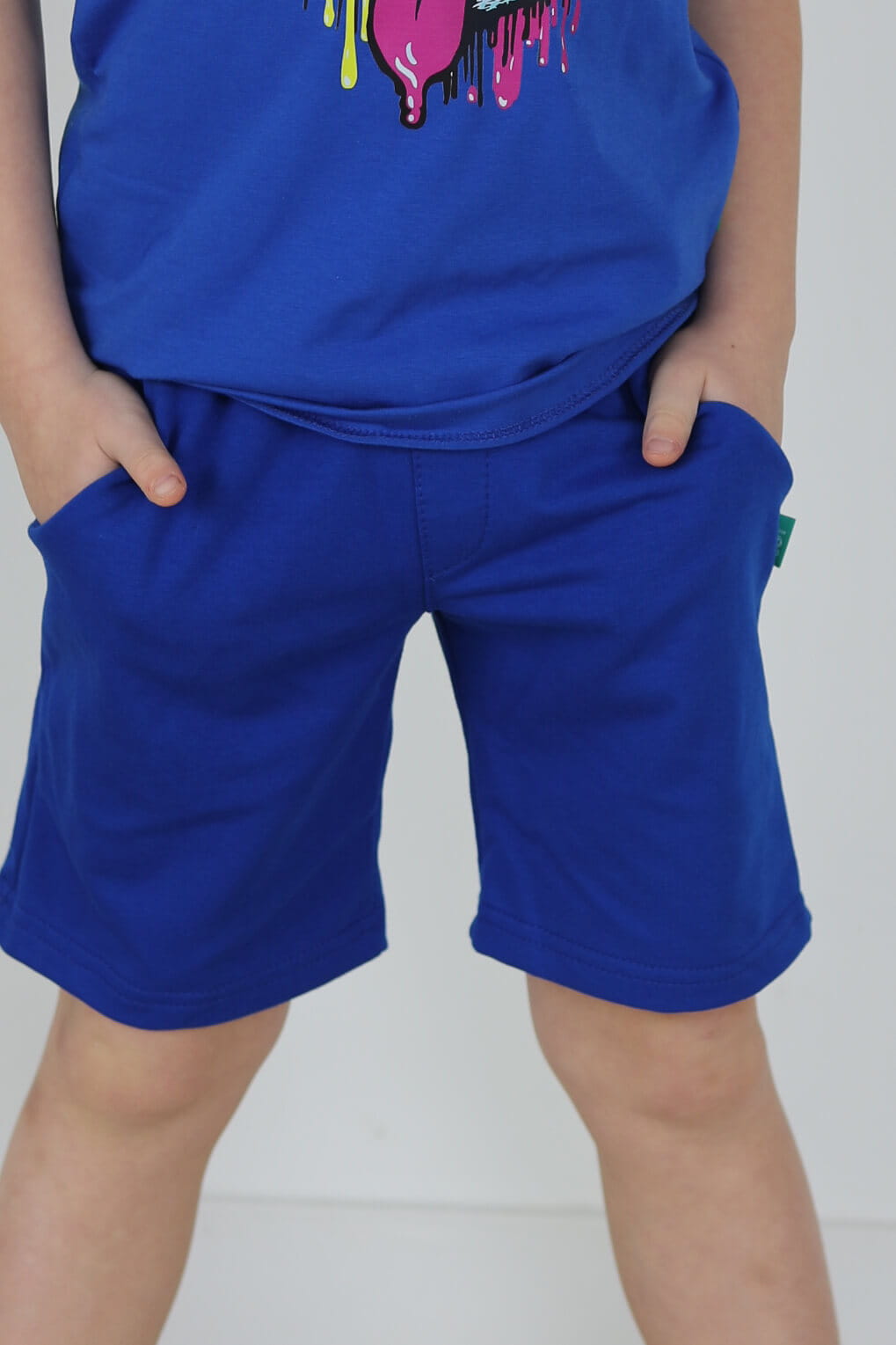 SPODENKI KLASYK z minimalistycznymi szwami z lekko obniżonym krokiem, nogawka trochę dłuższa aby spodenki nadawały się do szkoły i przedszkola wczesną wiosną.