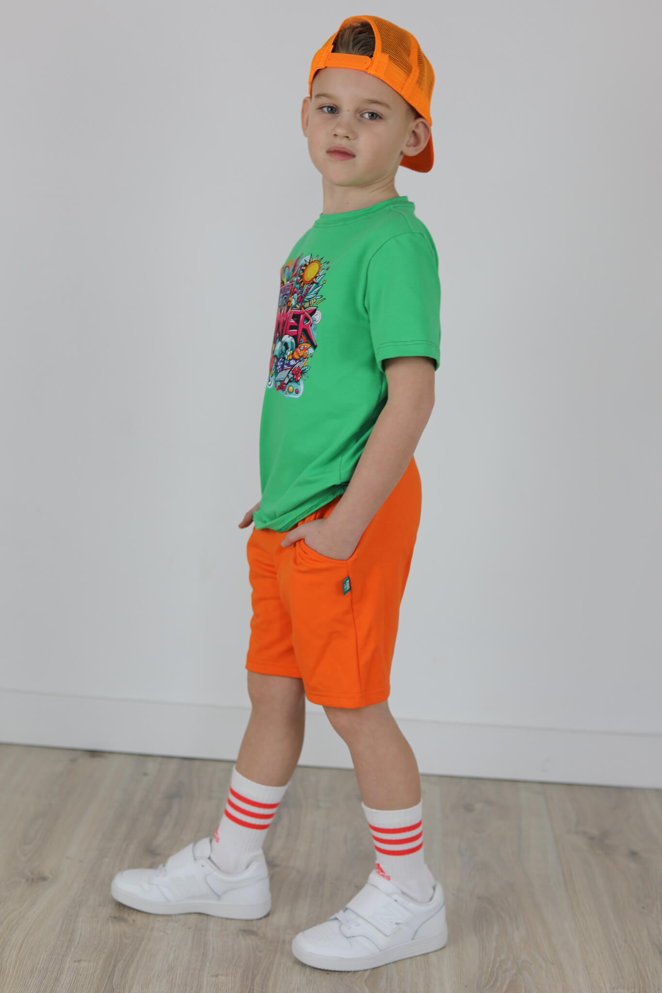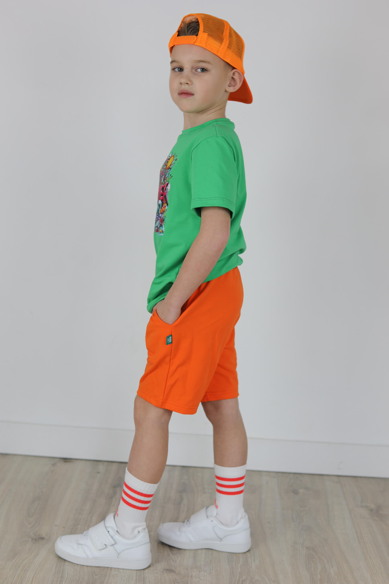 SPODENKI KLASYK z minimalistycznymi szwami z lekko obniżonym krokiem, nogawka trochę dłuższa aby spodenki nadawały się do szkoły i przedszkola wczesną wiosną.