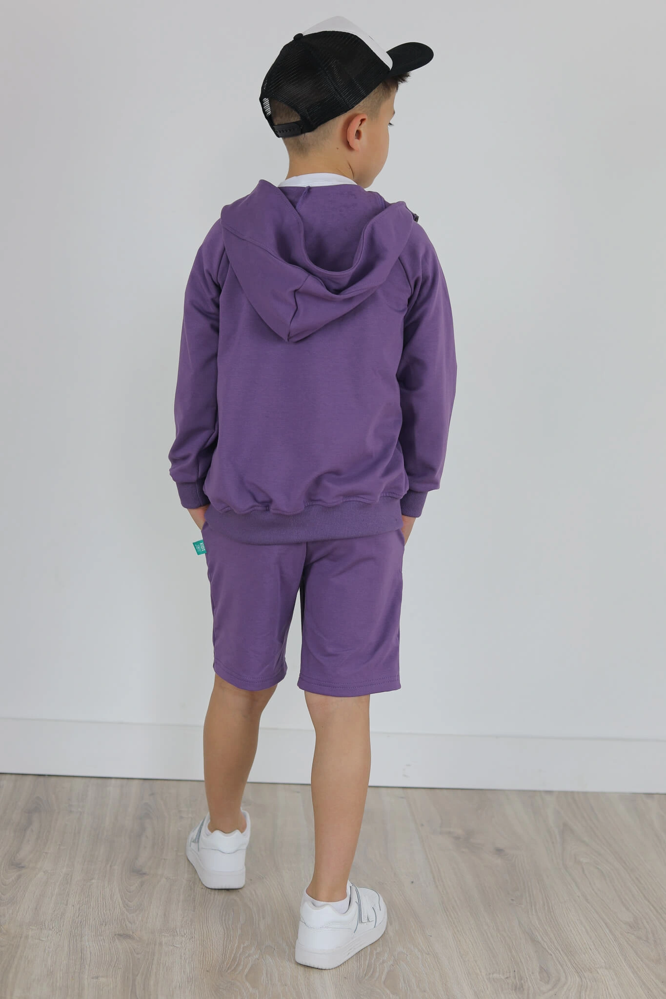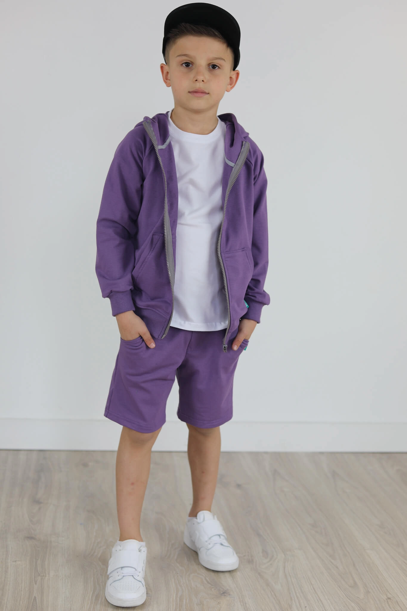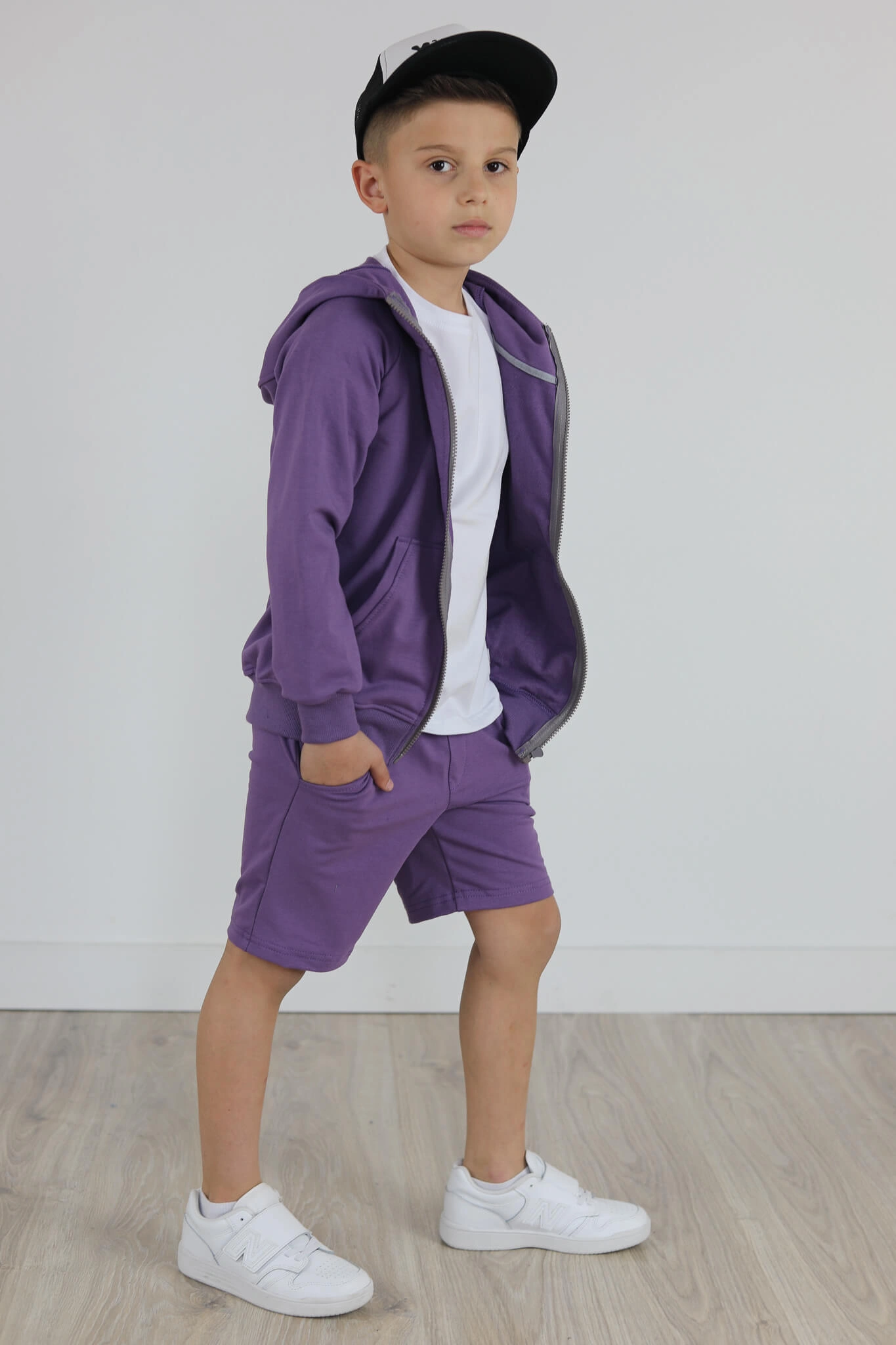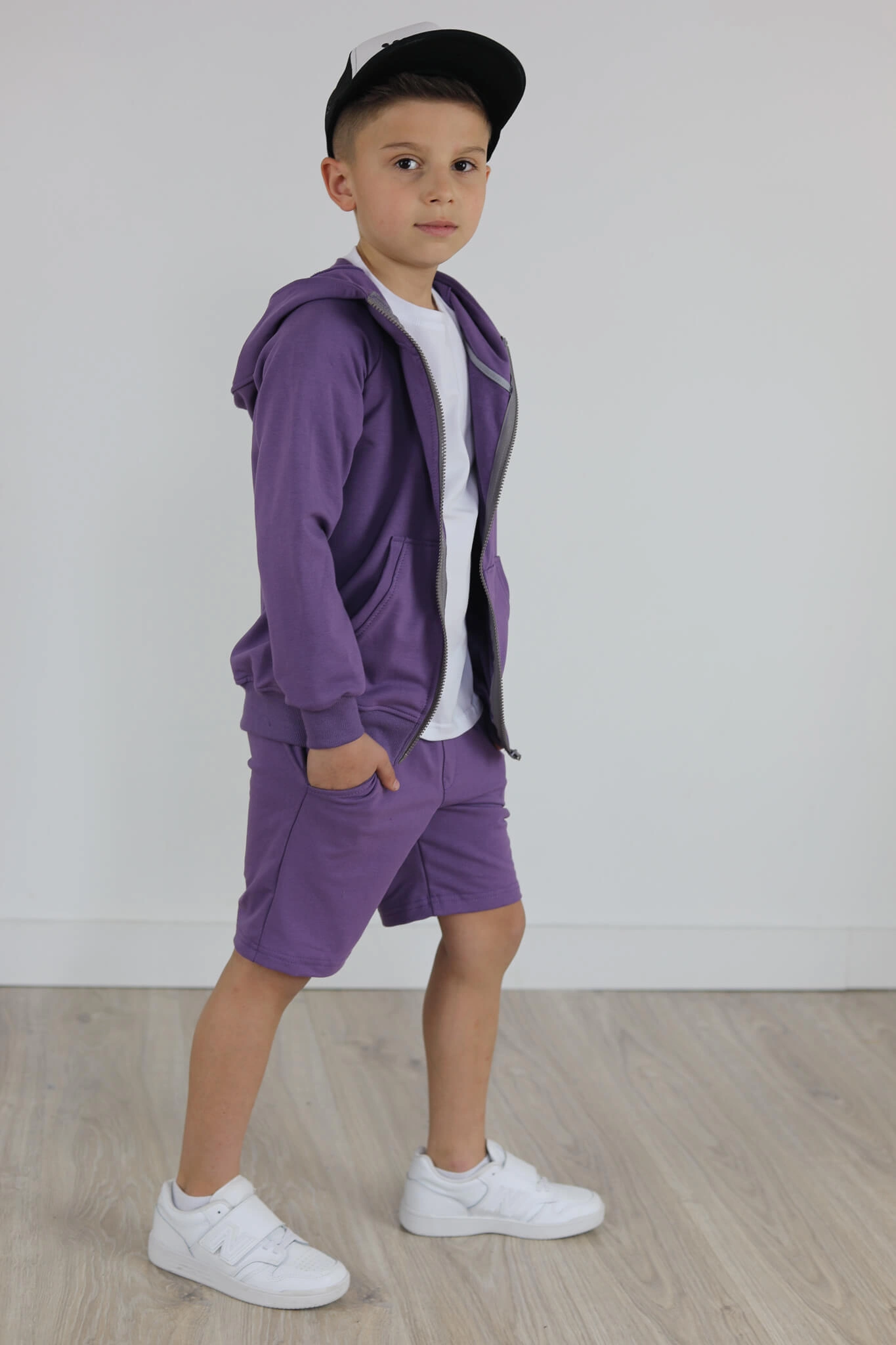 SPODENKI KLASYK z minimalistycznymi szwami z lekko obniżonym krokiem, nogawka trochę dłuższa aby spodenki nadawały się do szkoły i przedszkola wczesną wiosną.
