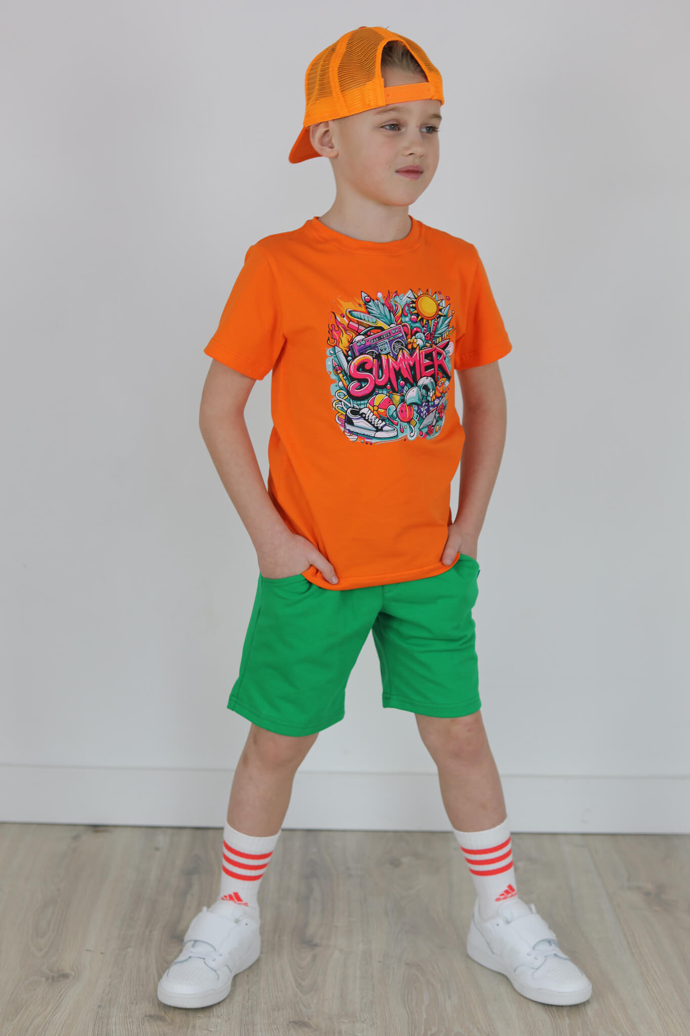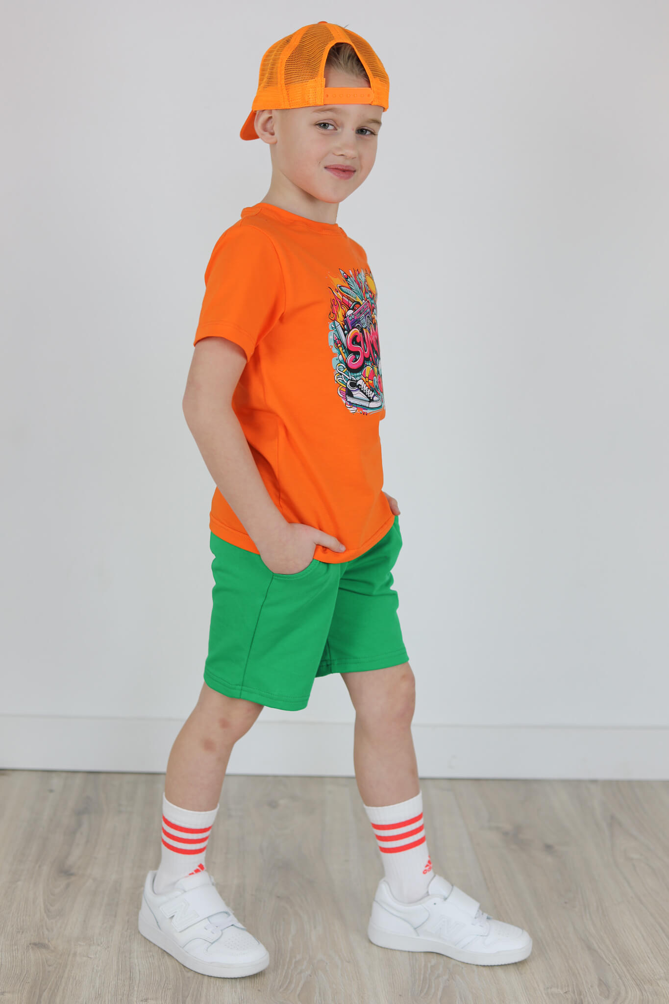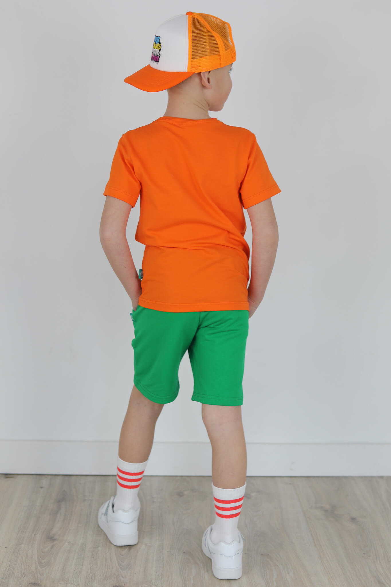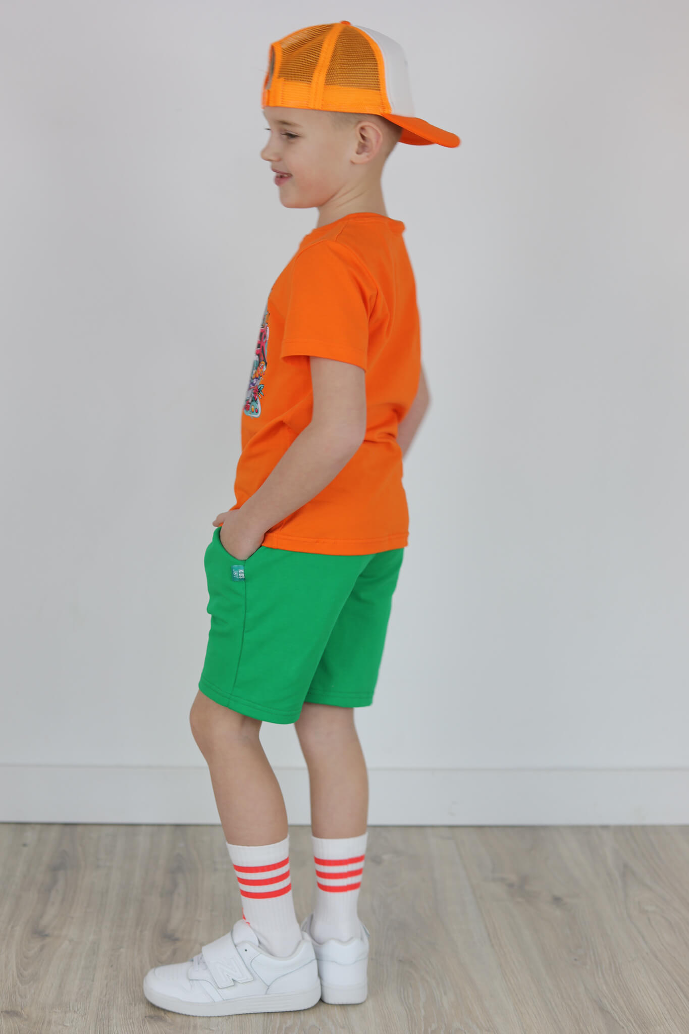 SPODENKI KLASYK z minimalistycznymi szwami z lekko obniżonym krokiem, nogawka trochę dłuższa aby spodenki nadawały się do szkoły i przedszkola wczesną wiosną.