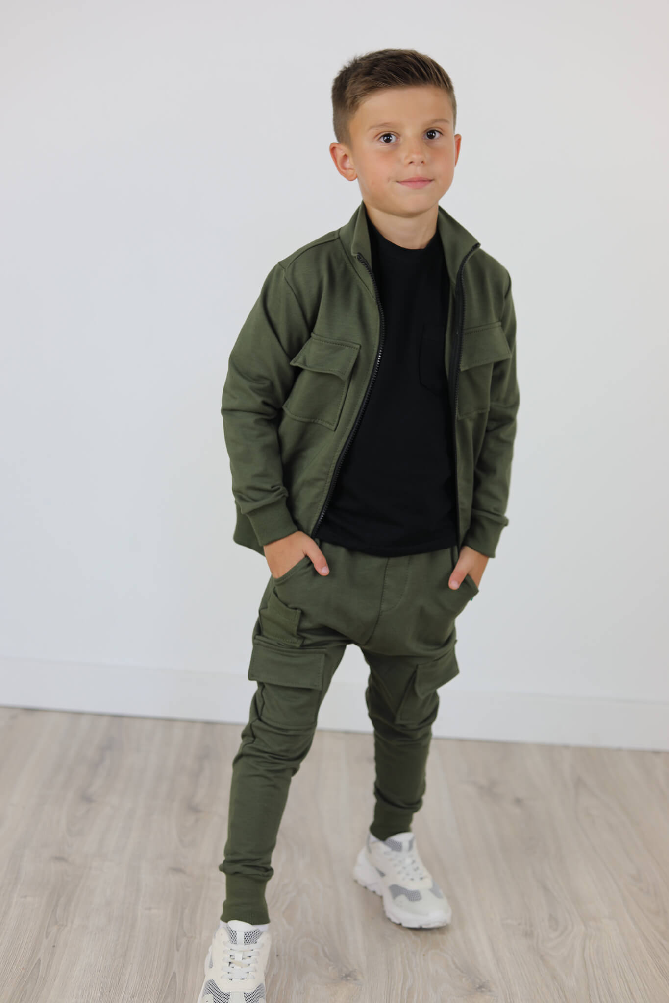 Zupełnie nowy model spodni. Wyglądają jak bojówki lecz kieszenie naszyte są na przodzie spodni. Mankiety spodni i mała kieszonka naszyta na przodzie są ze ściągacza w kolorze dresu. Spodnie z lekko obniżonym krokiem.