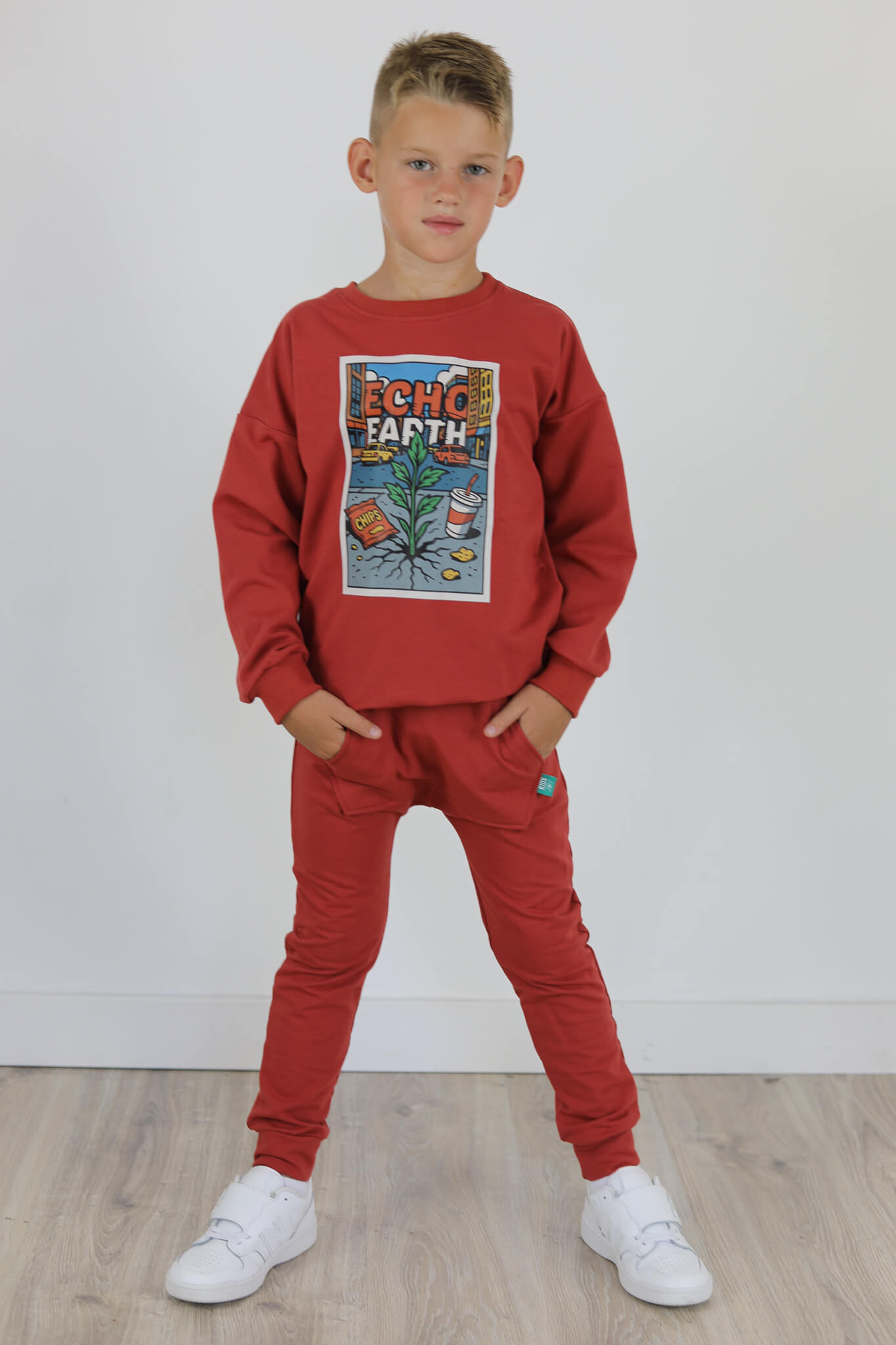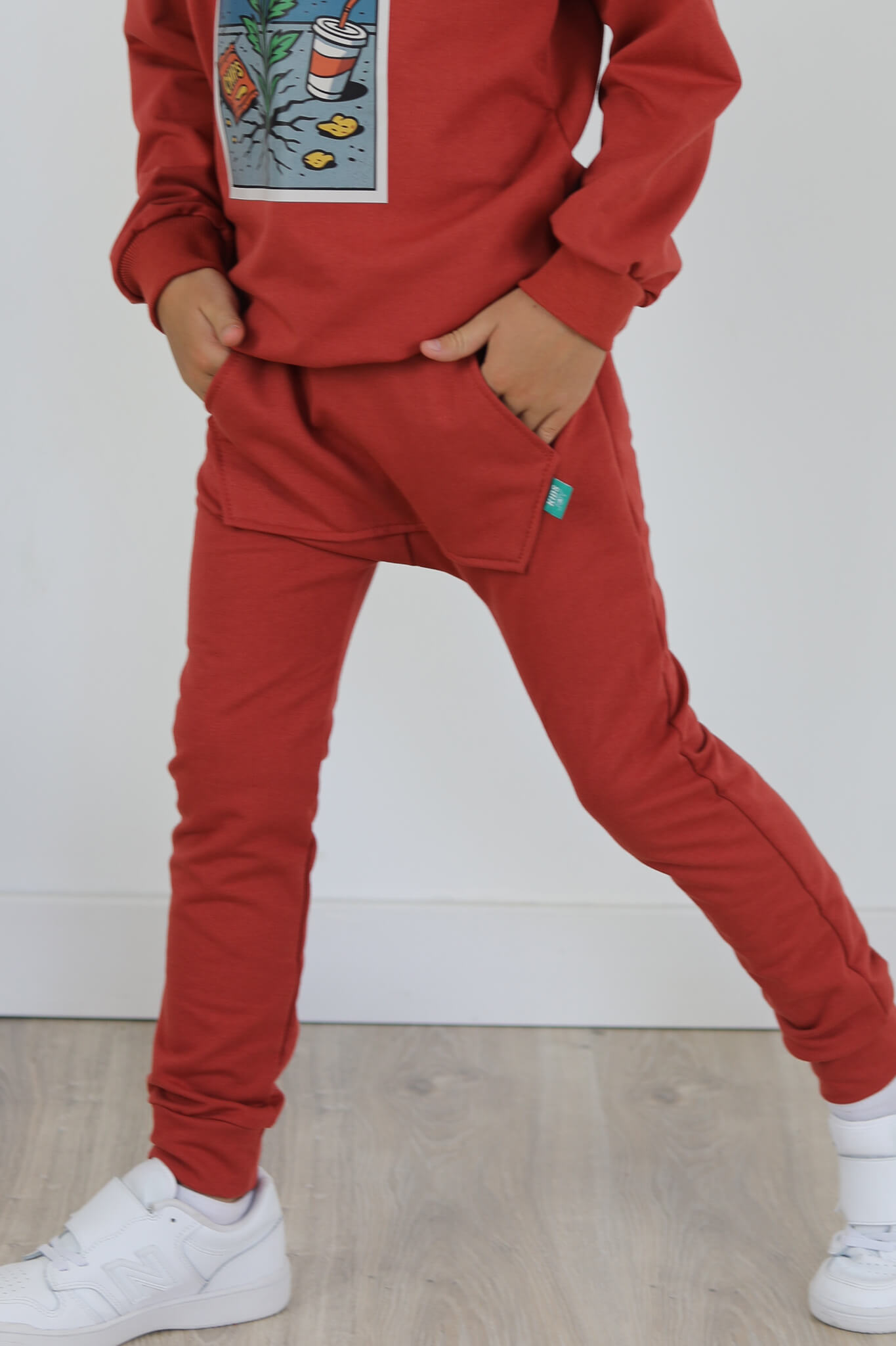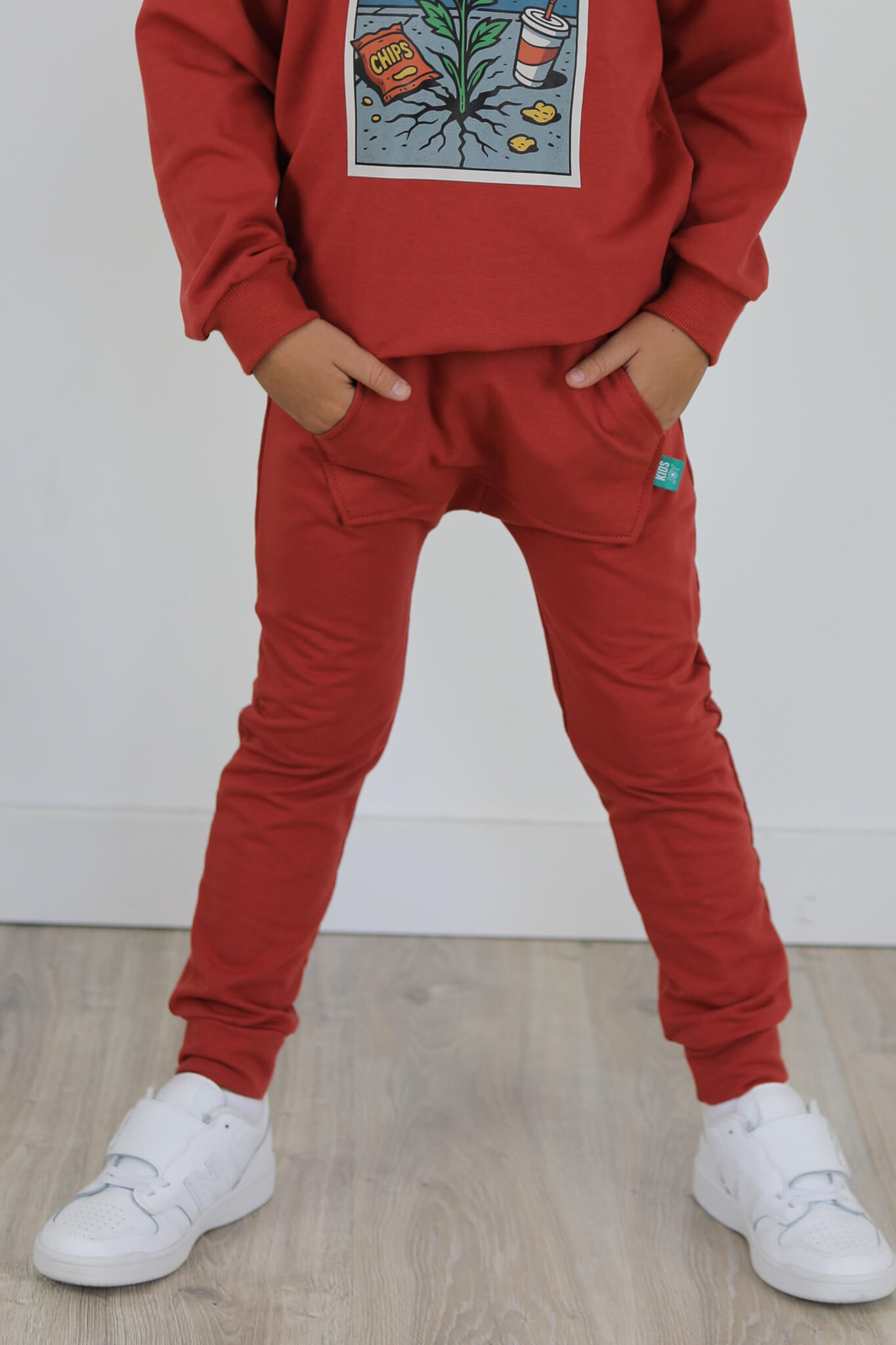 Spodnie BAGGY duża kieszeń czerwona ziemia S32