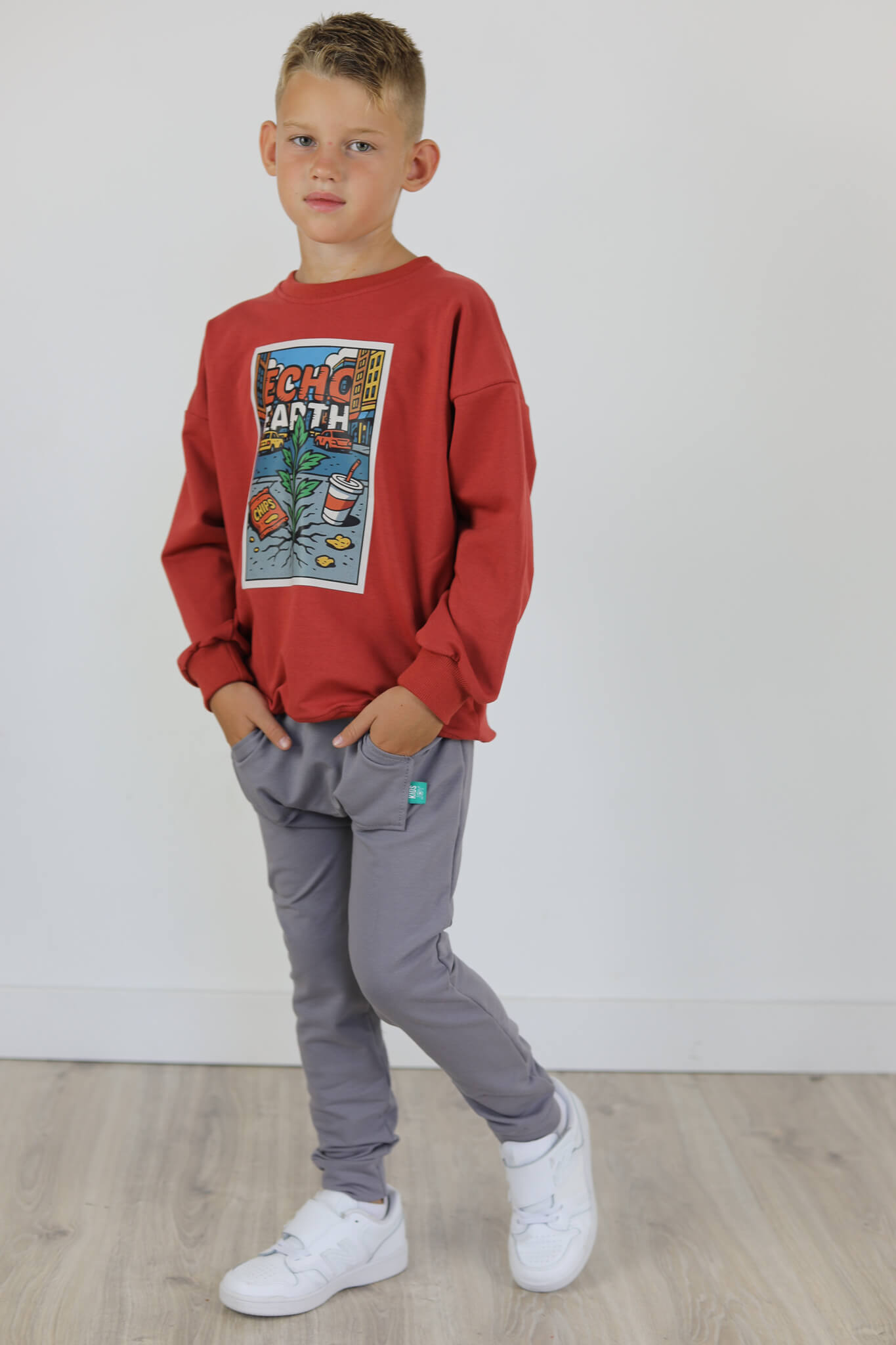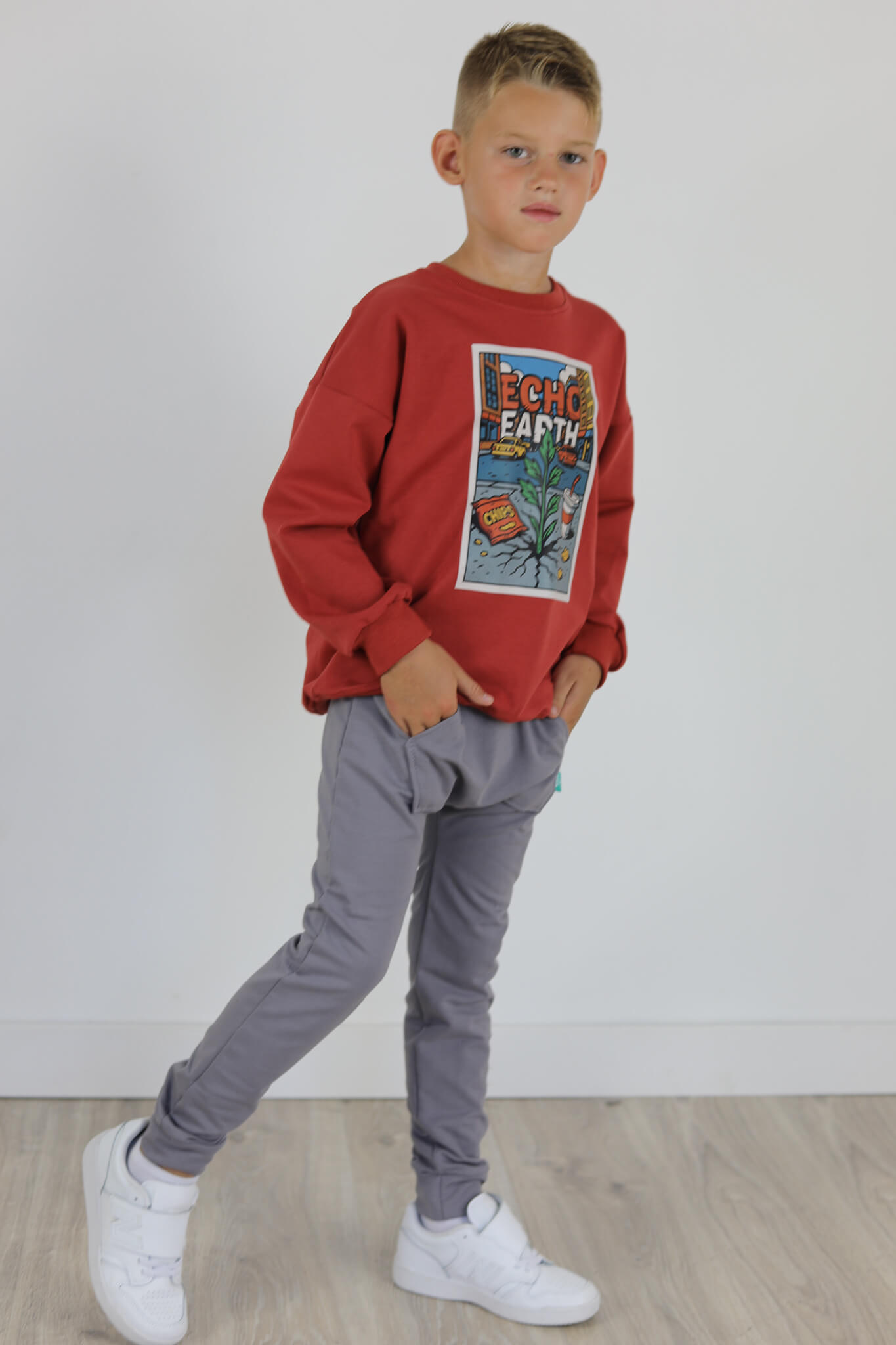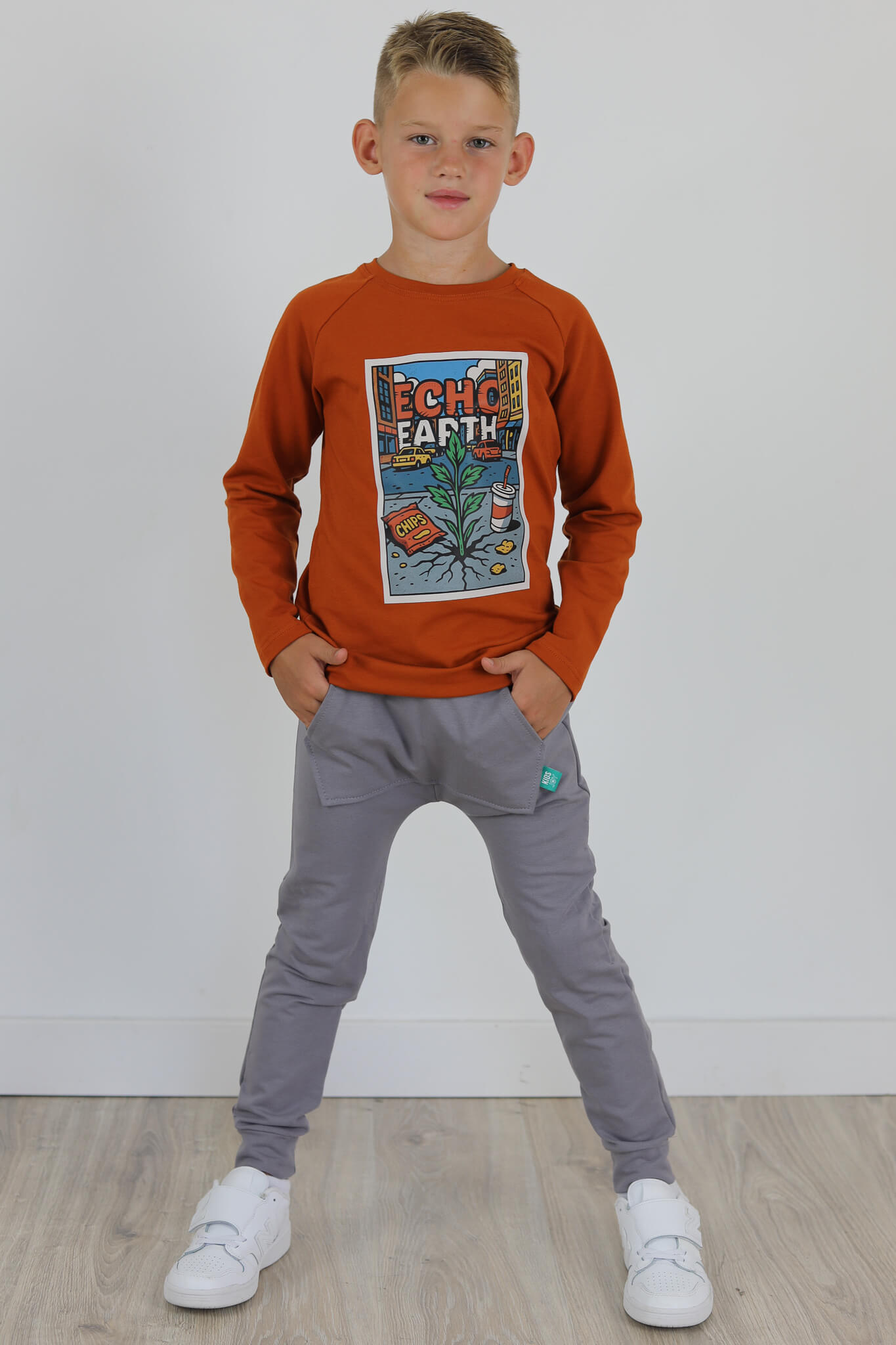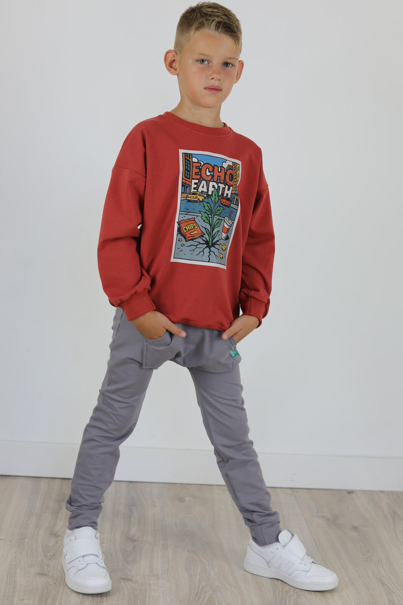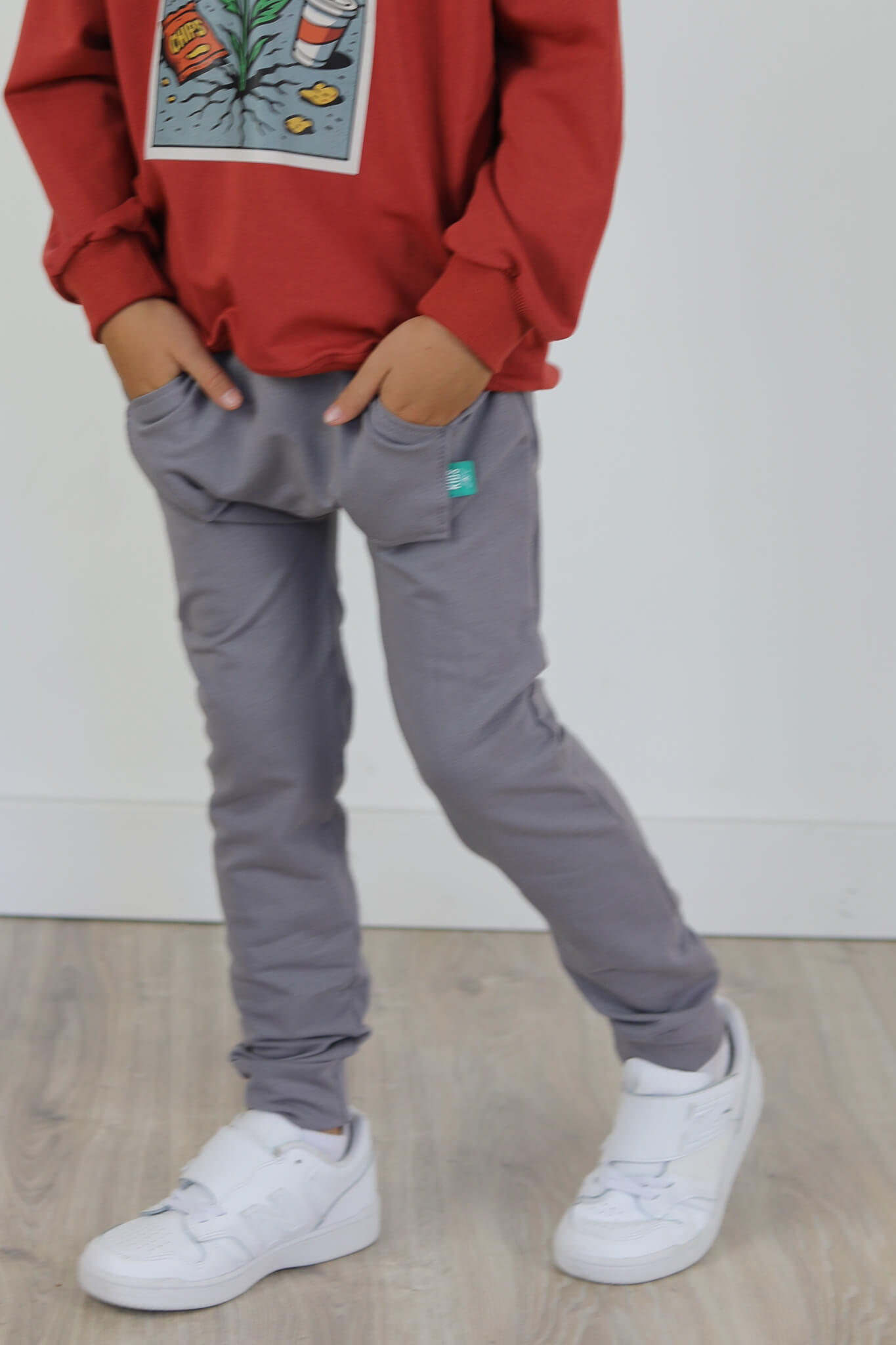 Spodnie BAGGY z dużą kieszenią kangurką. Spodnie te stworzone są na podstawie naszych baggów uwielbianych przez wszystkich. Spodnie mają lekko poszerzoną nogawkę.