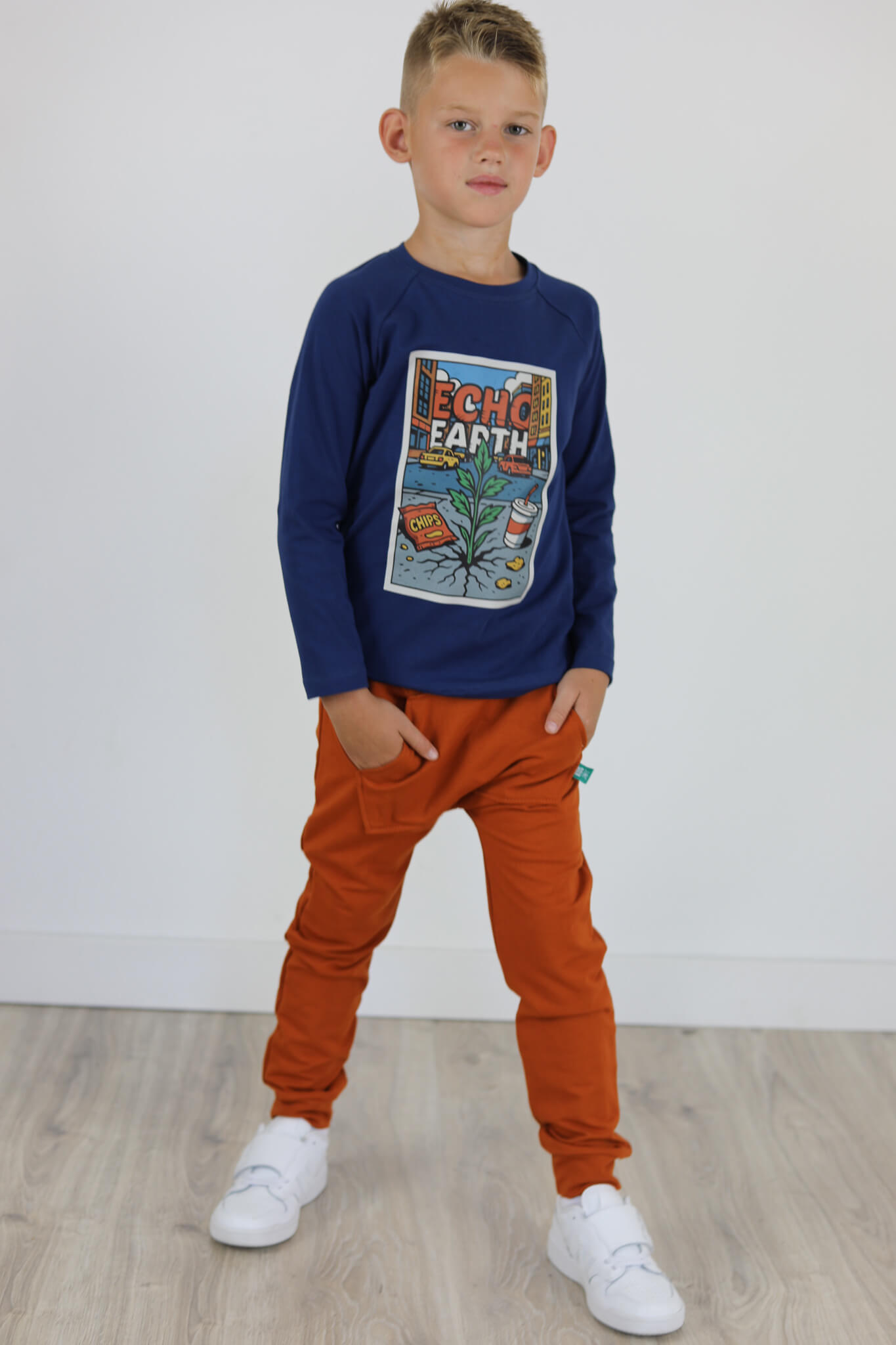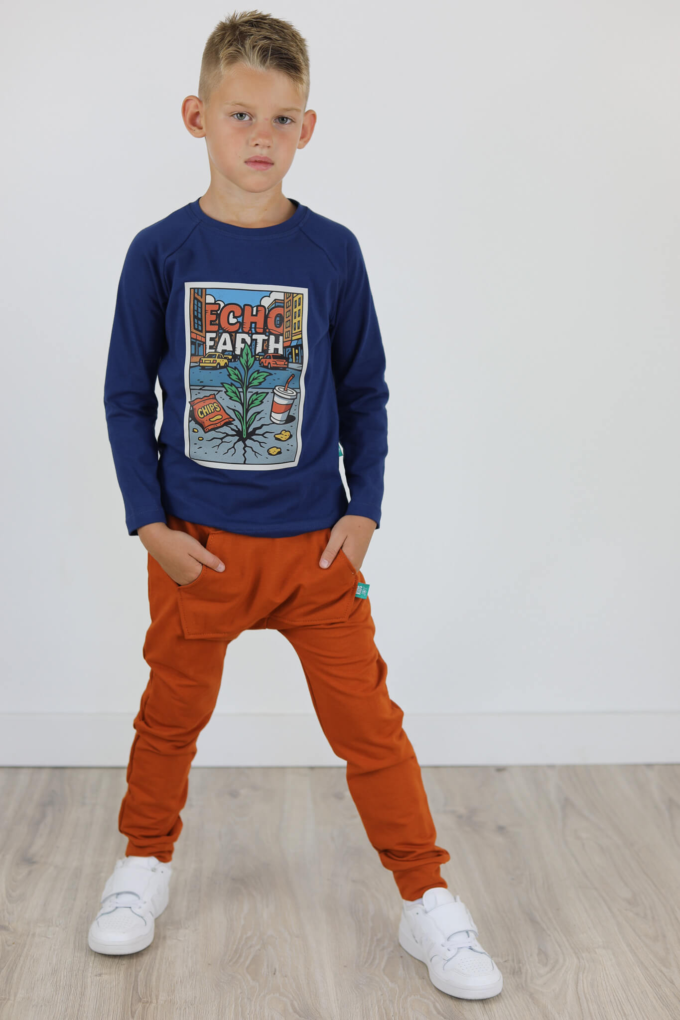 Spodnie BAGGY z dużą kieszenią kangurką. Spodnie te stworzone są na podstawie naszych baggów uwielbianych przez wszystkich. Spodnie mają lekko poszerzoną nogawkę.