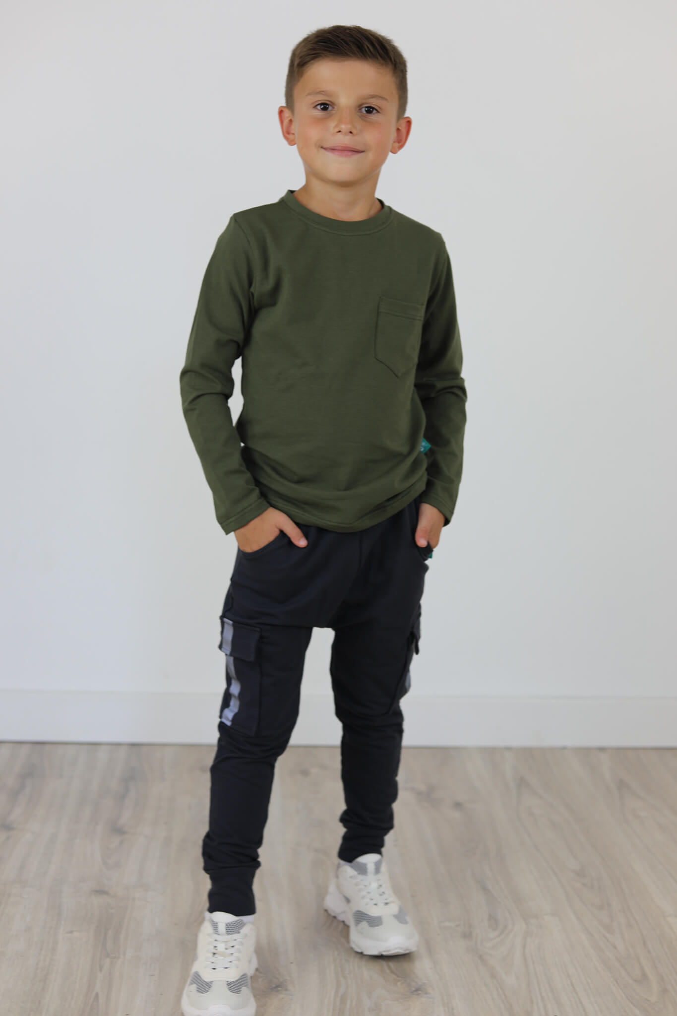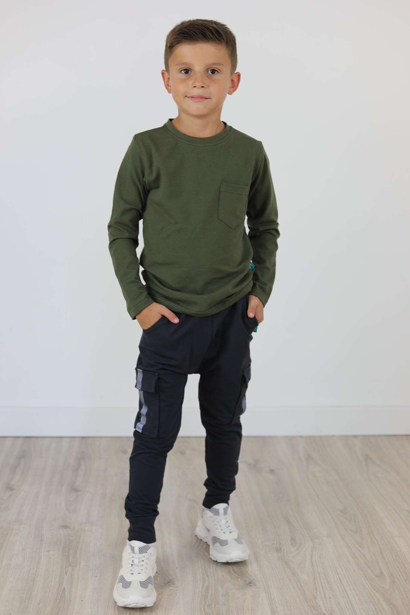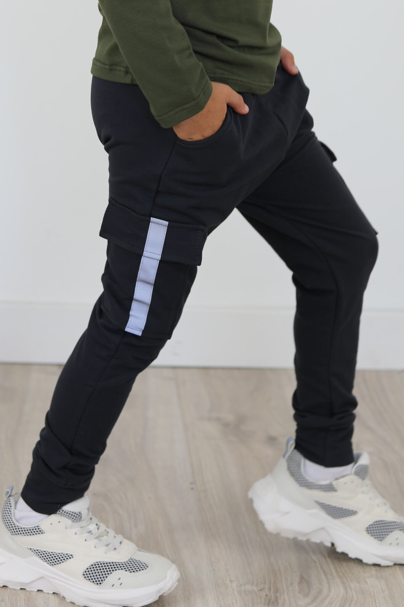 Spodnie BOJÓWKI z TAŚMĄ ODBLASKOWĄ na kieszonce u patce to propozycja zarówno modowa jak i praktyczna. W sezonie jesienno-zimowy szybko robi się ciemno dlatego zrobiliśmy spodnie w których dziecko będzie mocno widoczne po zmroku.