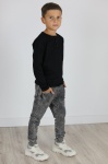 SPODNIE FARBOWANE i WYBARWIANE. Spodnie poddane podwójnemu procesowi farbowania aby uzyskać szary marmurek. Bardzo pracochłonna metoda ozdabiania odzieży. Spodnie są bardzo stylowe a zrazem miękkie i wygodne.