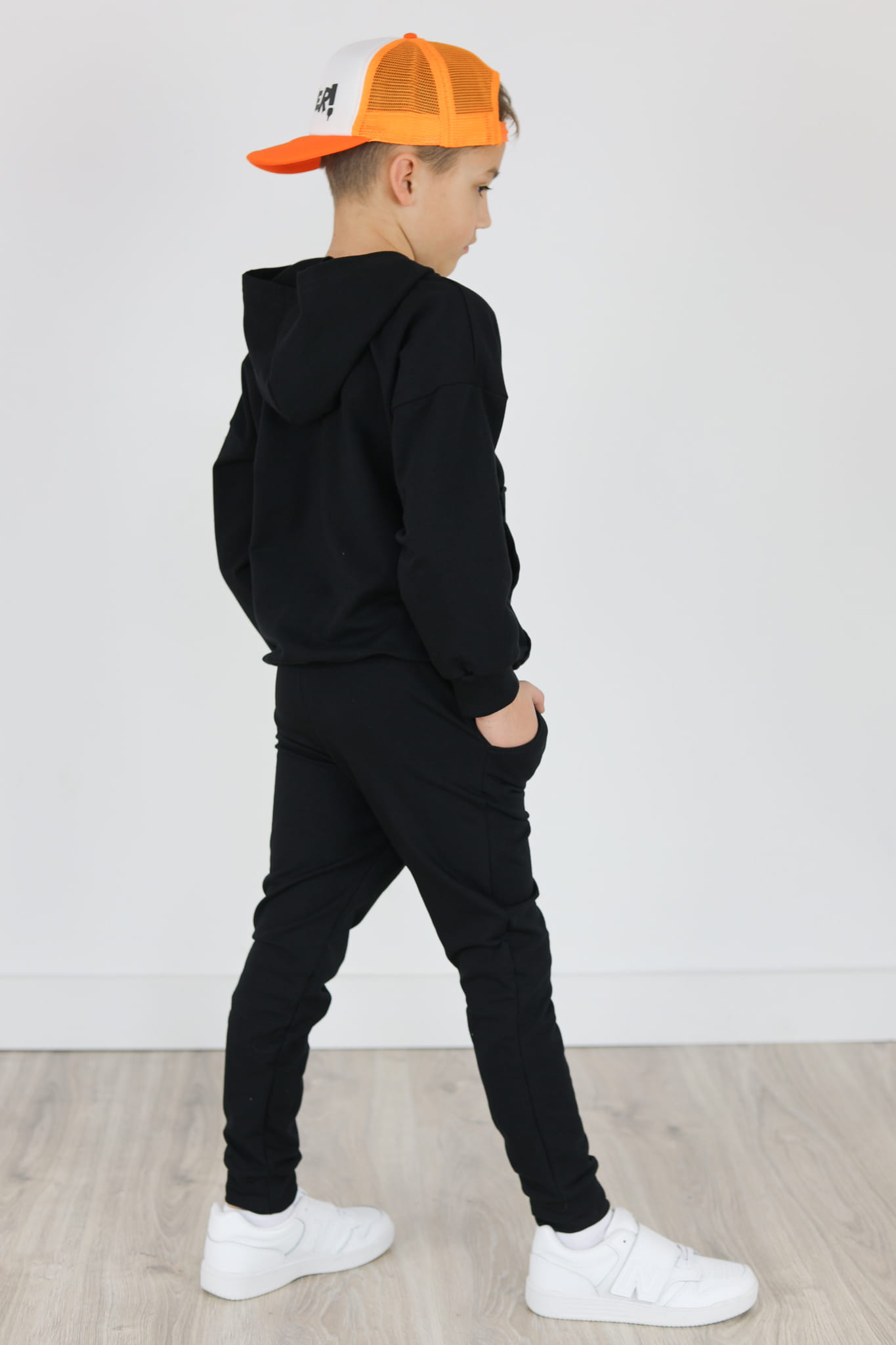 Spodnie w pasie posiadają gumkę. Nasza guma jest bardzo elastyczna. Dziecku jest wygodnie a spodnie nie spadają w pupy. Mankiety i pas ze ściągacza w kolorze dresu.