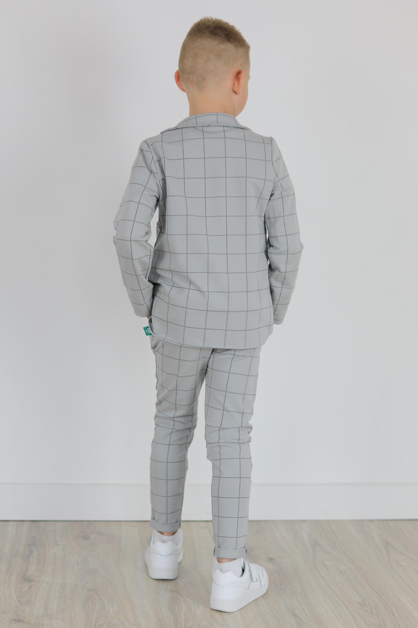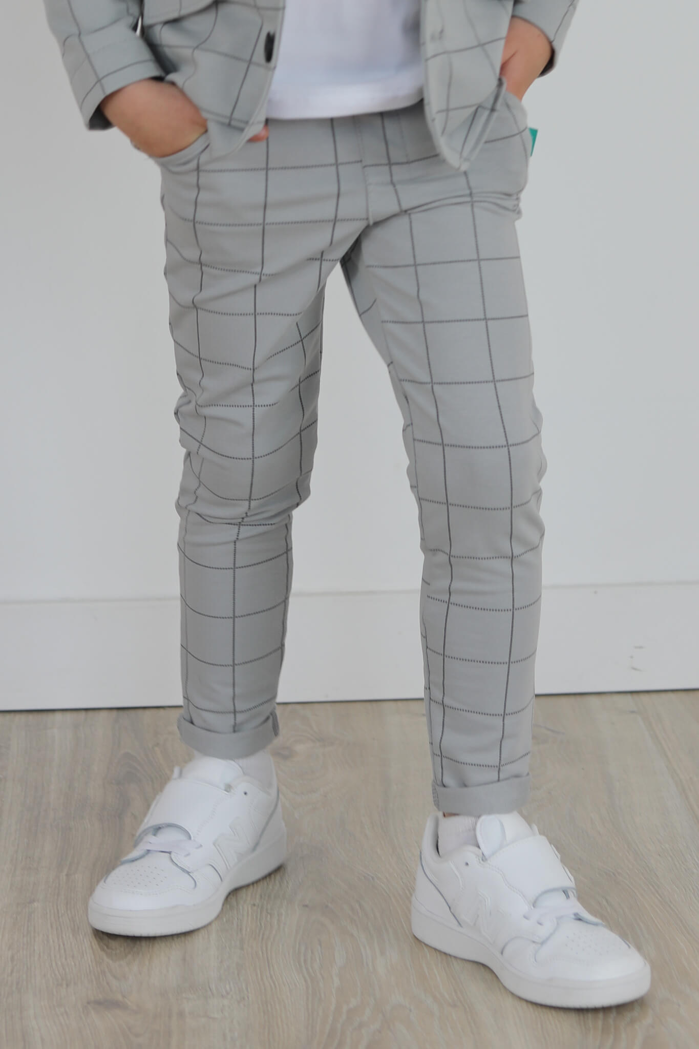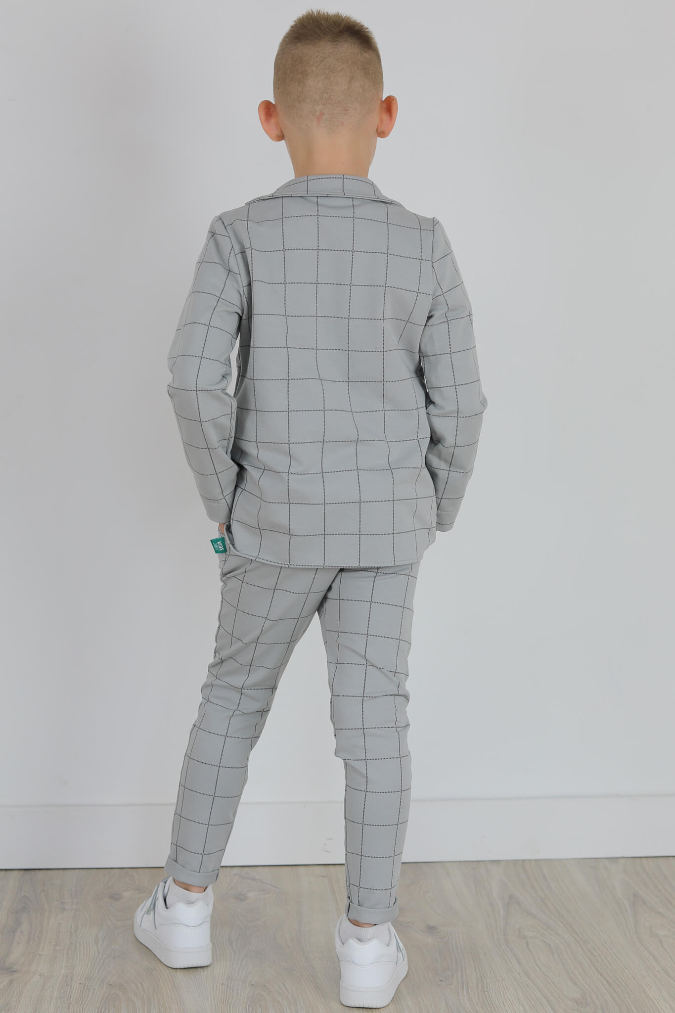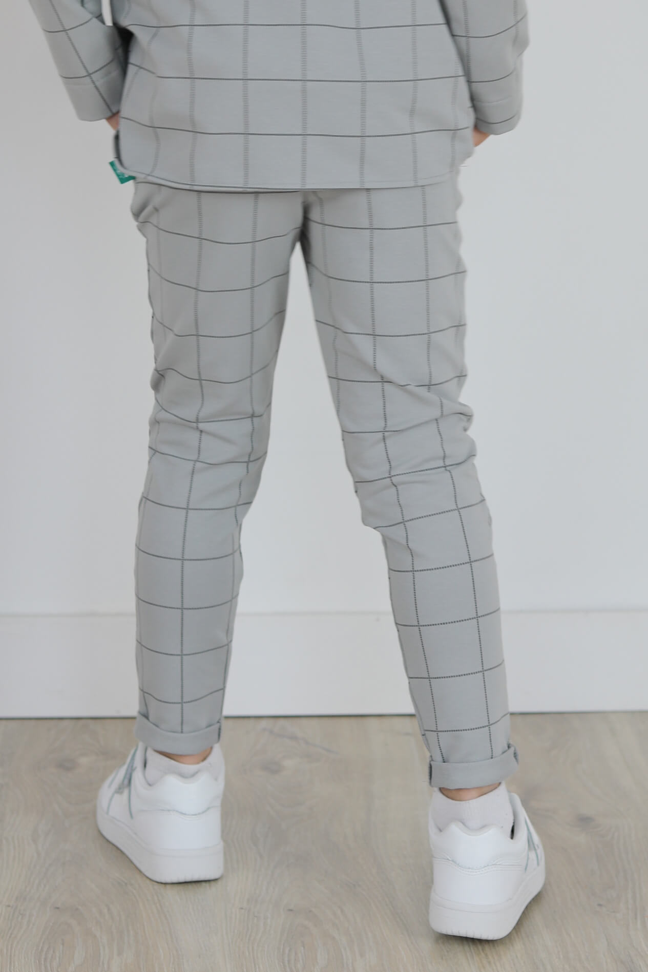 Spodnie wykonane są z dzianiny dresowej z nadrukiem kraty.