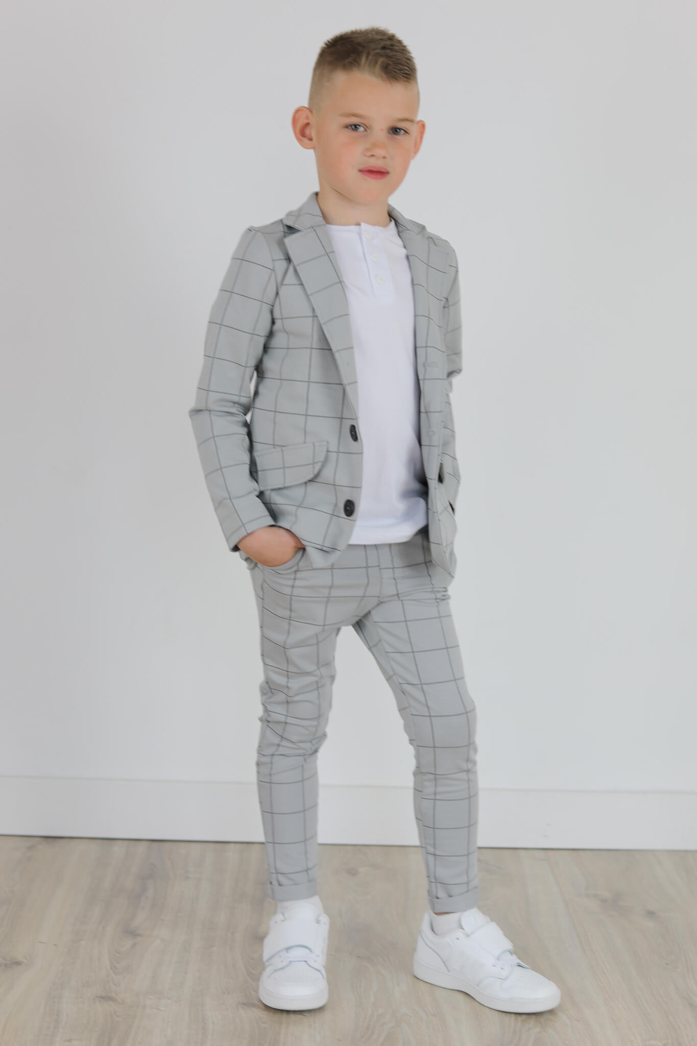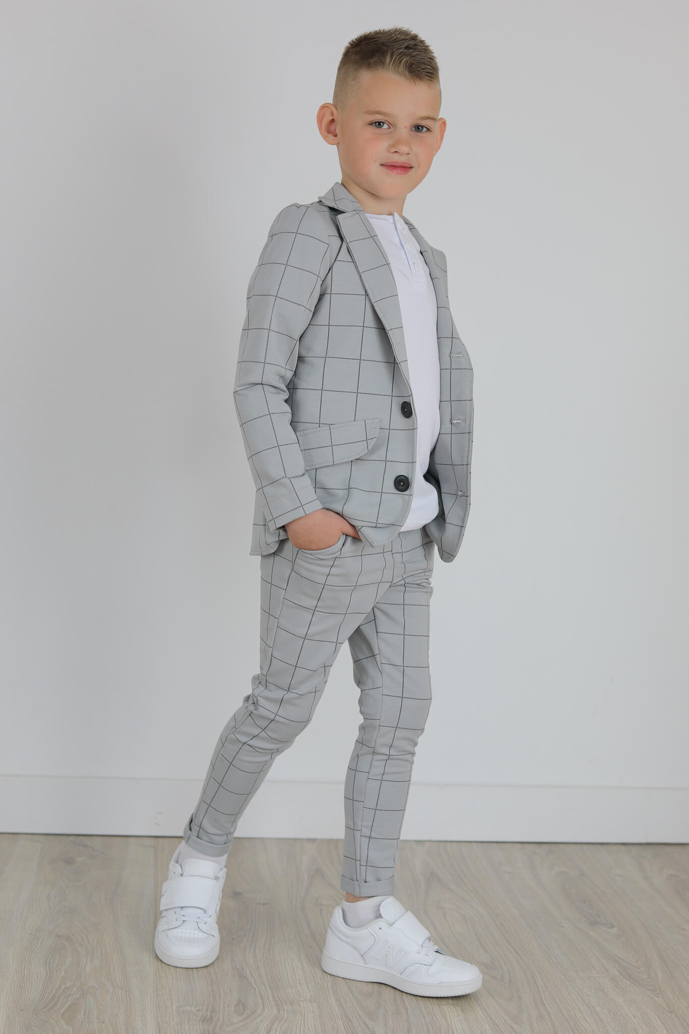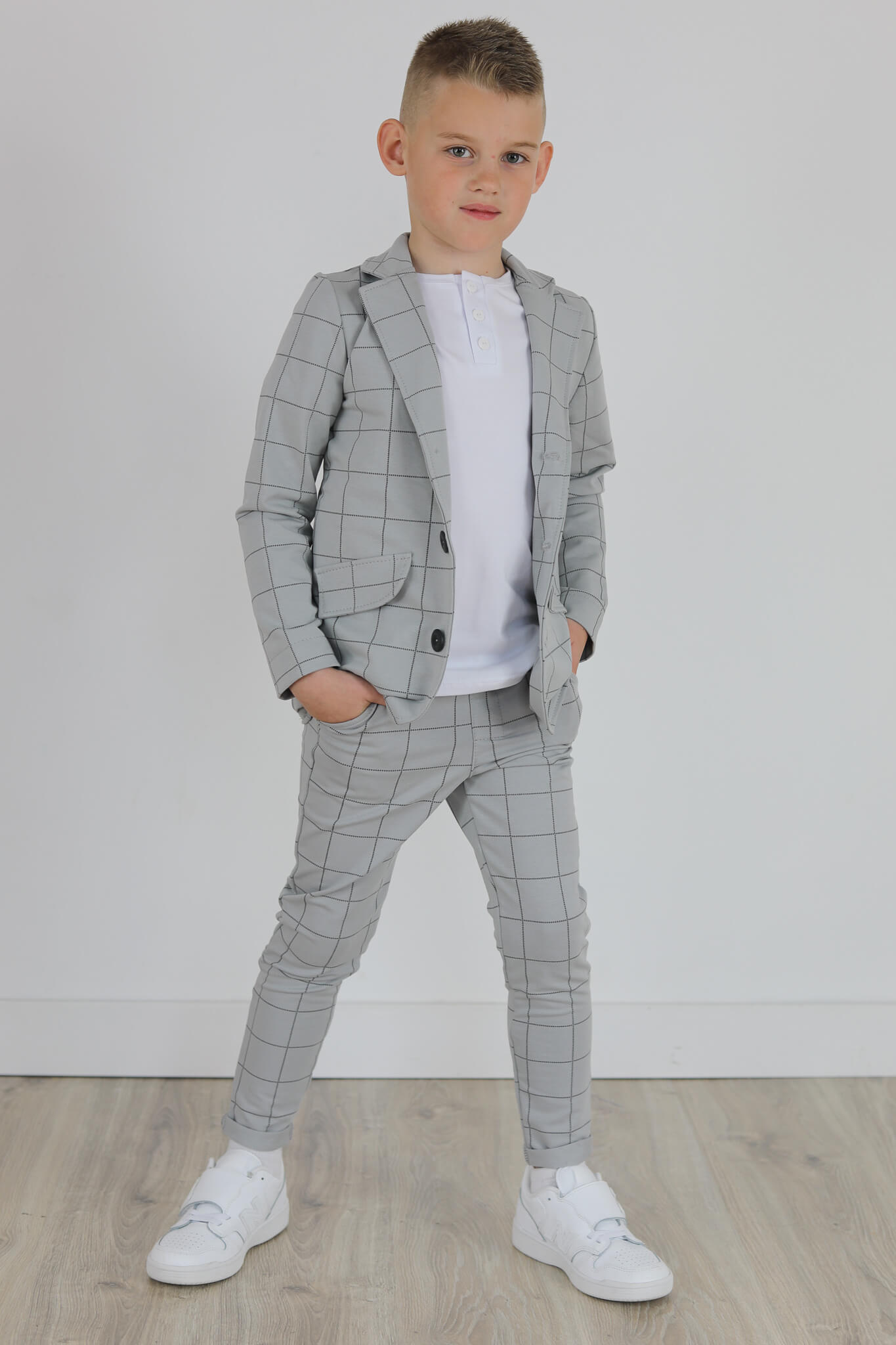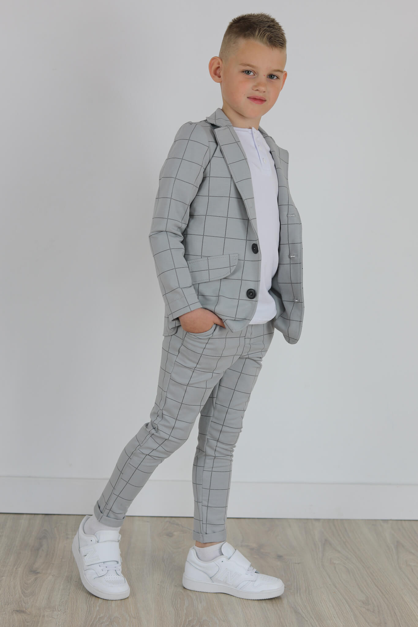 Spodnie wykonane są z dzianiny dresowej z nadrukiem kraty.