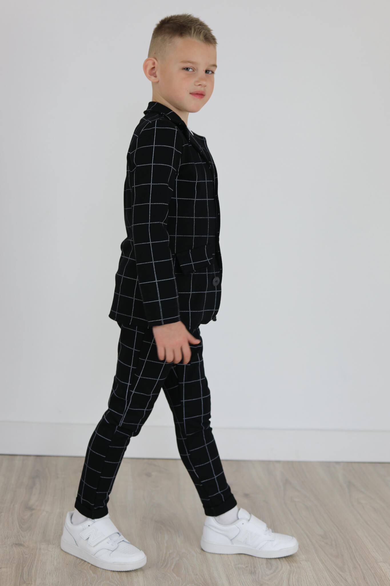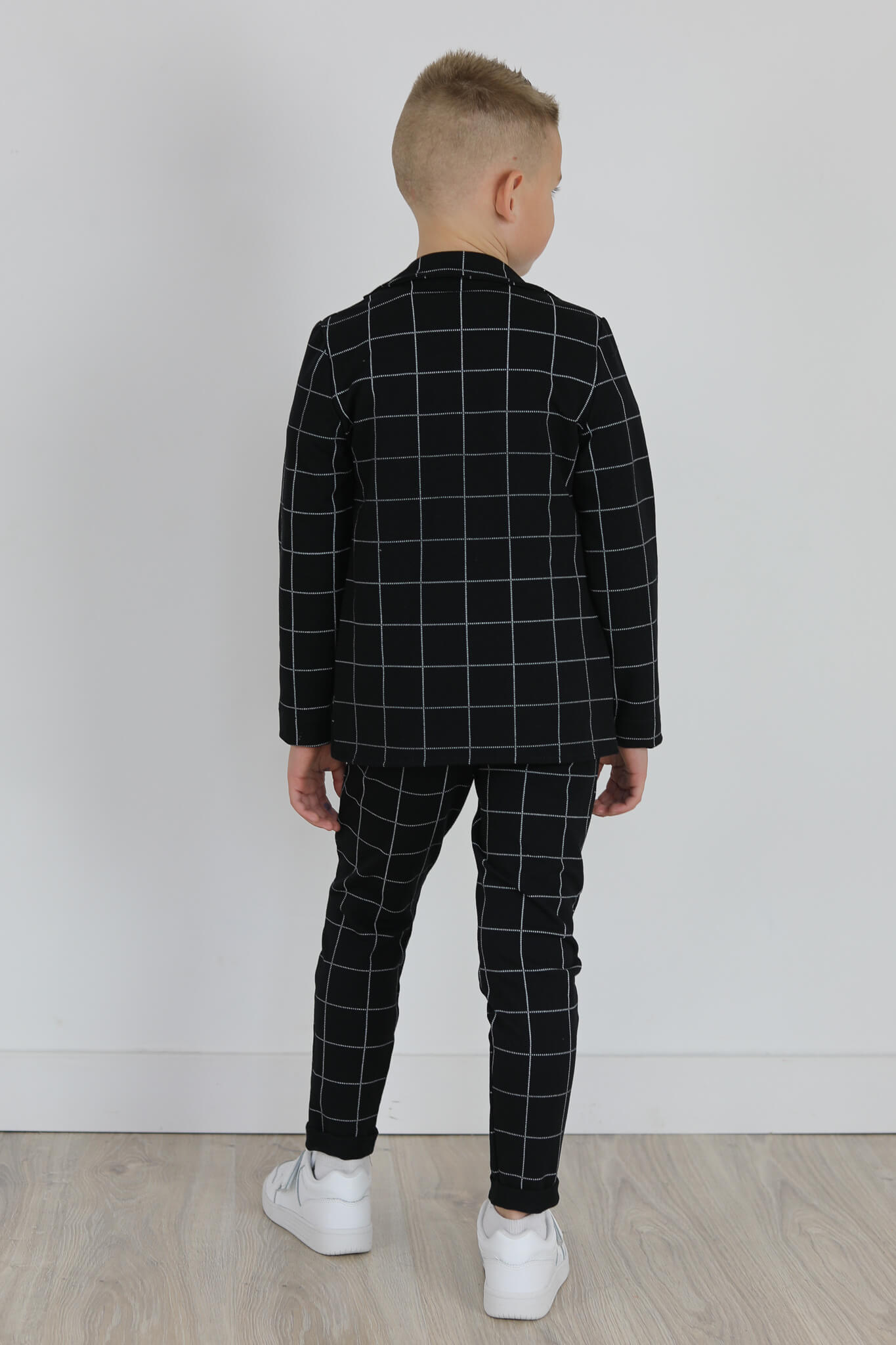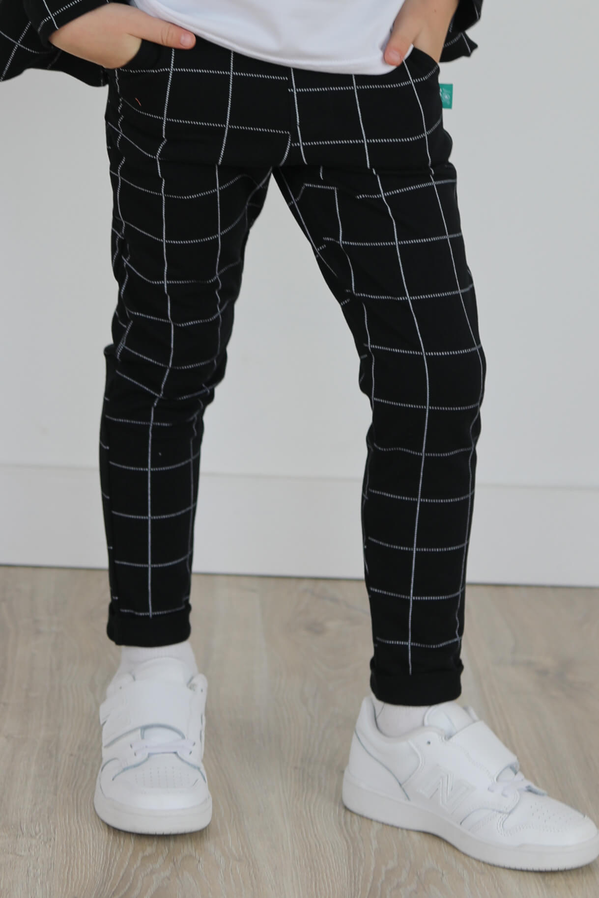Spodnie wykonane są z dzianiny dresowej z nadrukiem kraty.