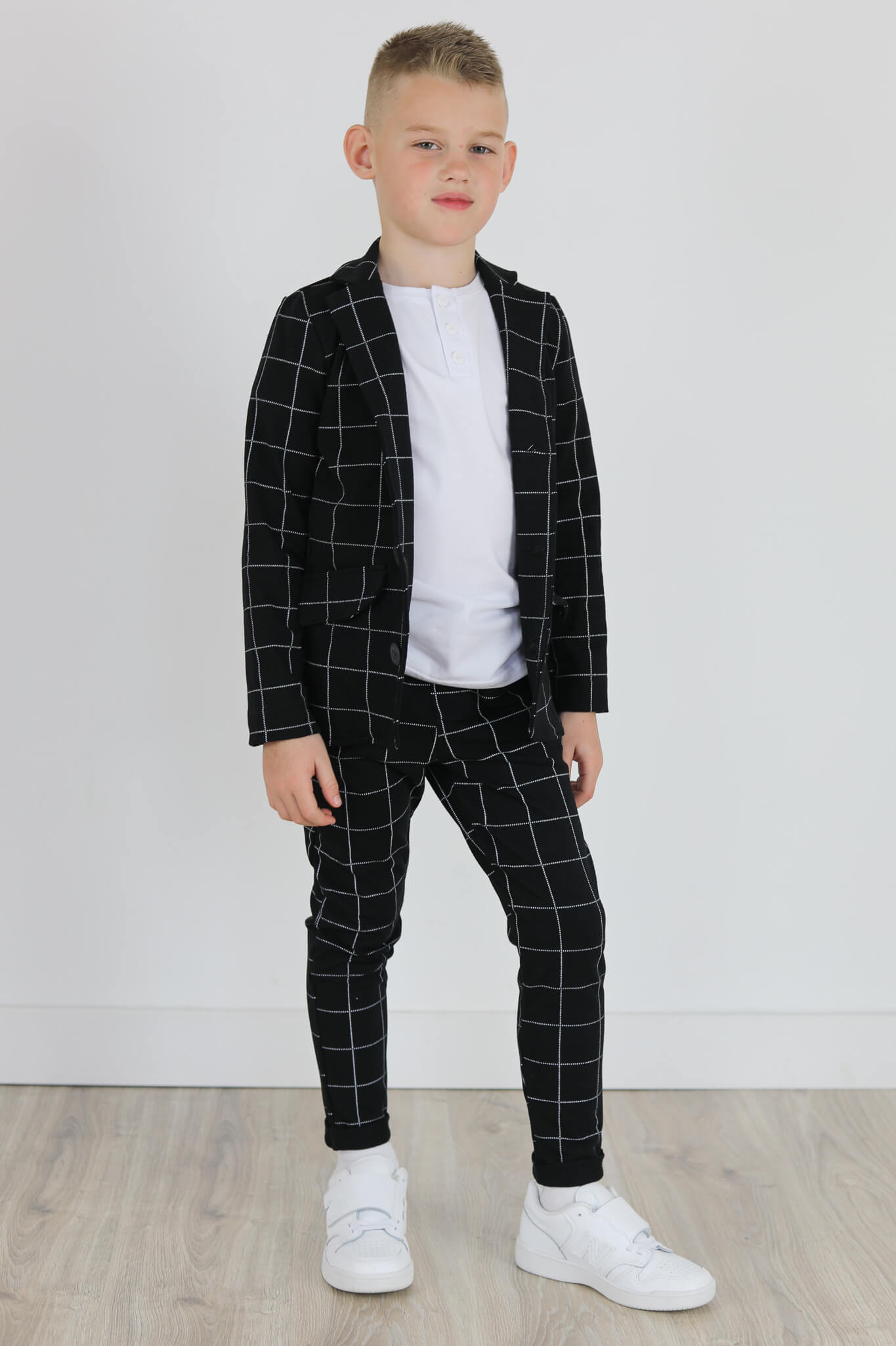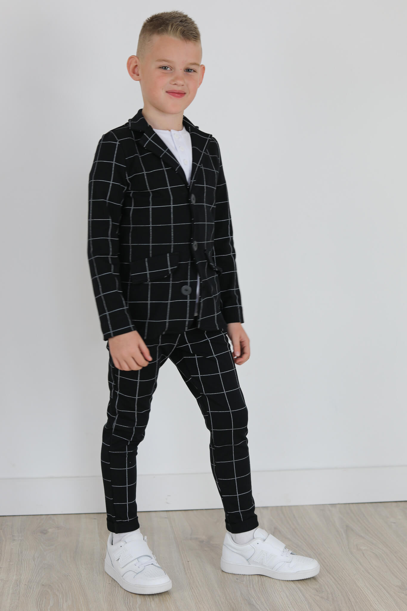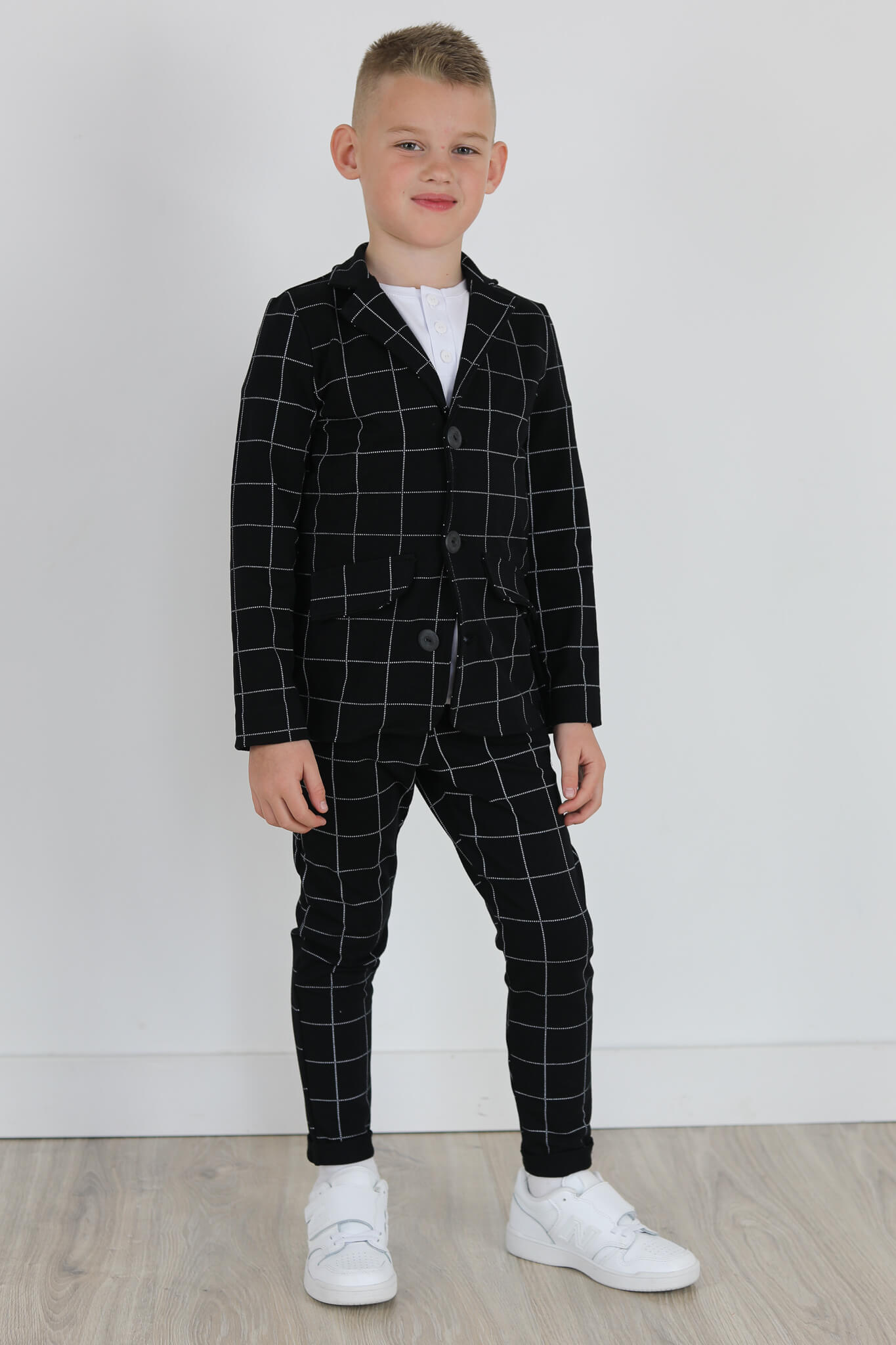 Spodnie wykonane są z dzianiny dresowej z nadrukiem kraty.
