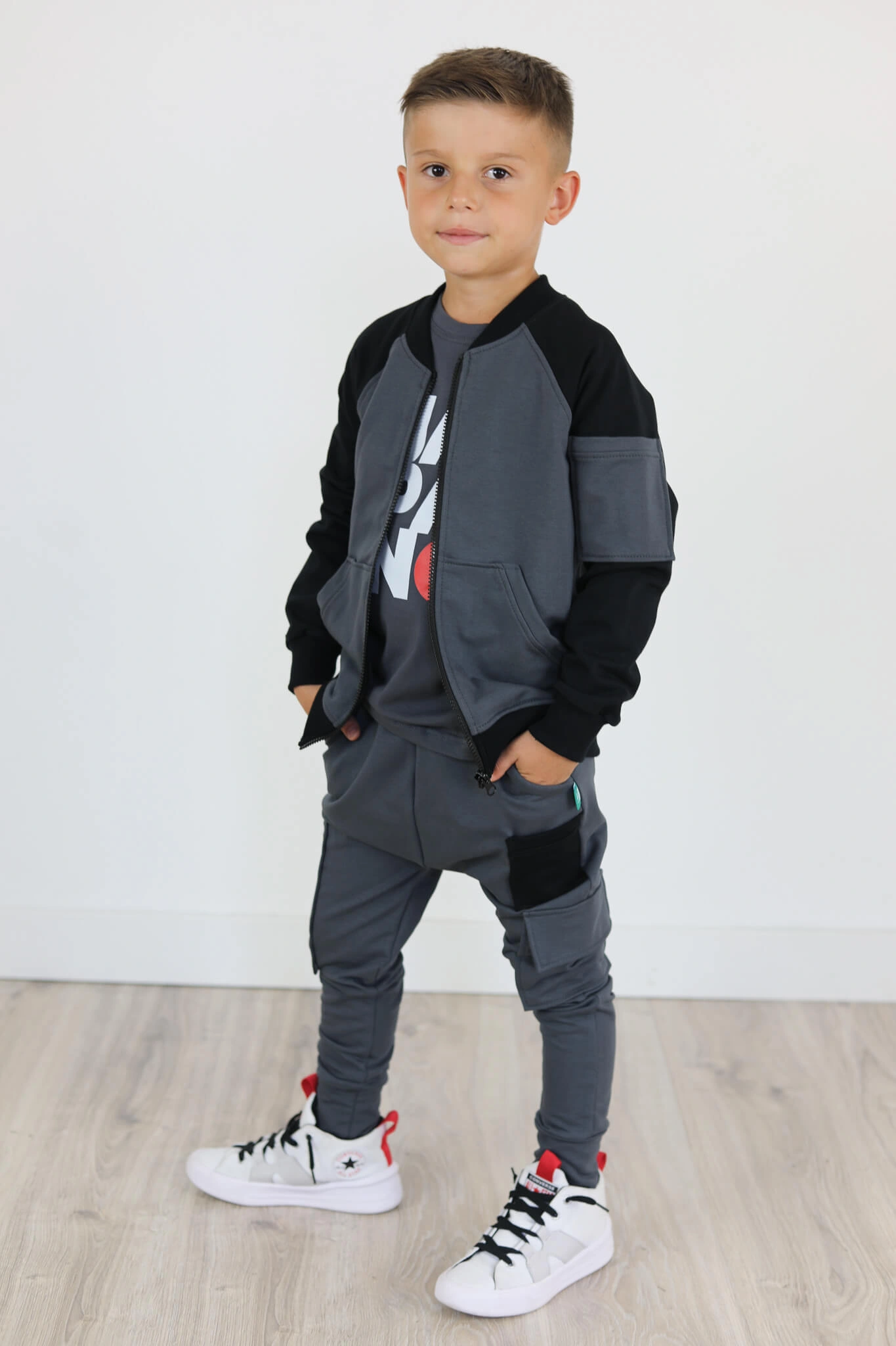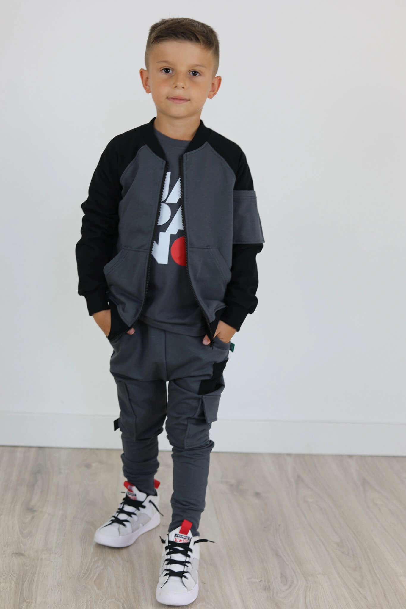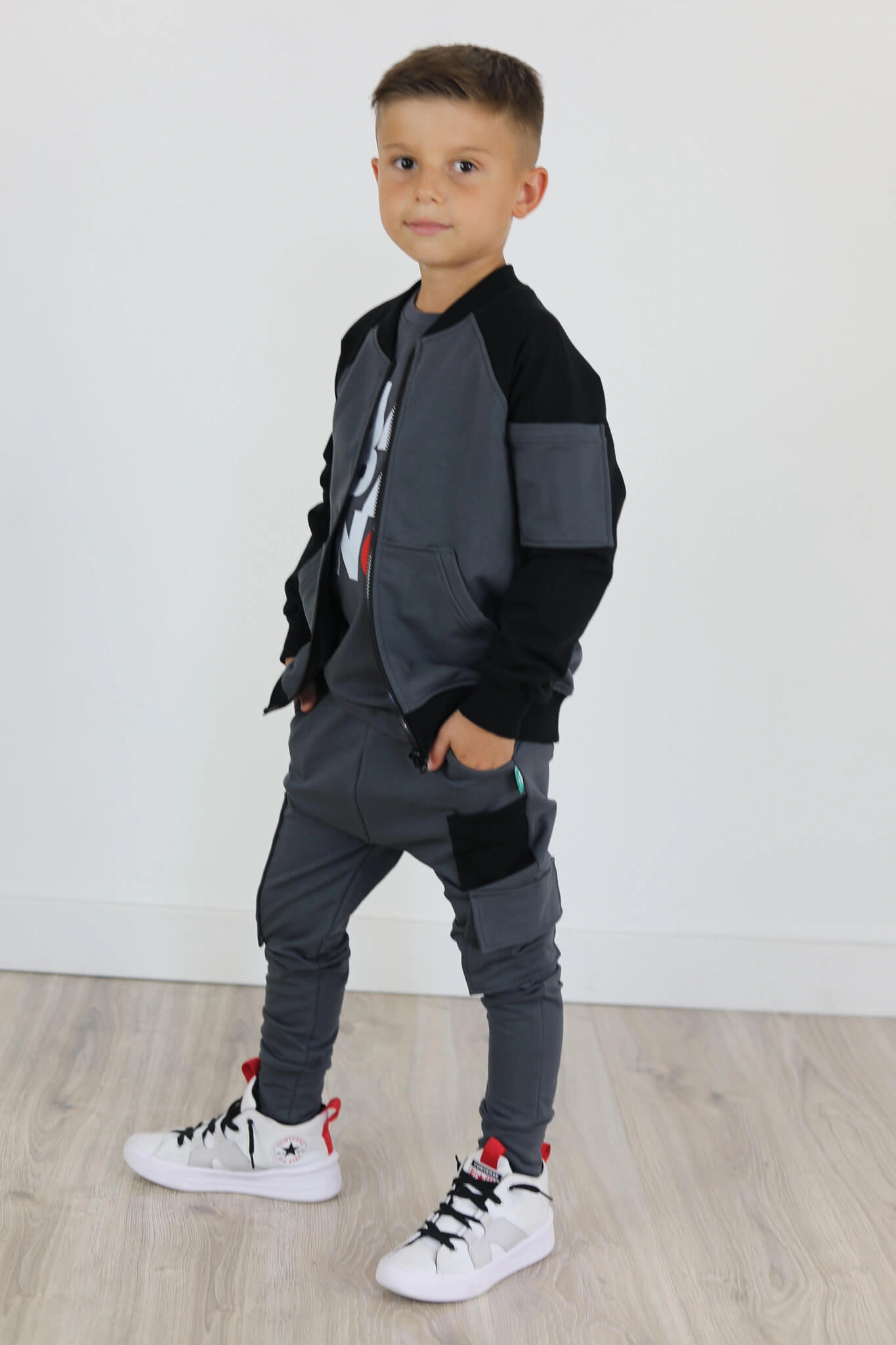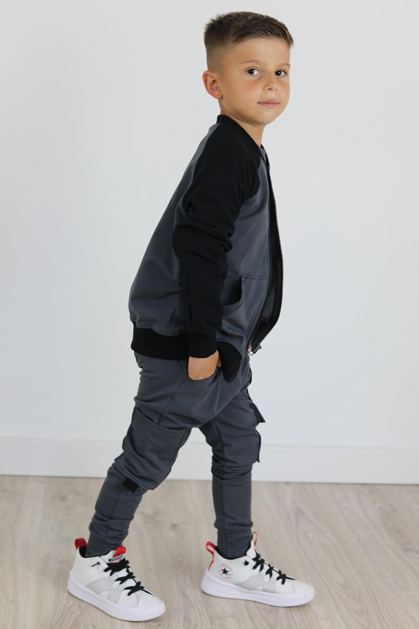 Spodnie bojówki KONTRASTOWA KIESZONKA grafit S45