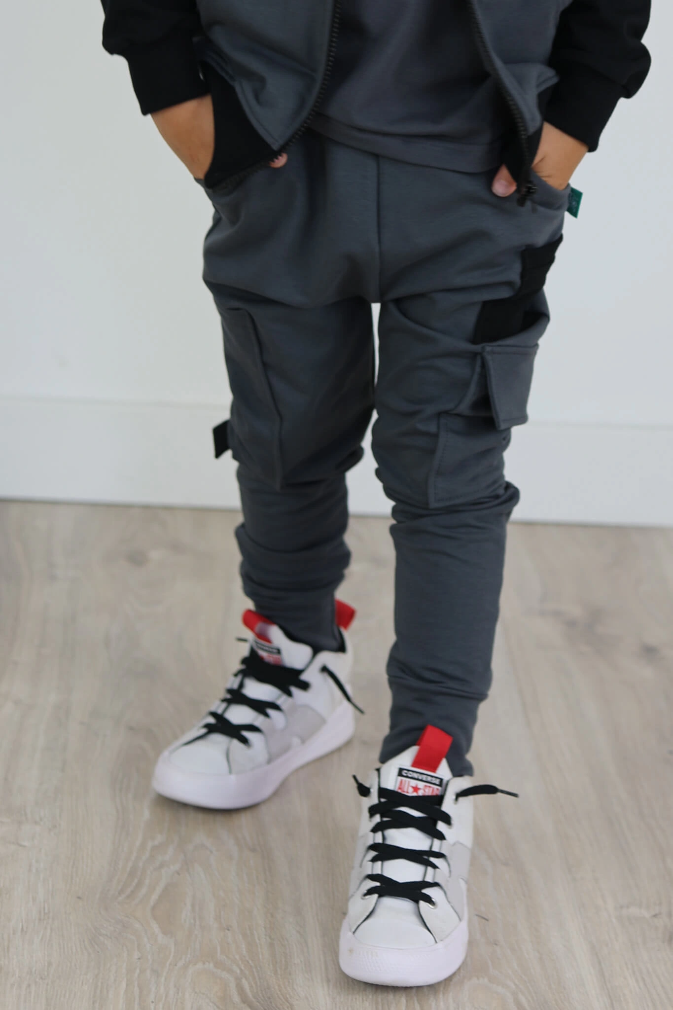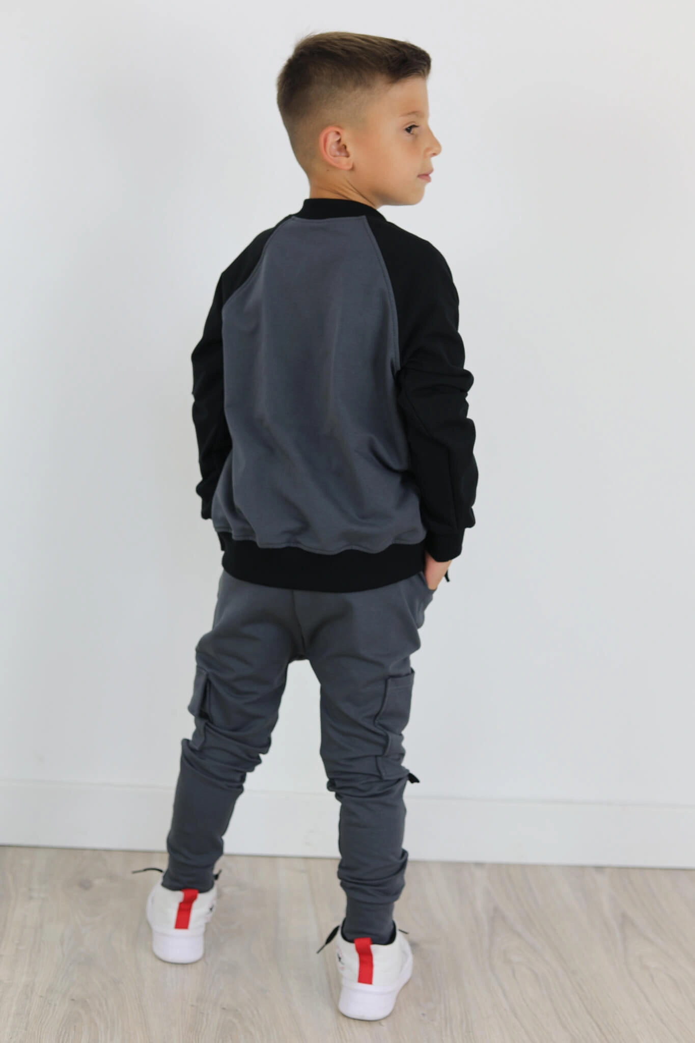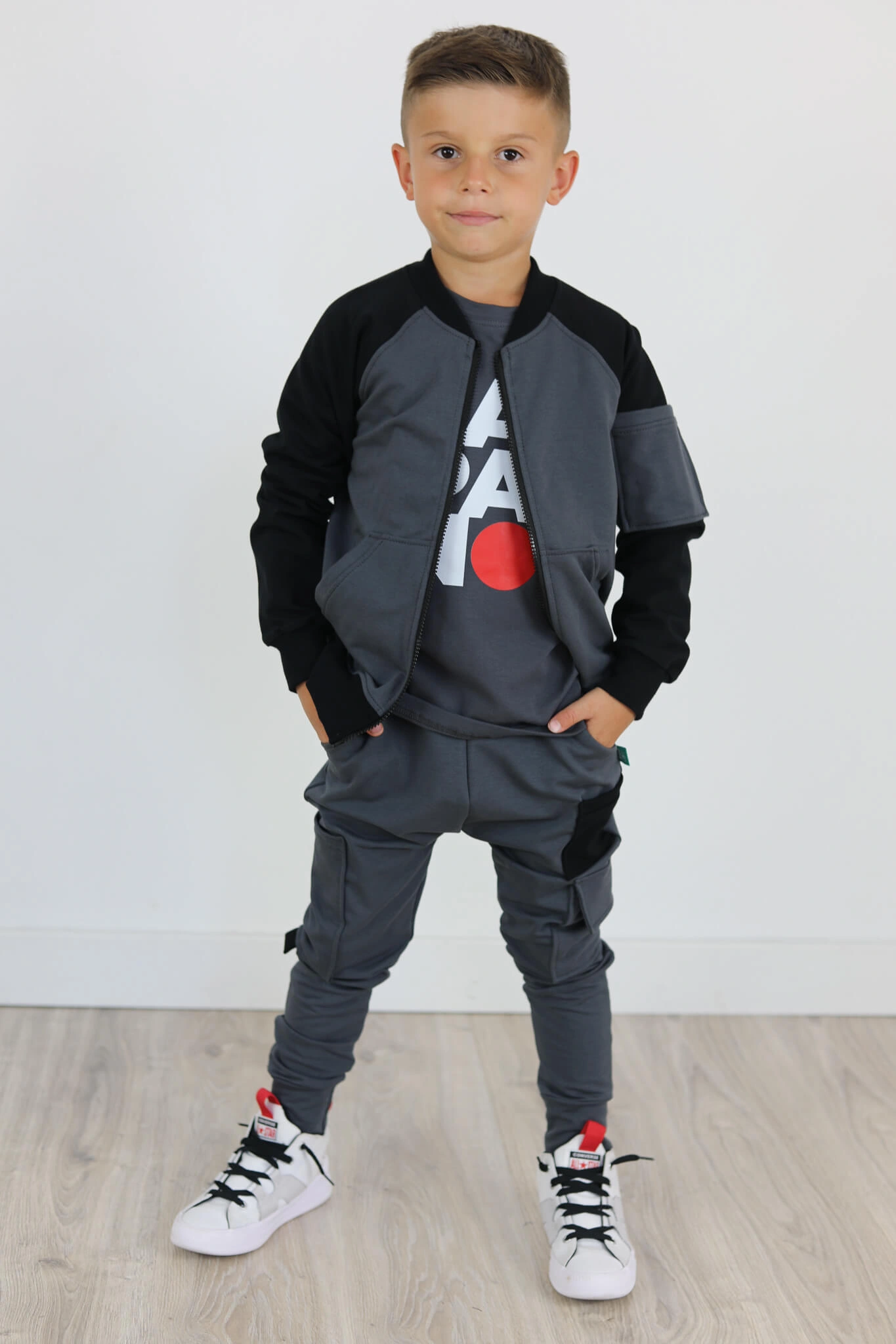 Spodnie bojówki KONTRASTOWA KIESZONKA grafit S45
