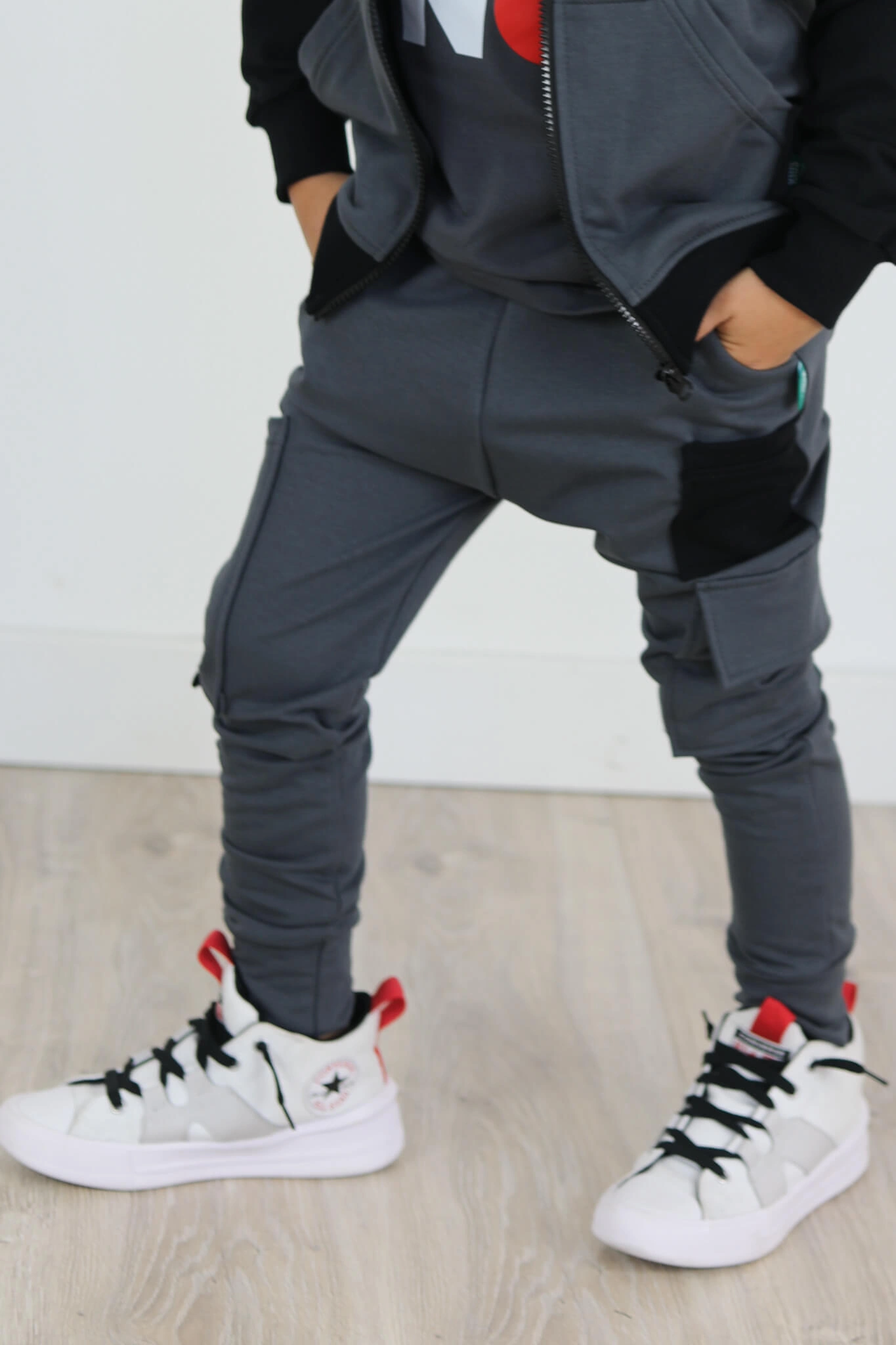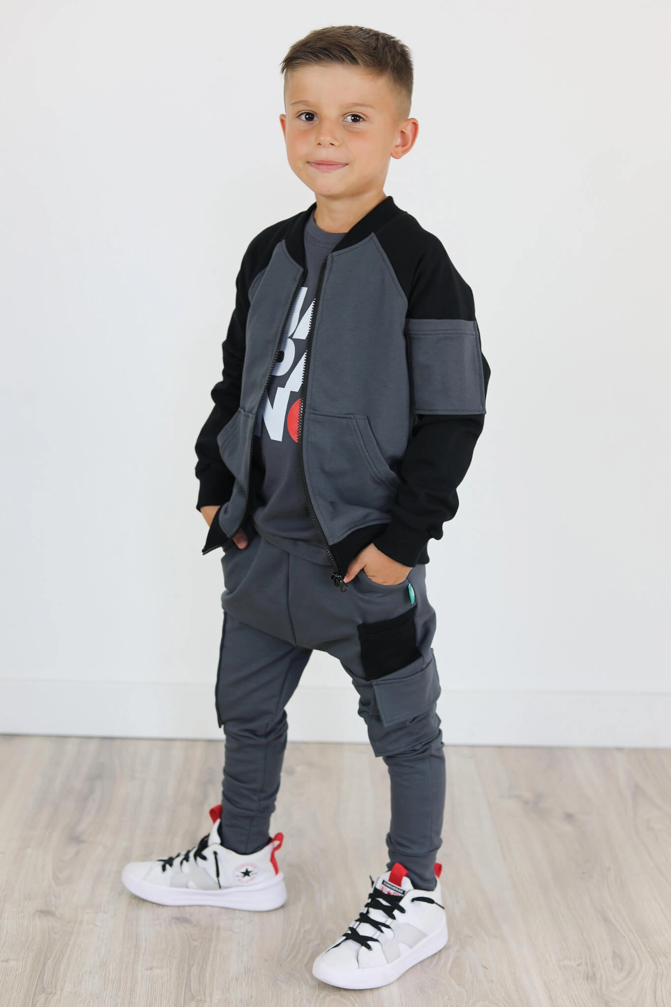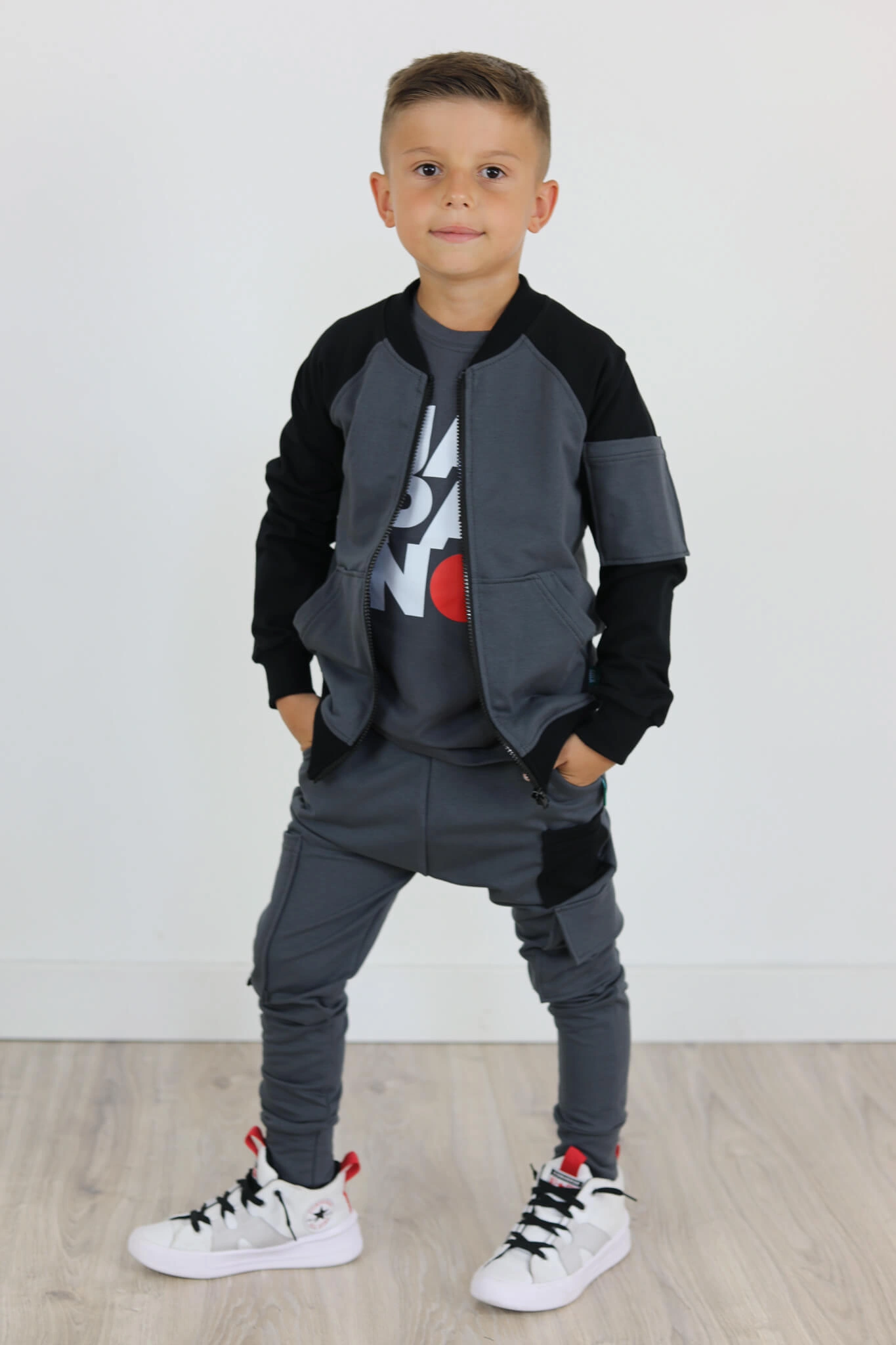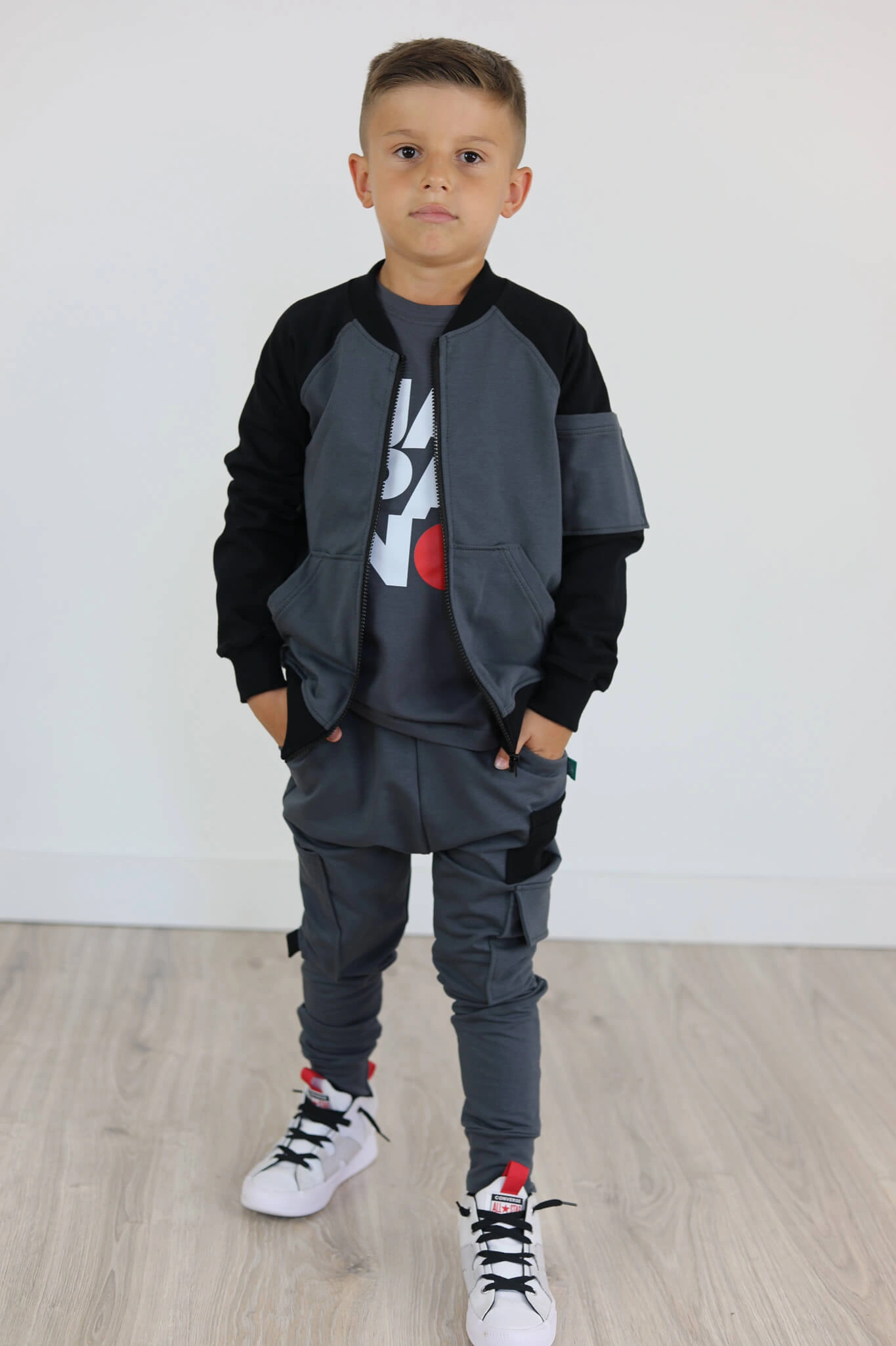Spodnie bojówki KONTRASTOWA KIESZONKA grafit S45