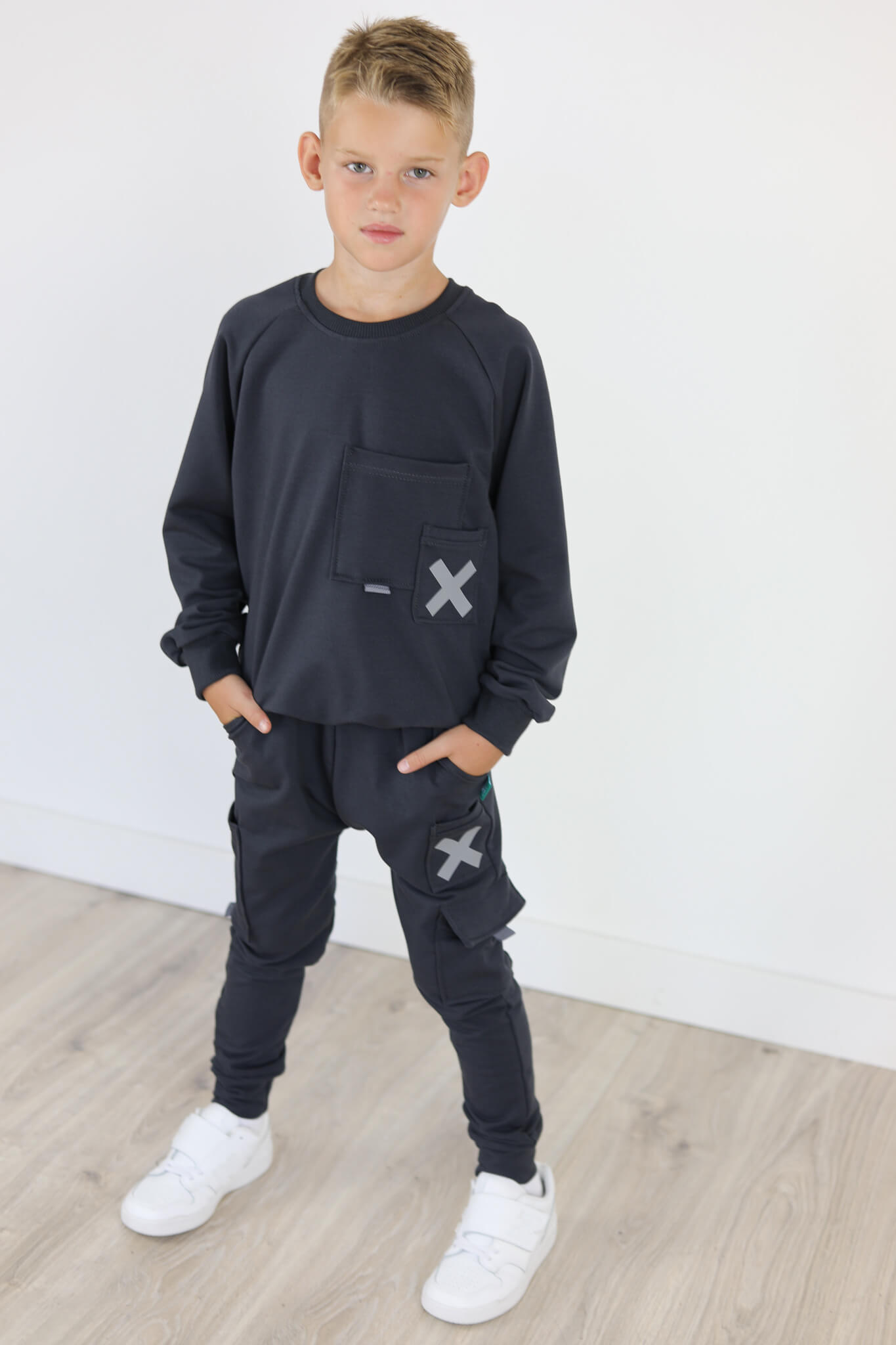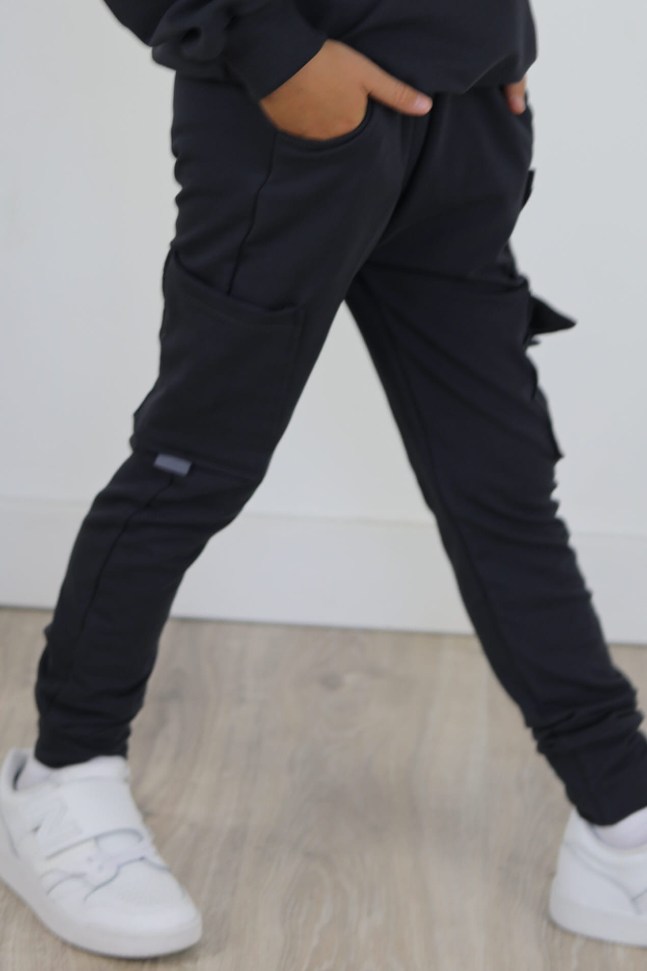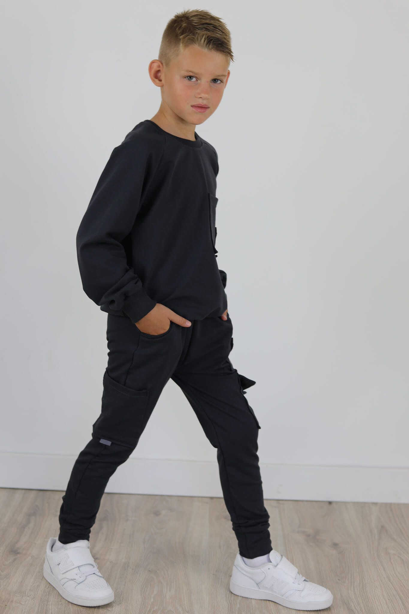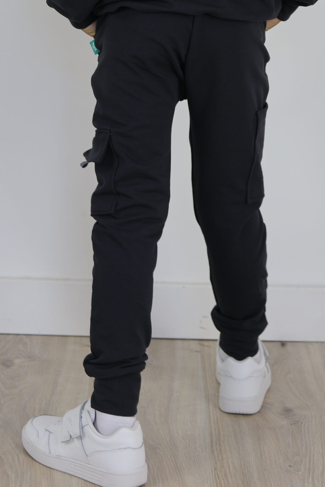 Spodnie bojówki z 3 różnymi kieszonkami. Mała kieszonka w kontrastowym kolorze.