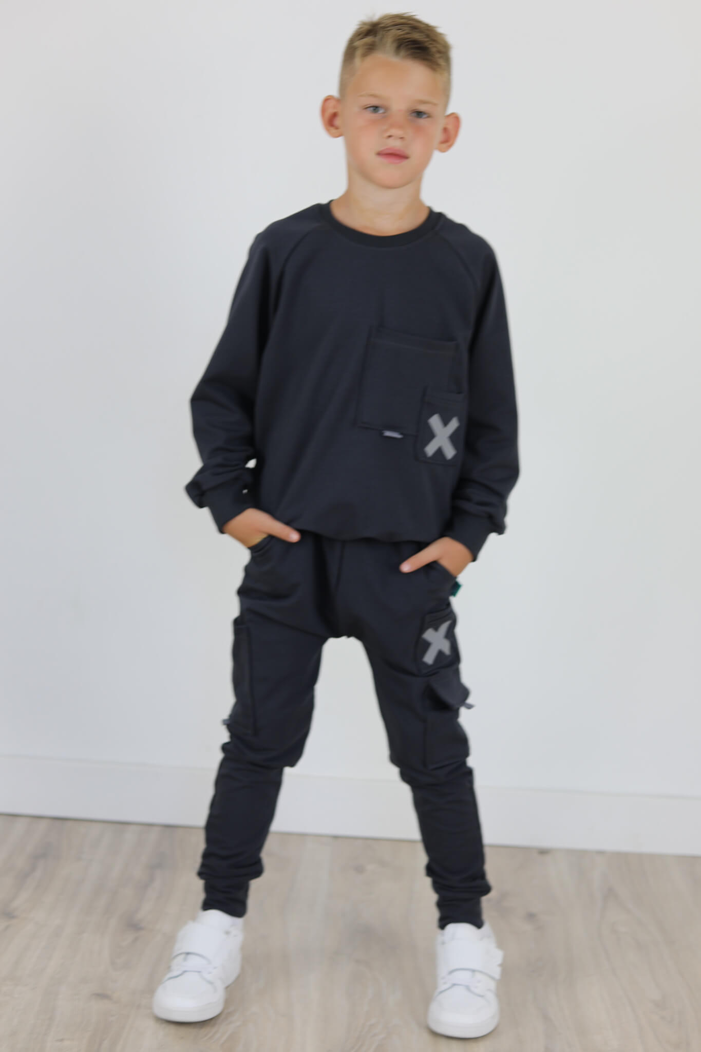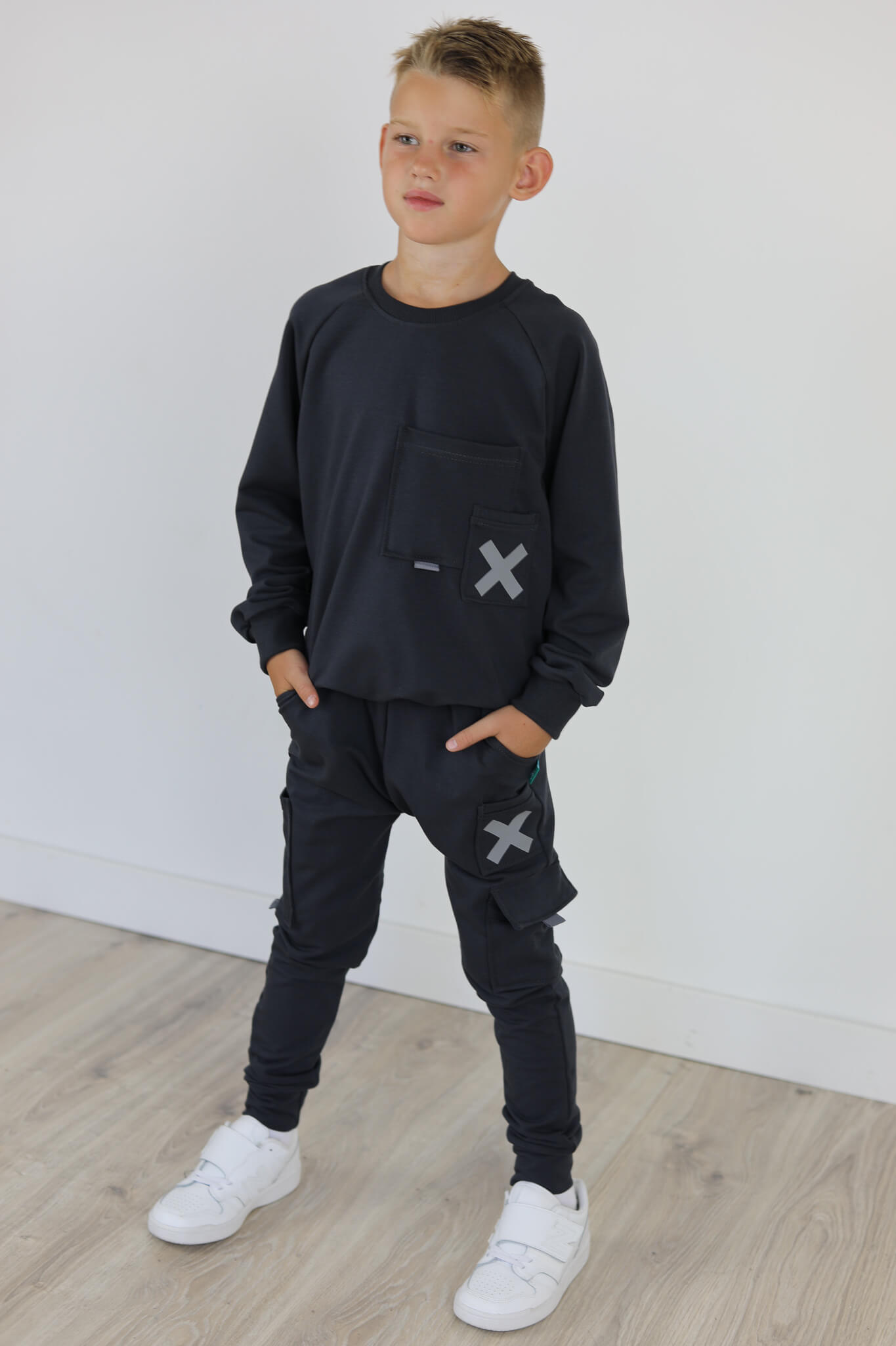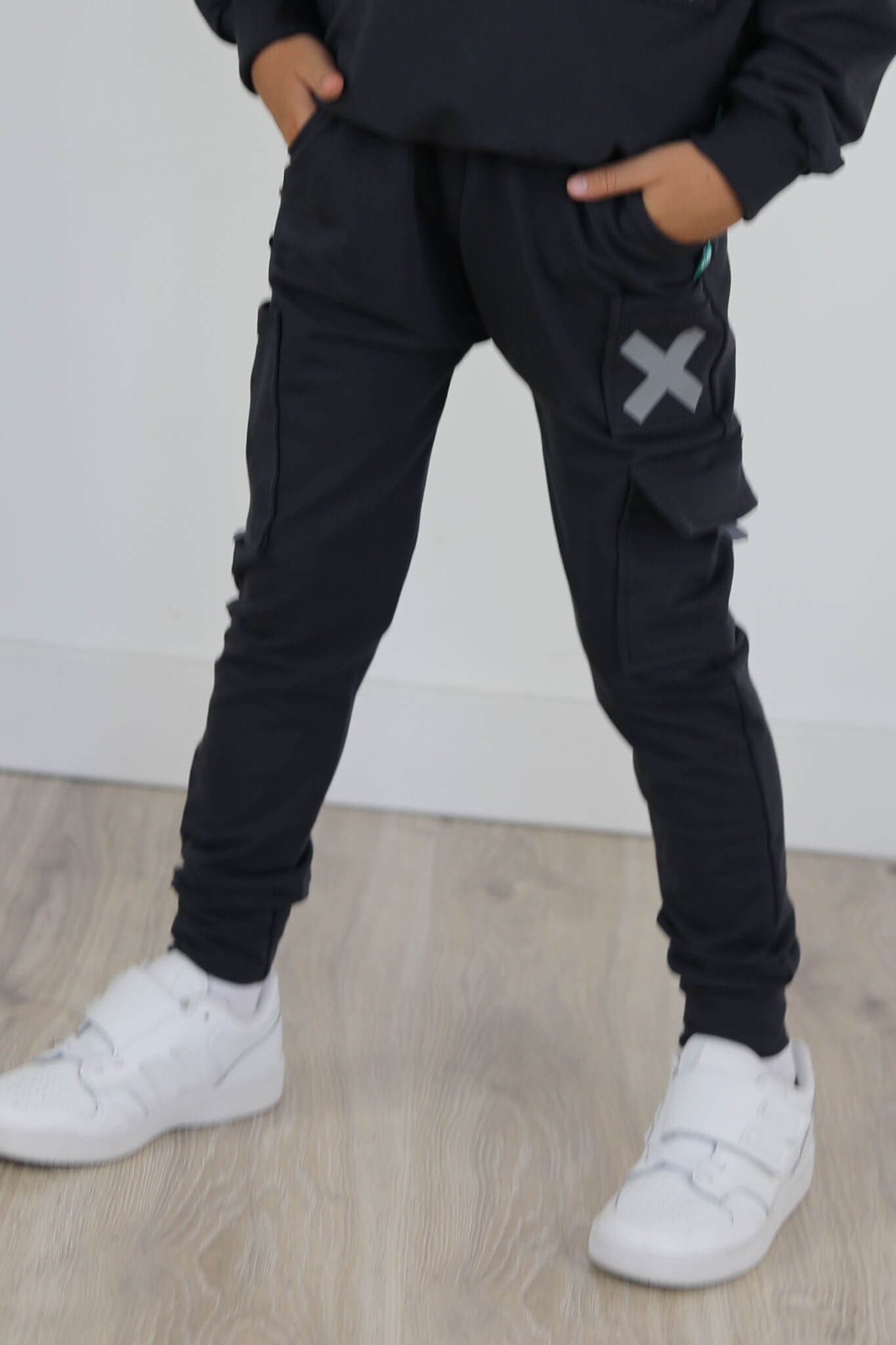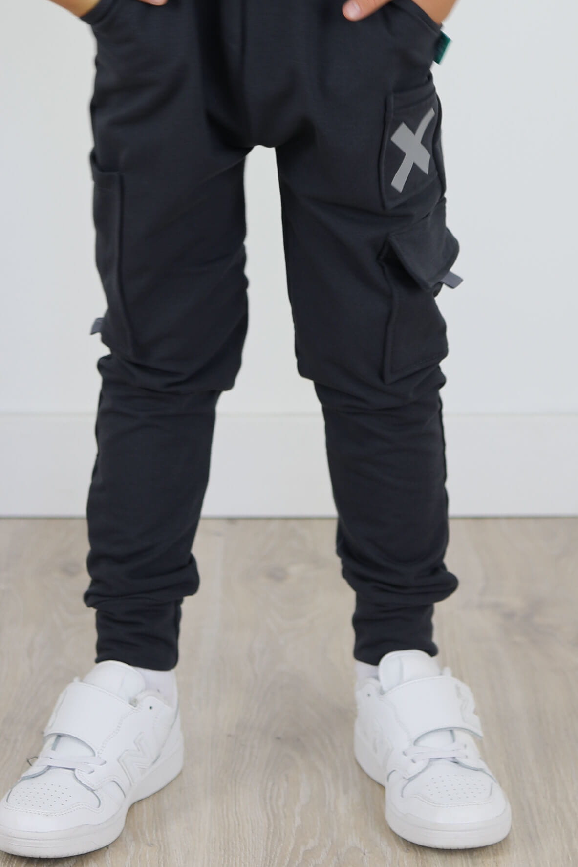 Spodnie bojówki z 3 różnymi kieszonkami. Mała kieszonka w kontrastowym kolorze.