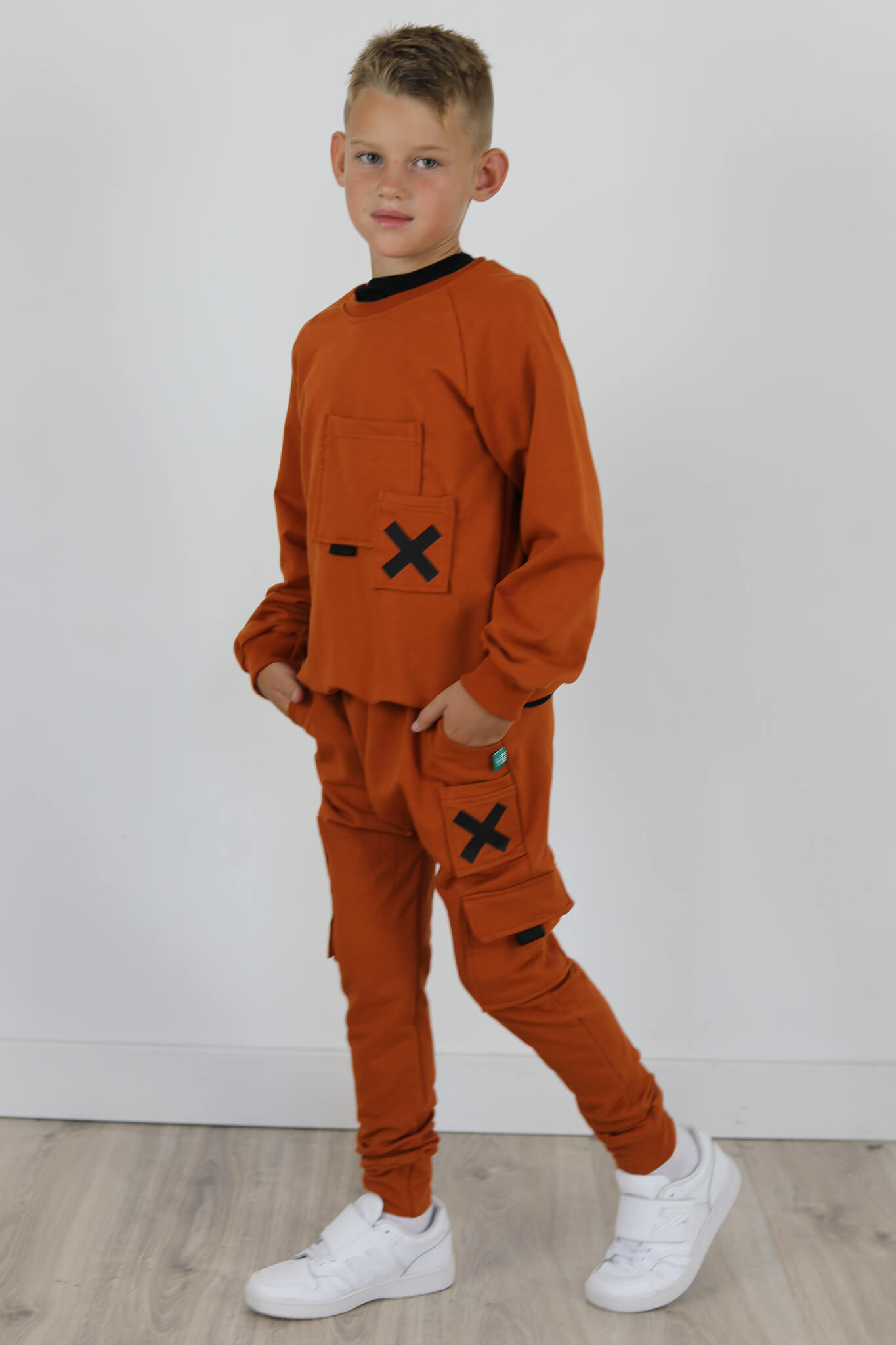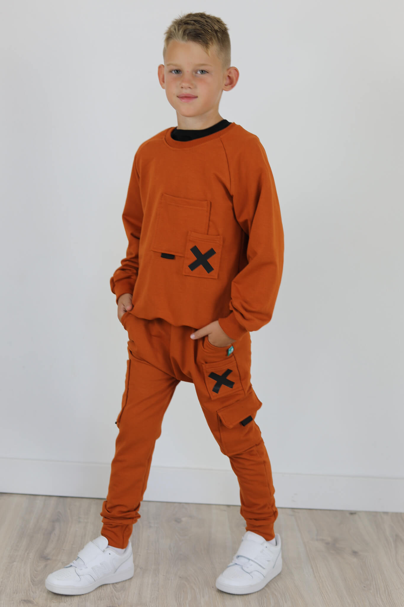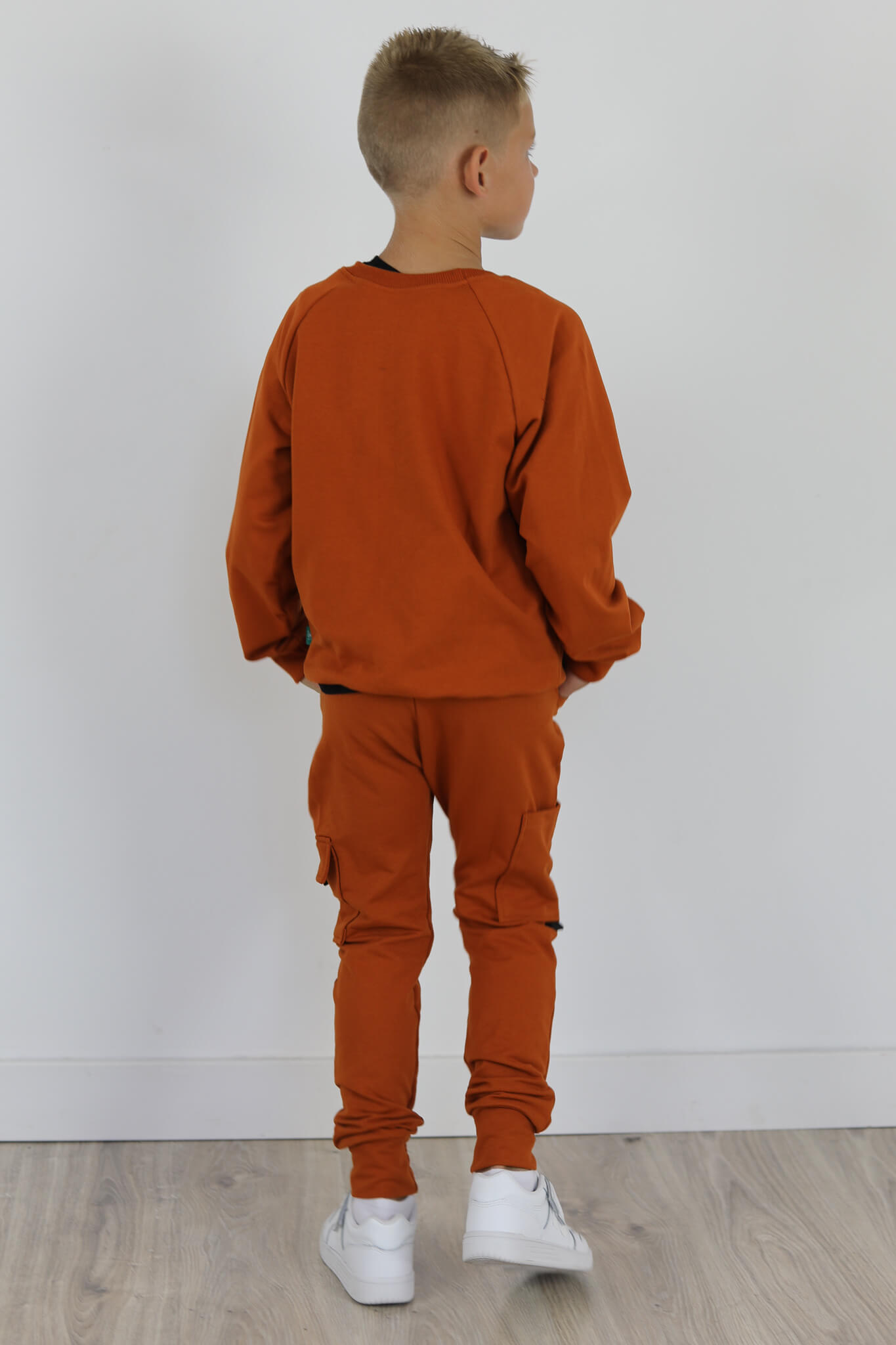 Spodnie bojówki z 3 różnymi kieszonkami. Mała kieszonka w kontrastowym kolorze.