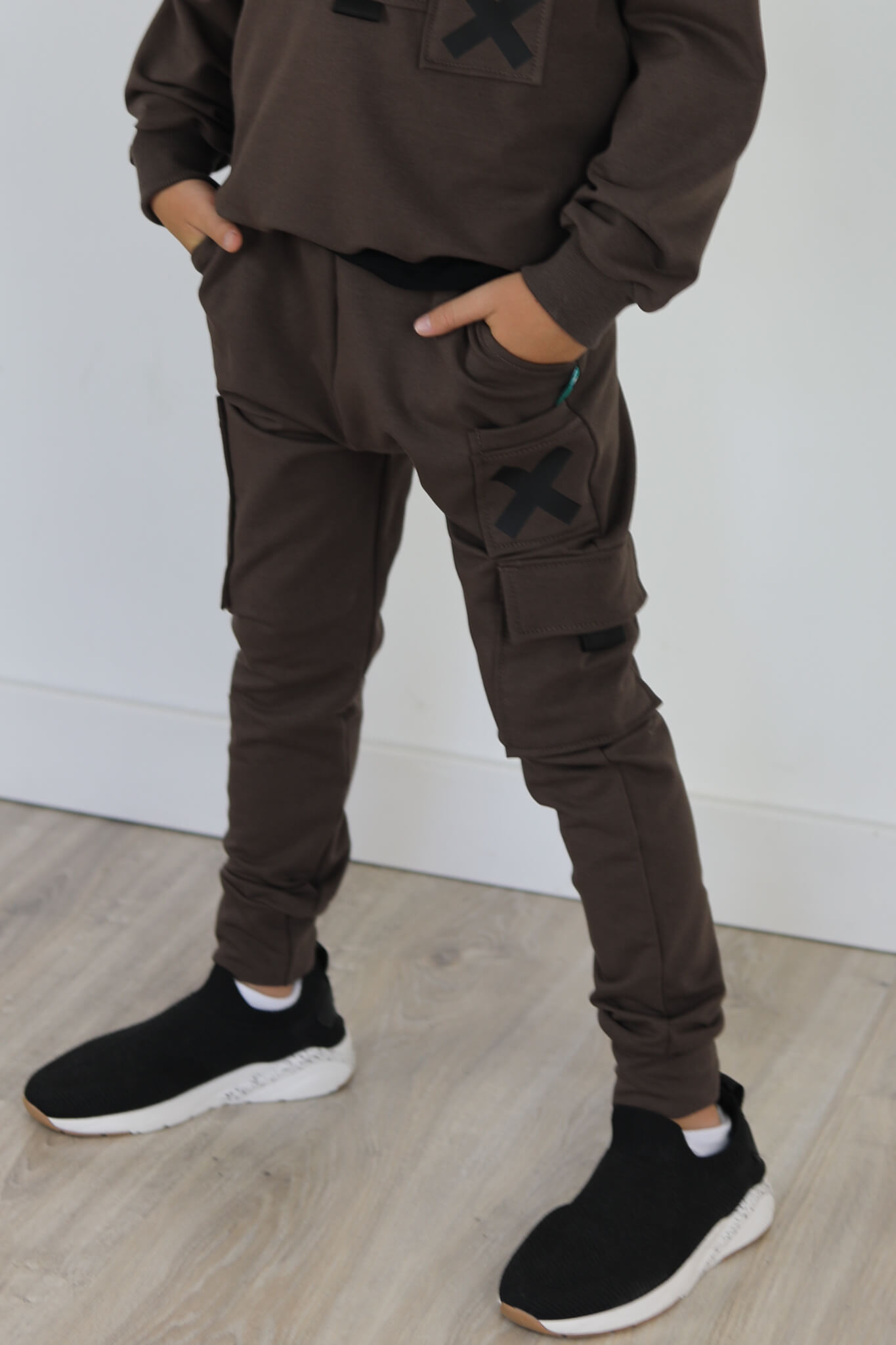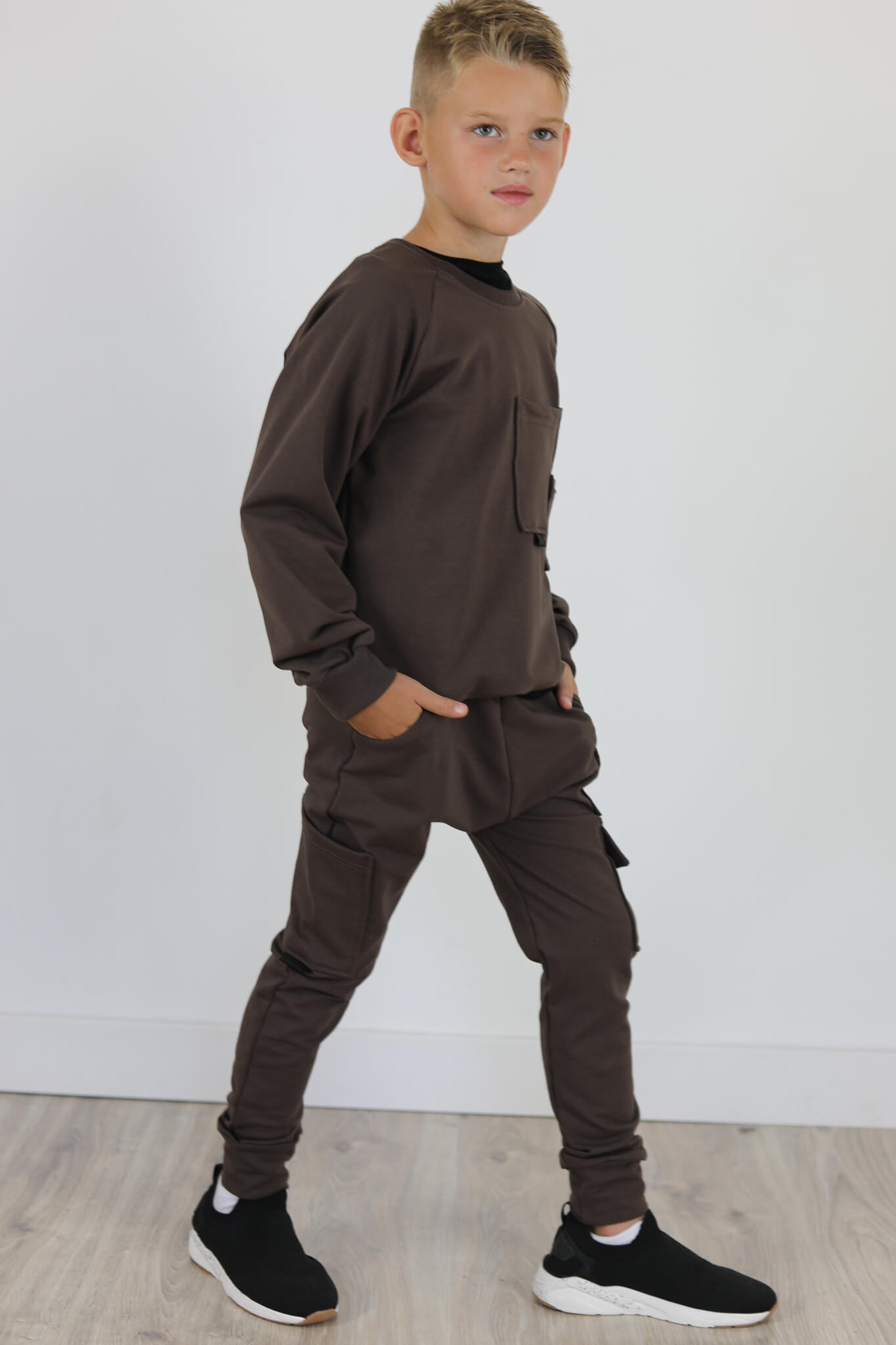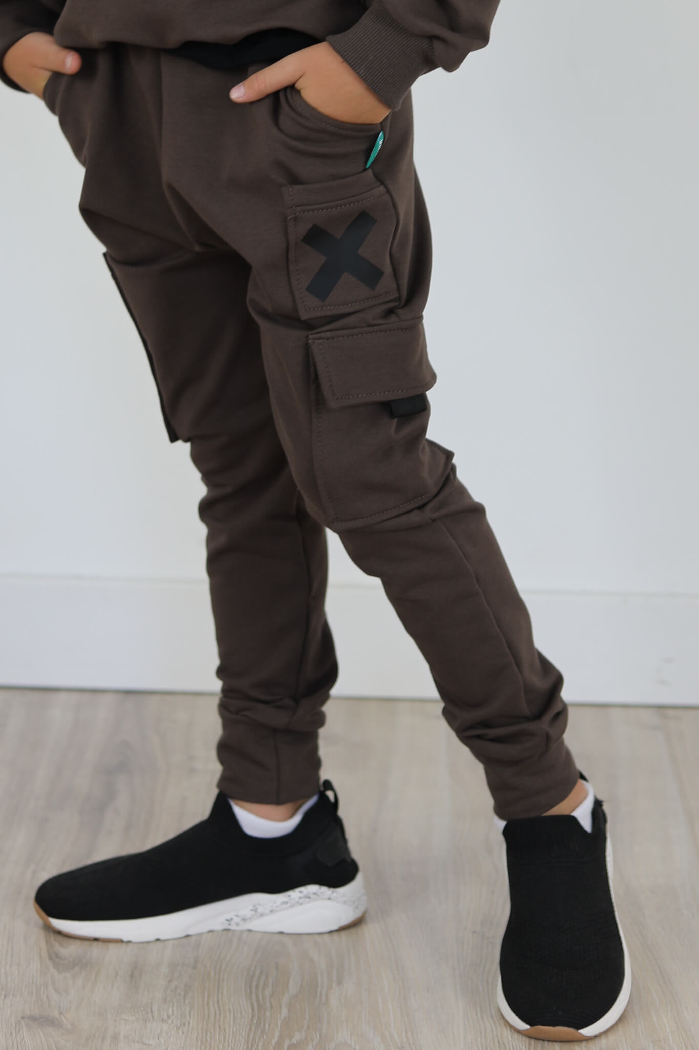 Spodnie bojówki z 3 różnymi kieszonkami. Mała kieszonka w kontrastowym kolorze.