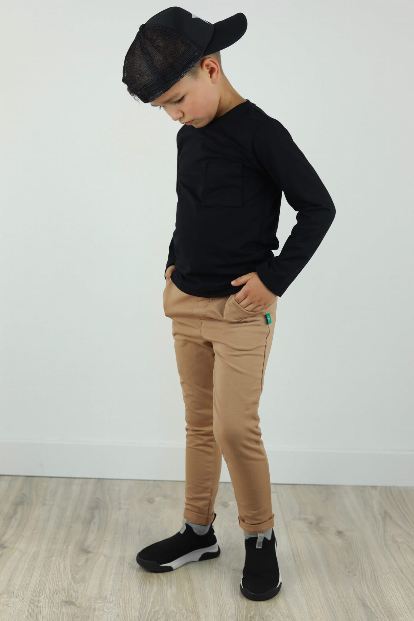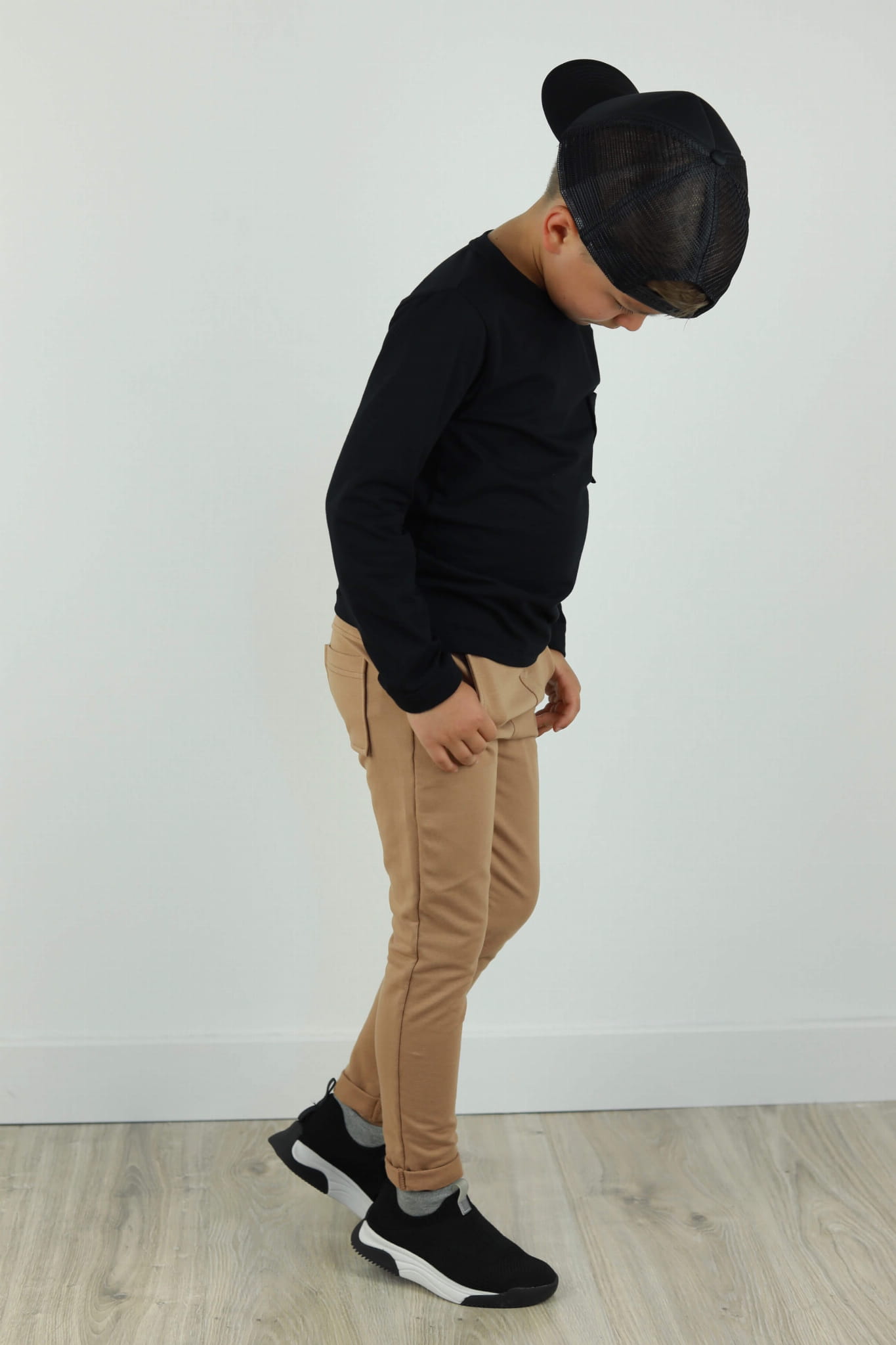 Spodnie RURKI kwadratowa kieszeń karmel S05a