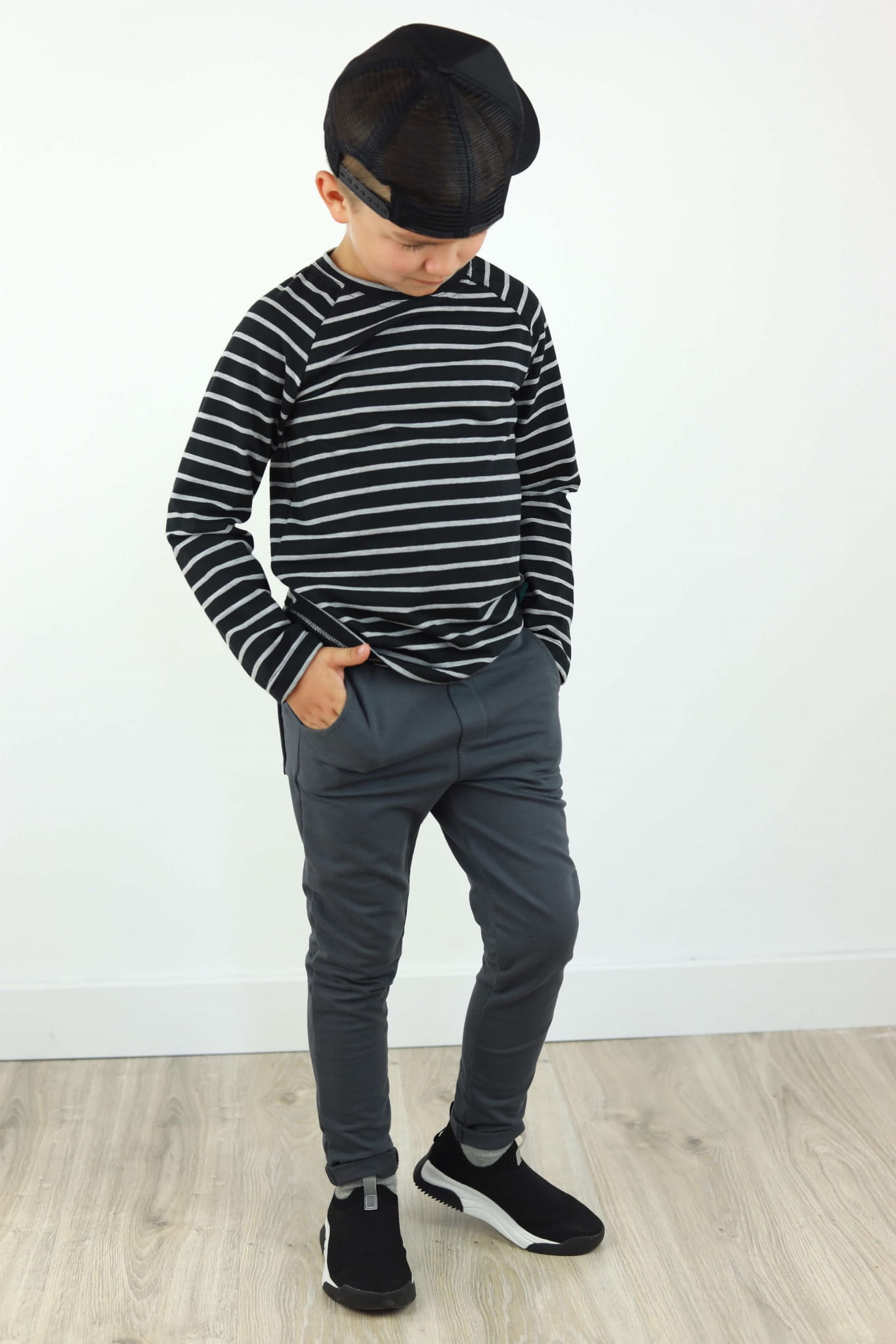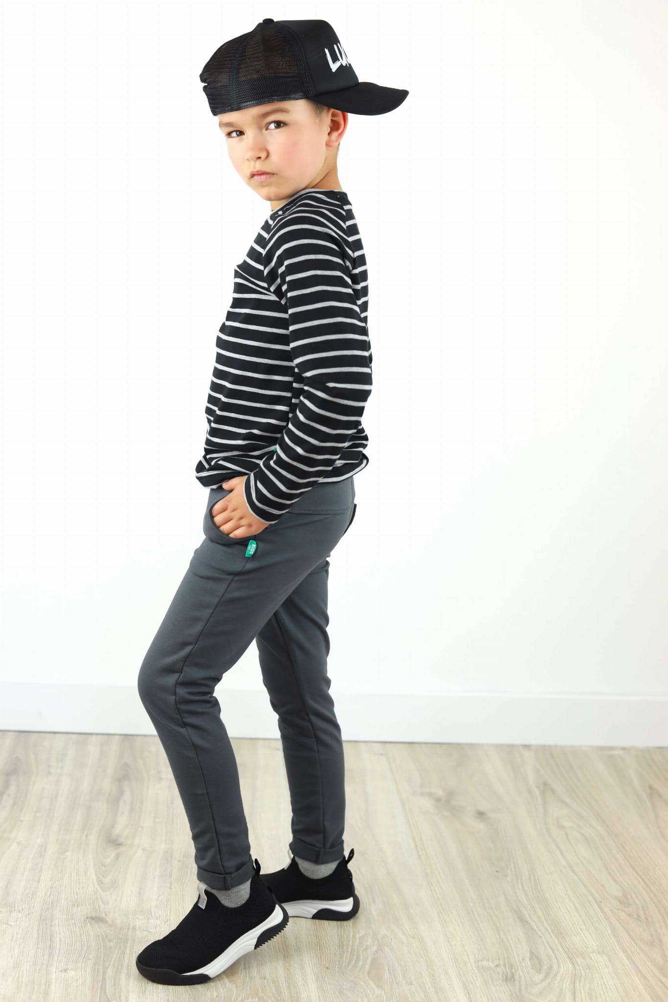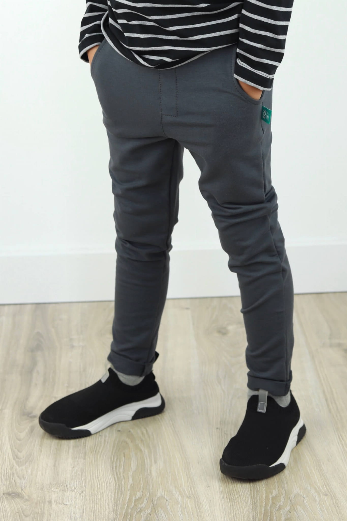 Spodnie RURKI kwadratowa kieszeń grafit S05a
